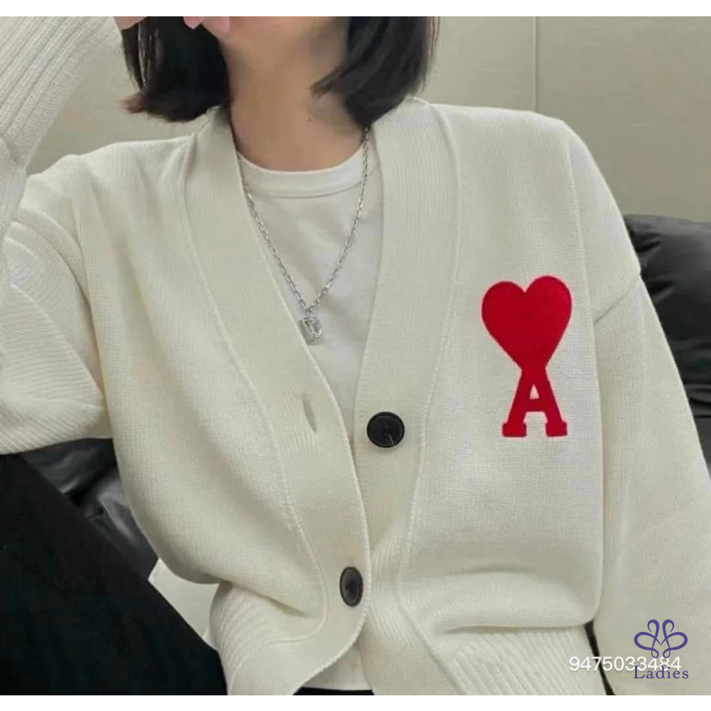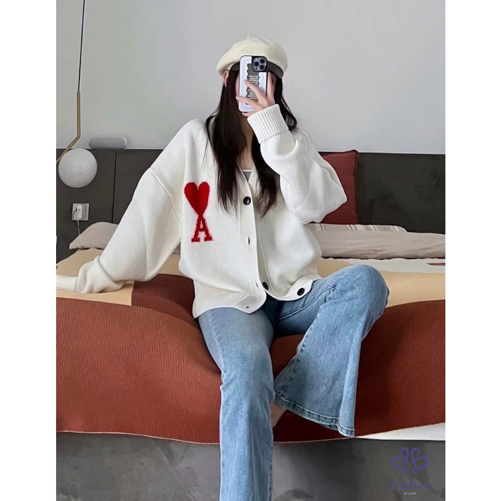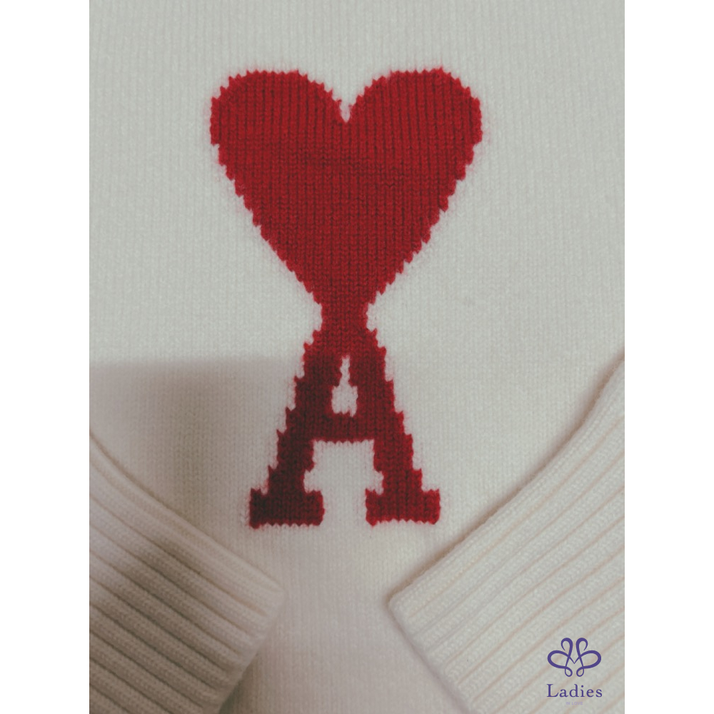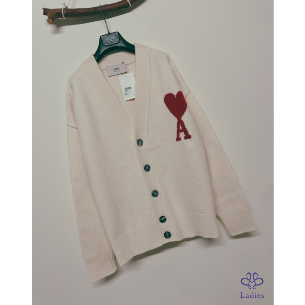 全新 AMI Paris 奶白色大愛心羊毛針織外套