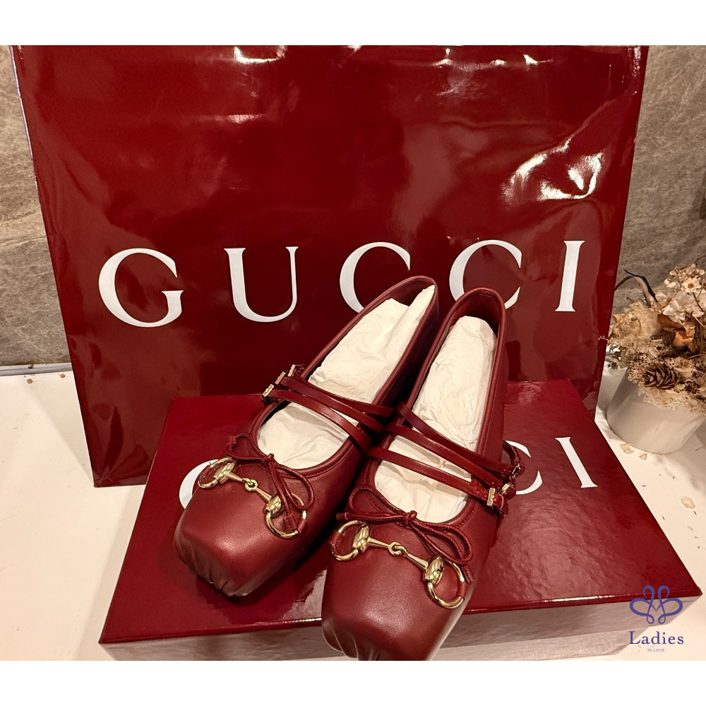 Gucci安可拉紅皮革搭配淺金色馬銜扣