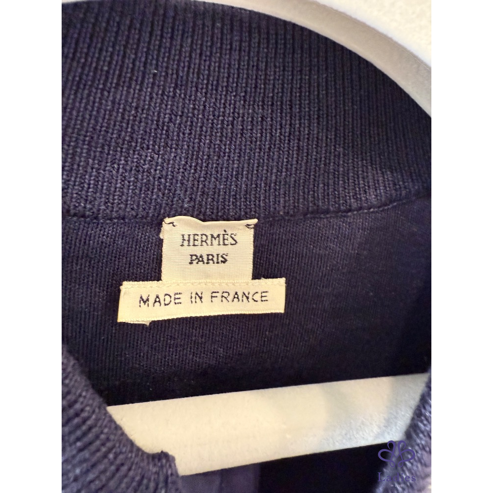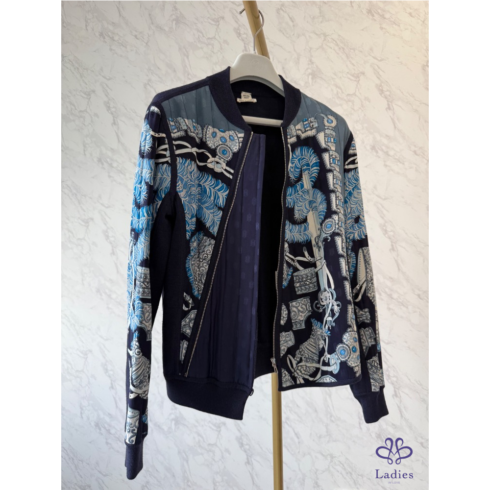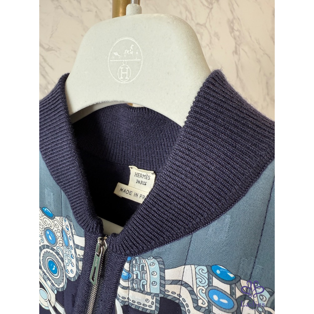 ❤️Hermes 棉針織拼接馬場壓紋拉鏈深水藍外套(有彈性)