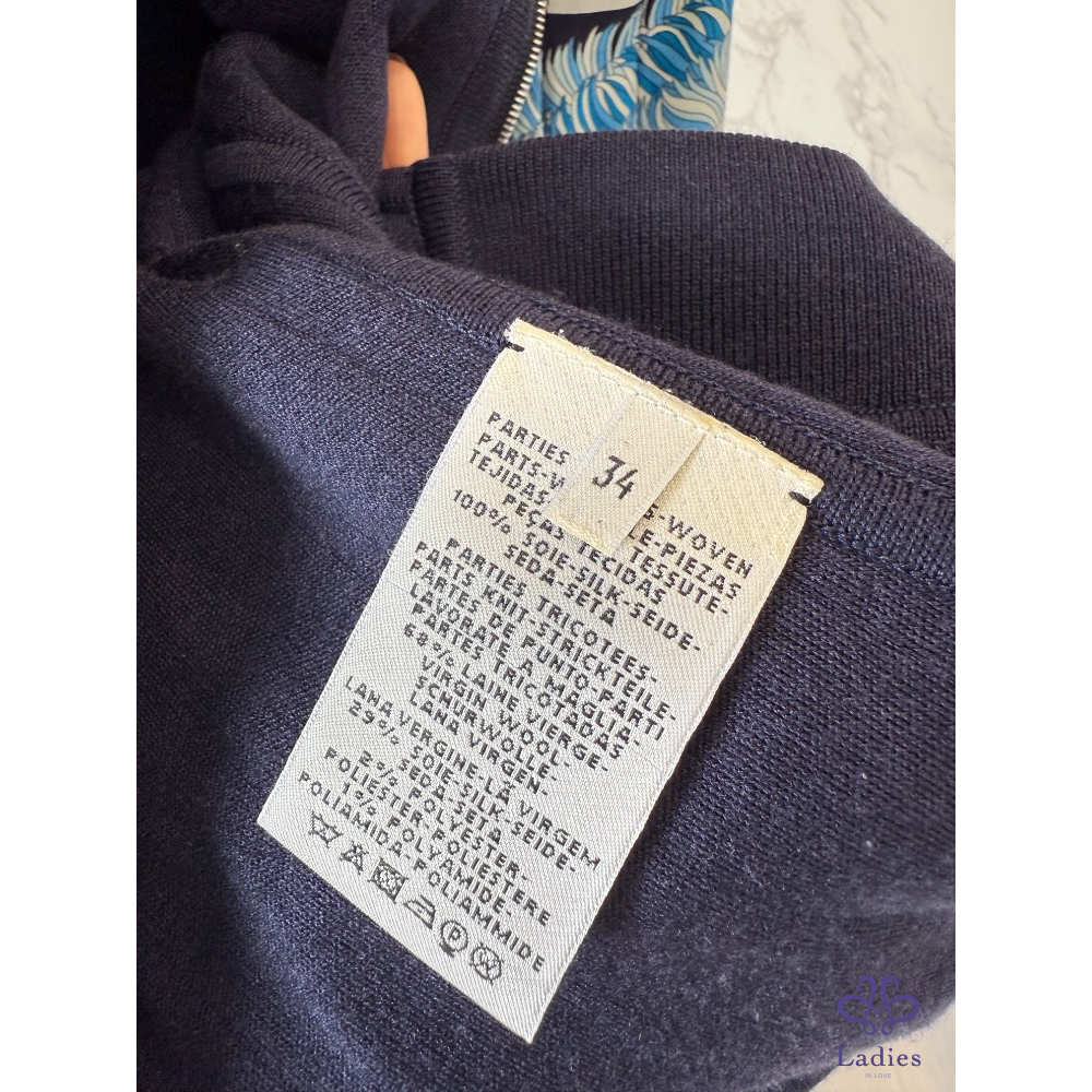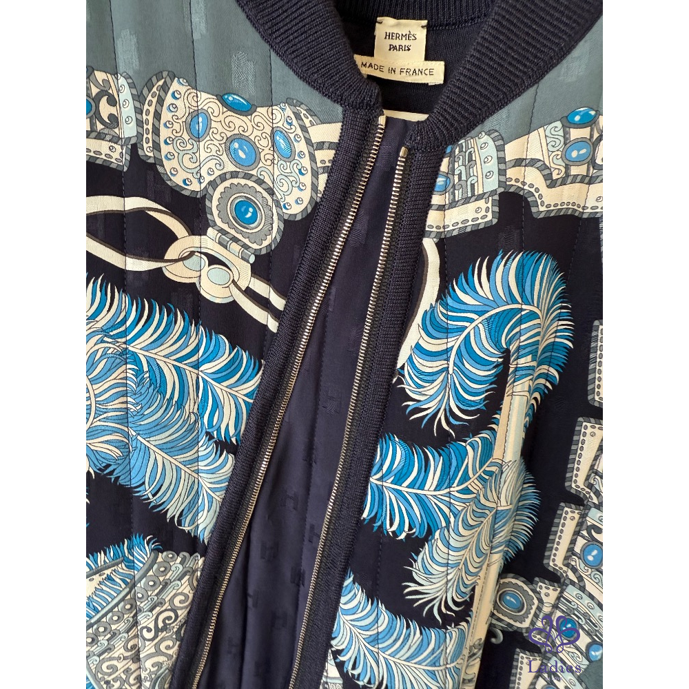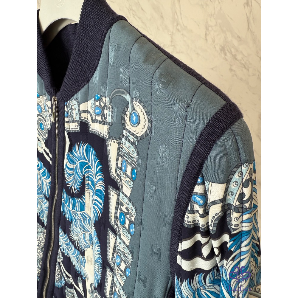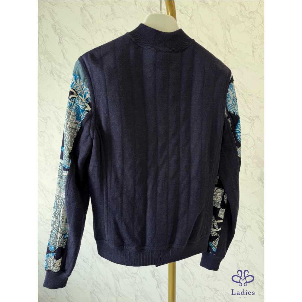 ❤️Hermes 棉針織拼接馬場壓紋拉鏈深水藍外套(有彈性)