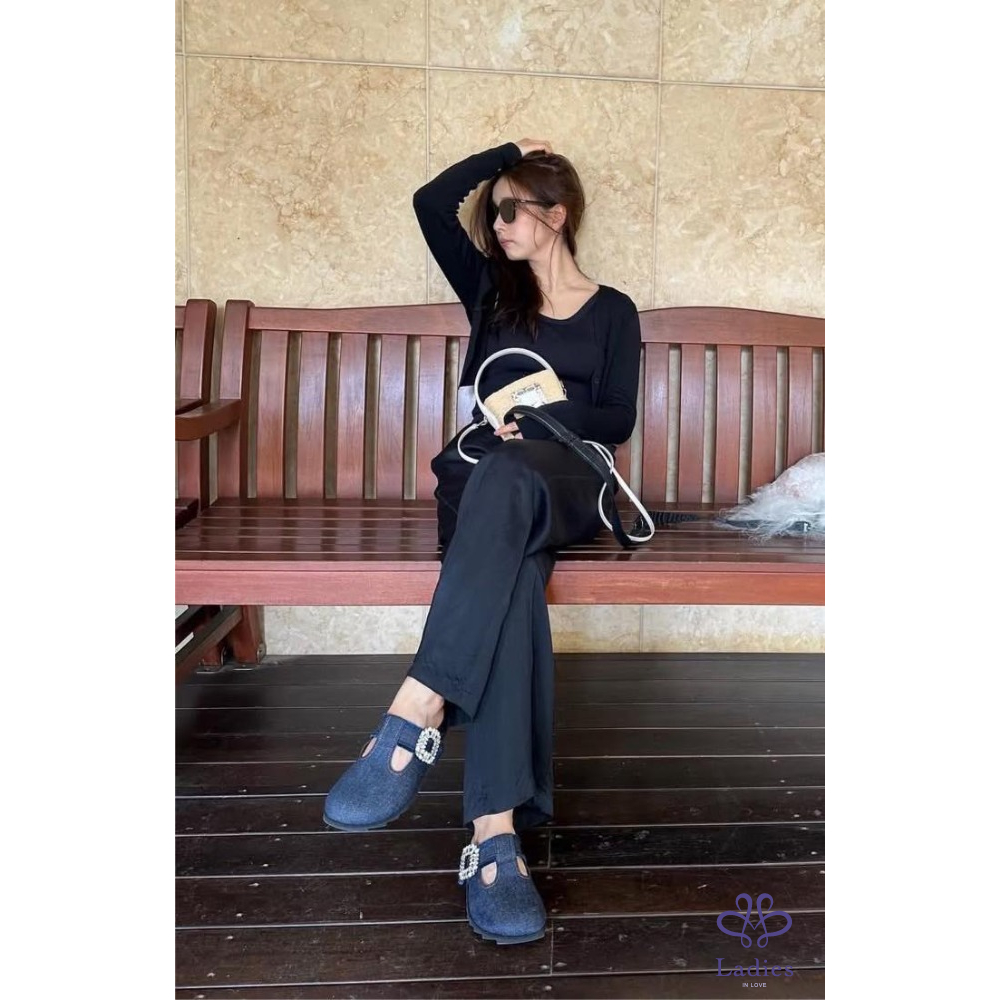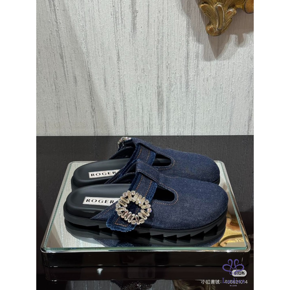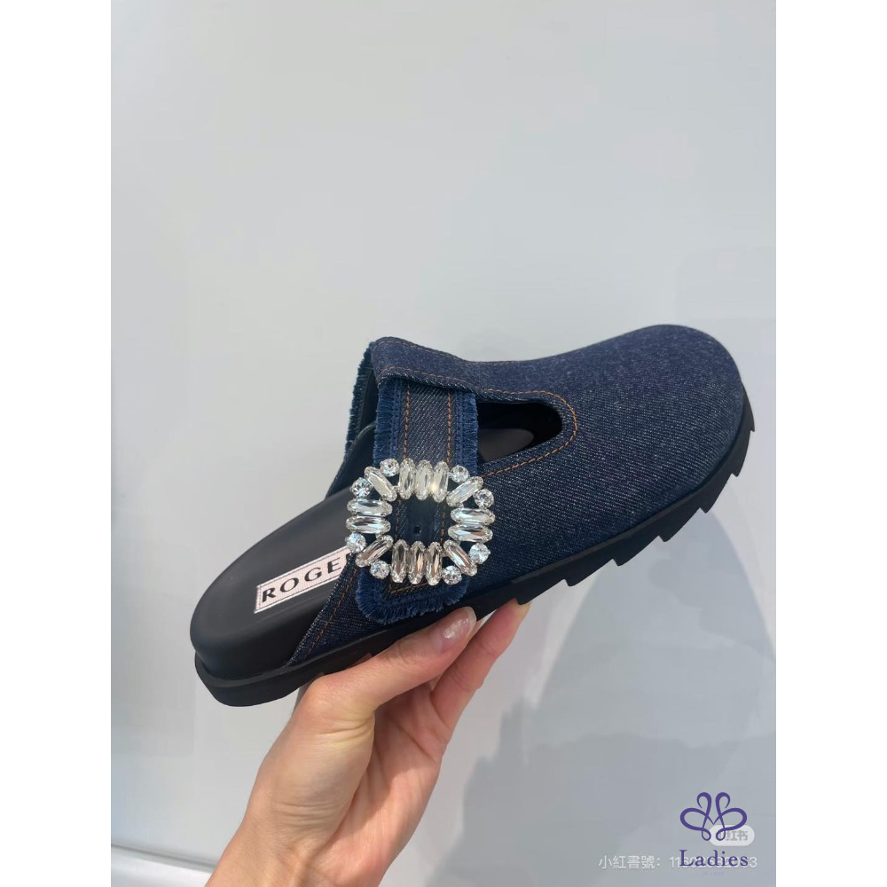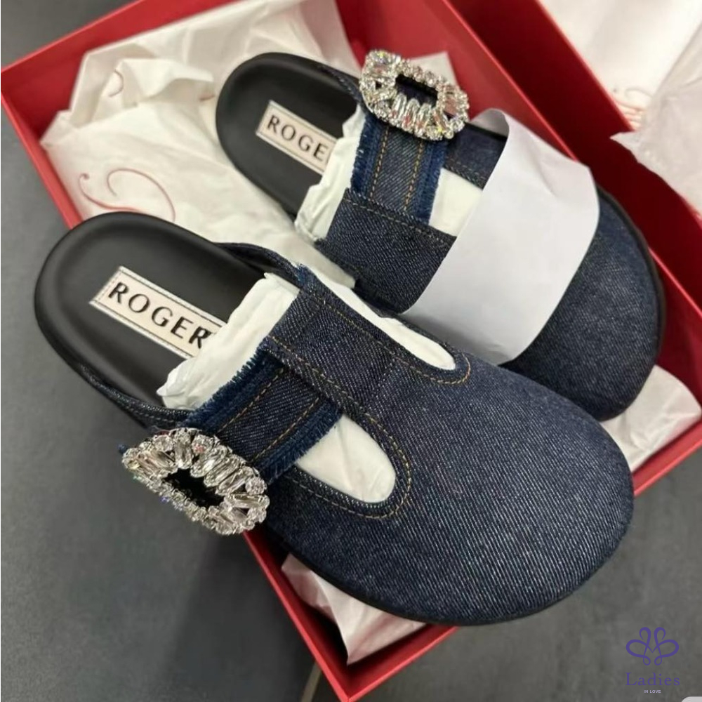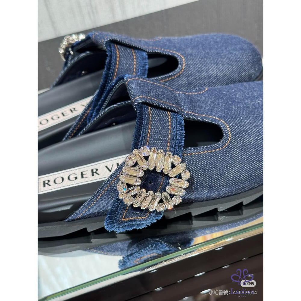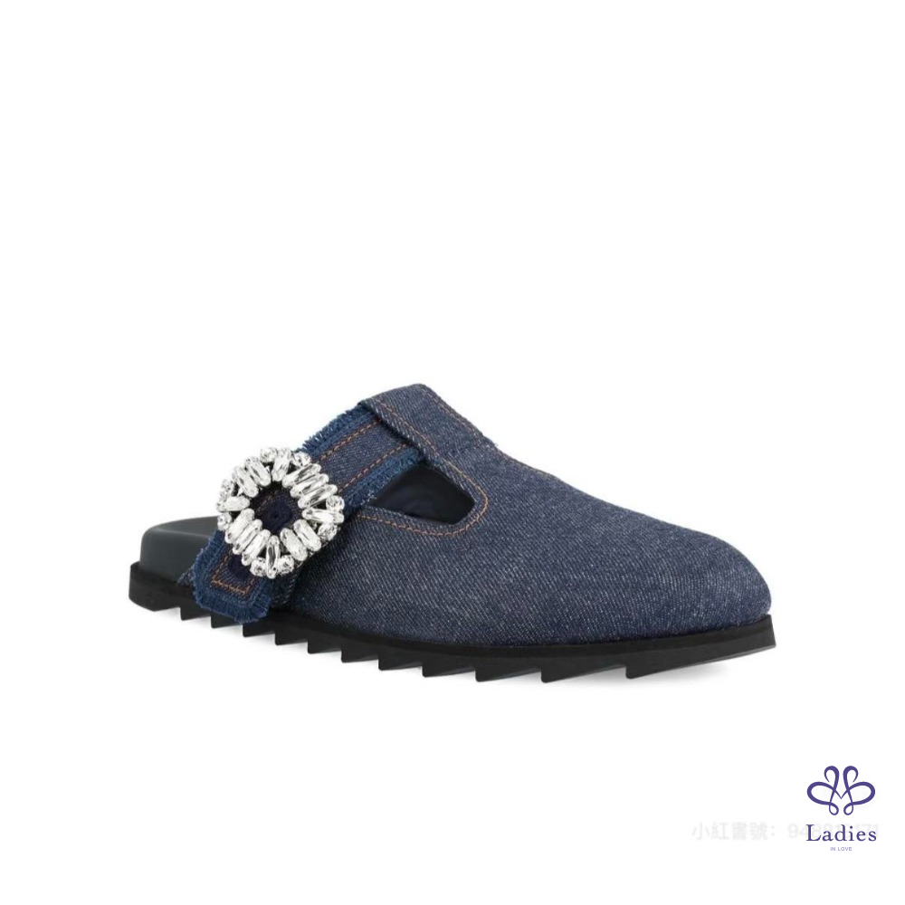 全新 Roger Vivier Viv Slippers 水鑽方釦牛仔勃肯鞋 (原價近6萬)