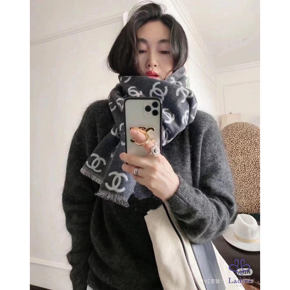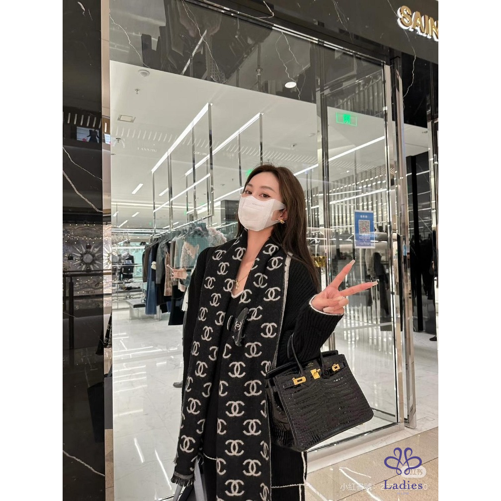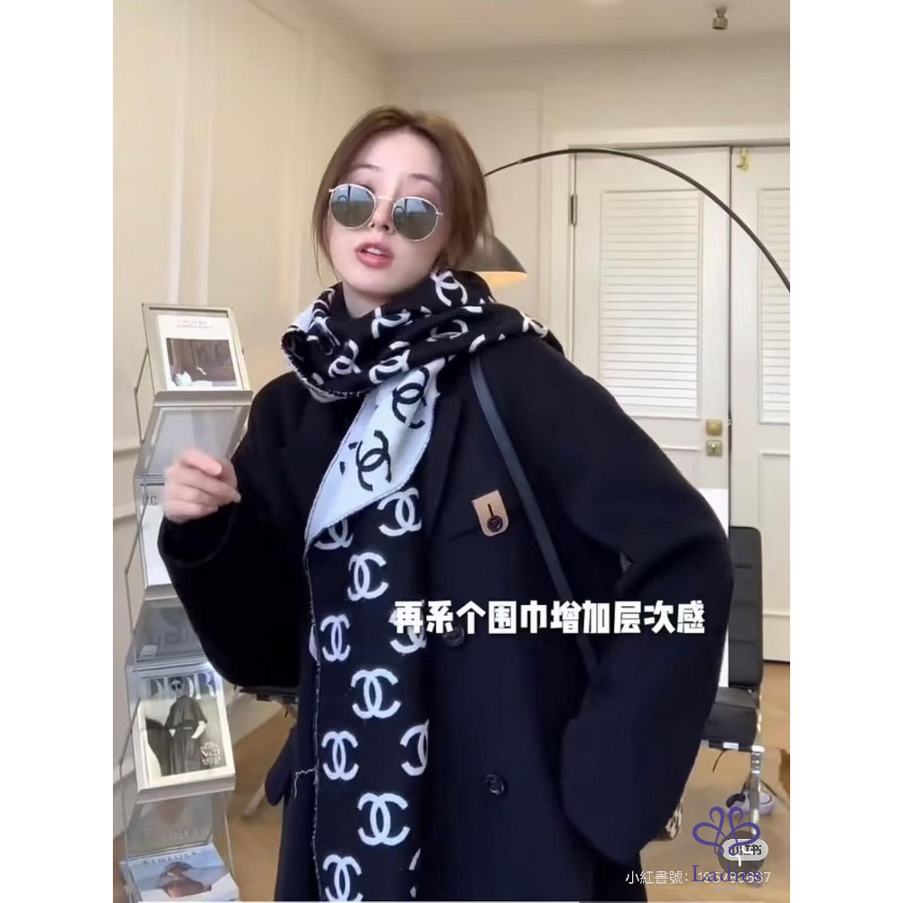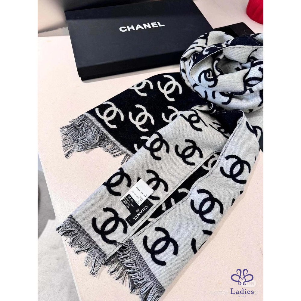 ✅全新爆款 Chanel 熊貓 配色喀什米爾雙面圍巾