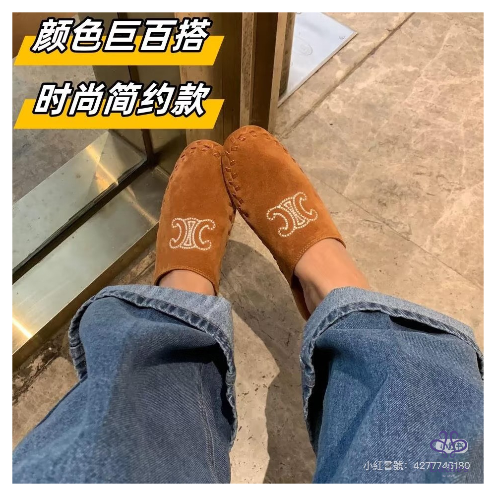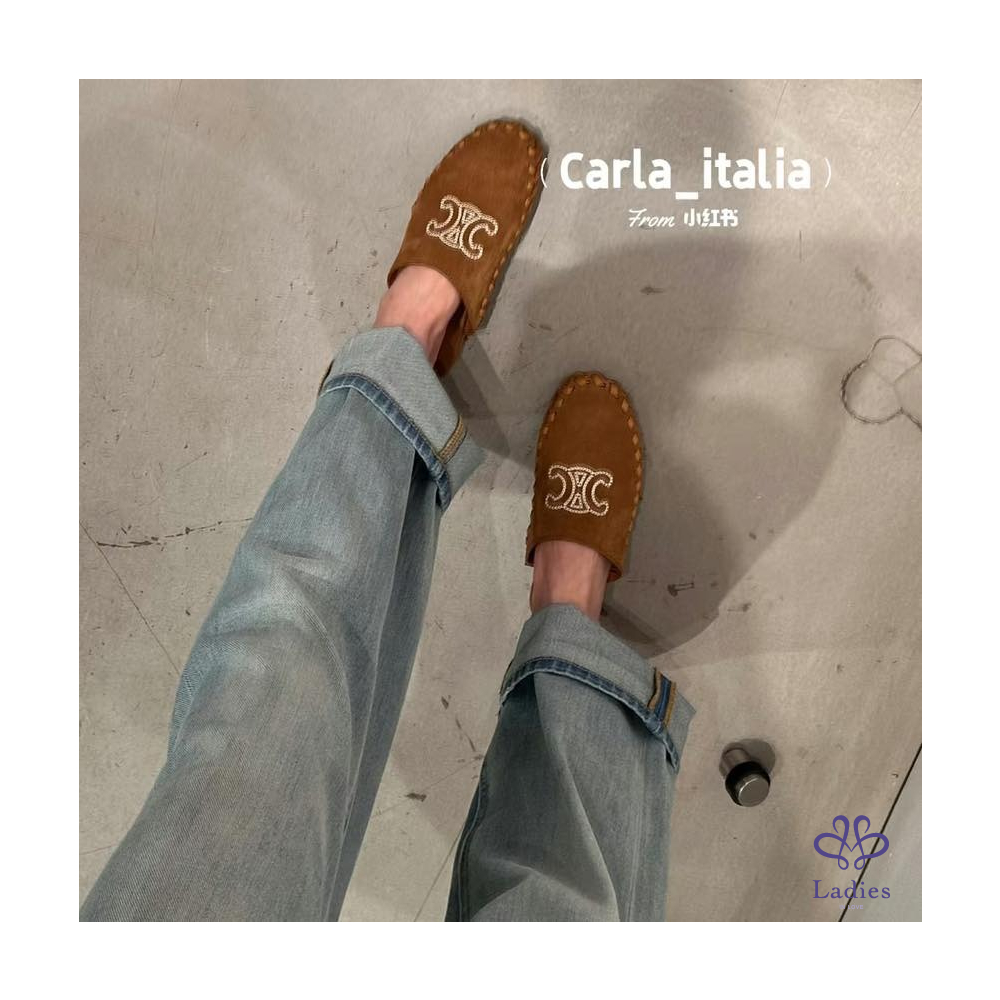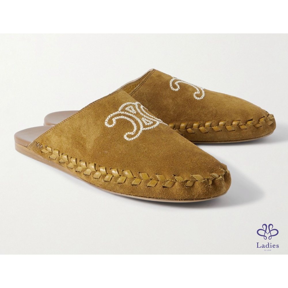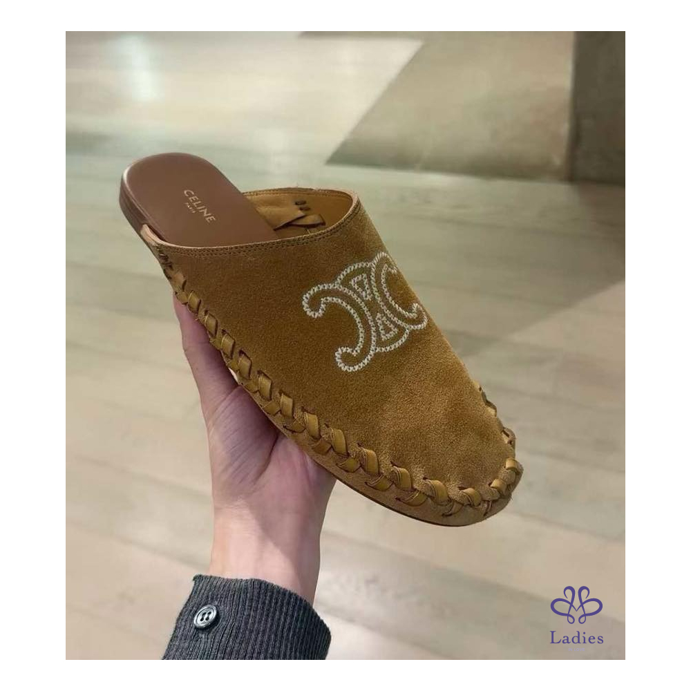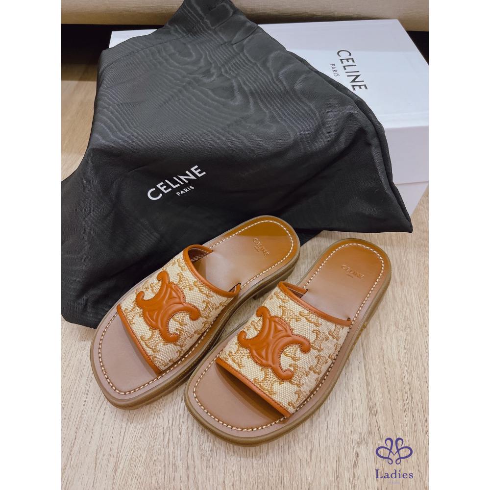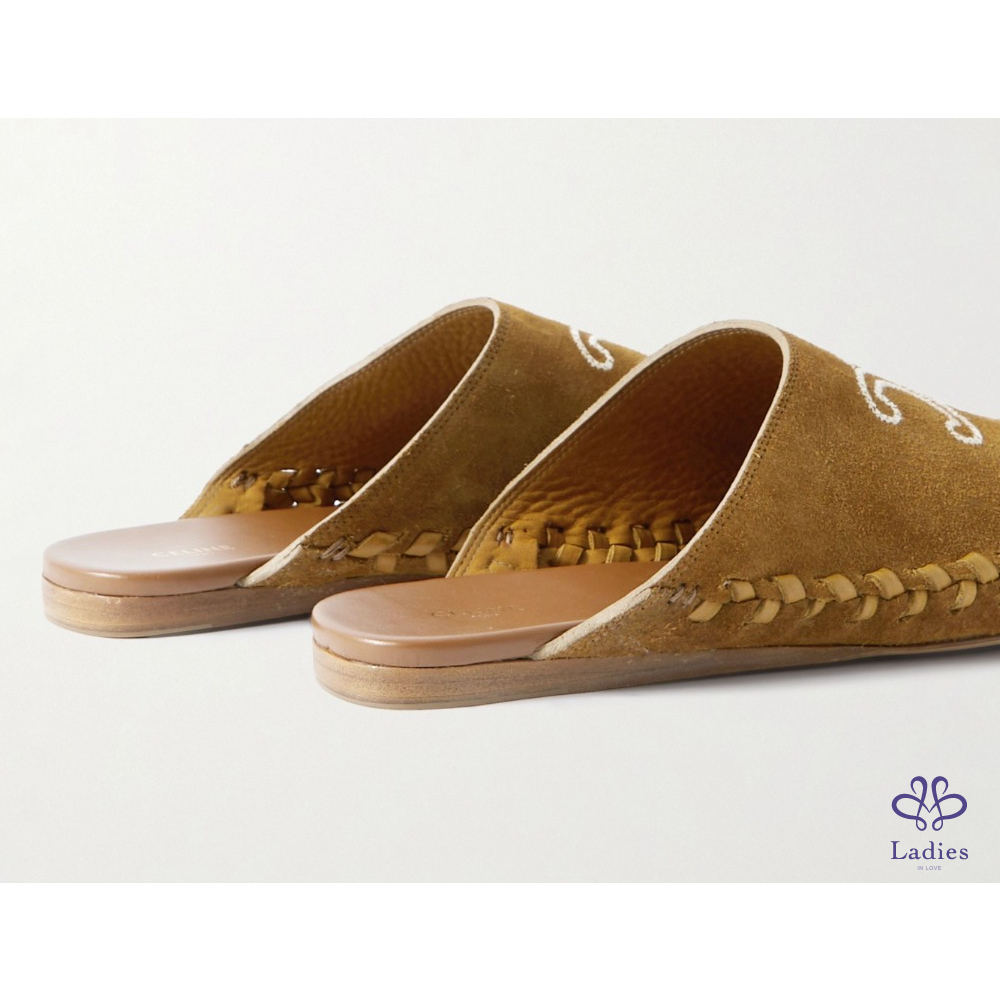 ✅全新 Celine 絨面編織小牛皮拖鞋