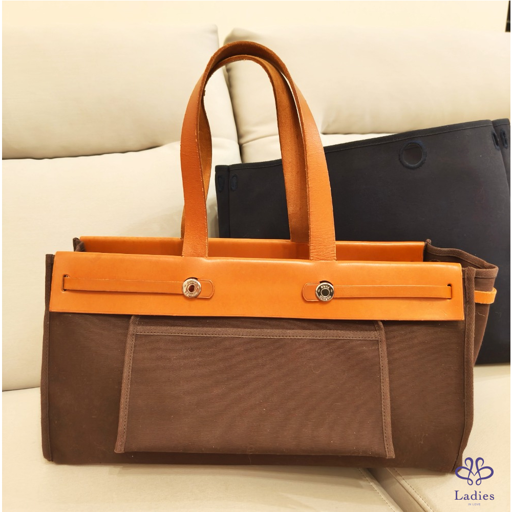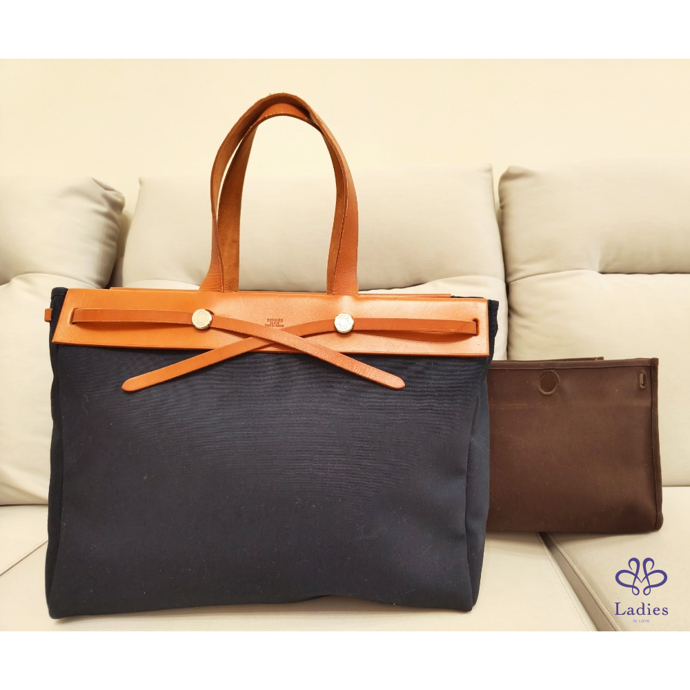 產品信息 A004070 ❤️很有學院風感覺的愛馬仕HERBAG🐎而且這只是橫版的喔 市場上較為少見 手提或單肩都可😆小白入門的包款喔! ✅手提把有使用痕跡,介意的人請至專櫃購買 #F刻印 #9成新 #有替換袋 #尺寸:40 x 15x 16cm #藍色大包內有一暗格 🎁附件:防塵袋,紙袋 #售出不退 #實品拍攝