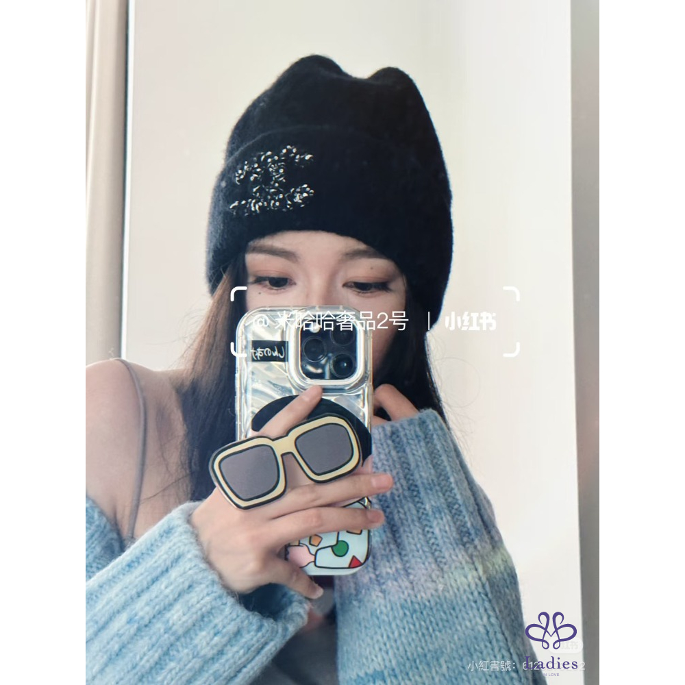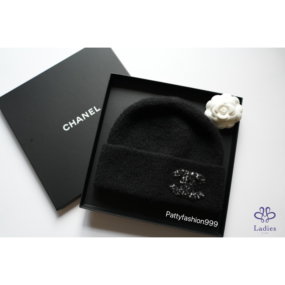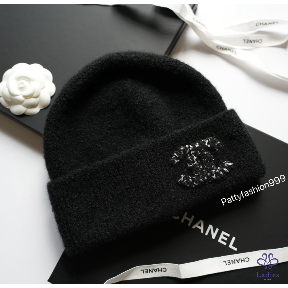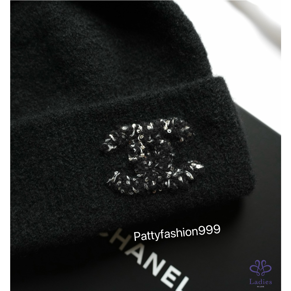✅全新小香 25A 亮片外雙C logo 喀什米爾混真絲毛帽