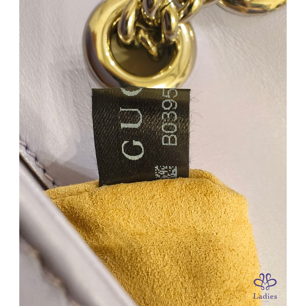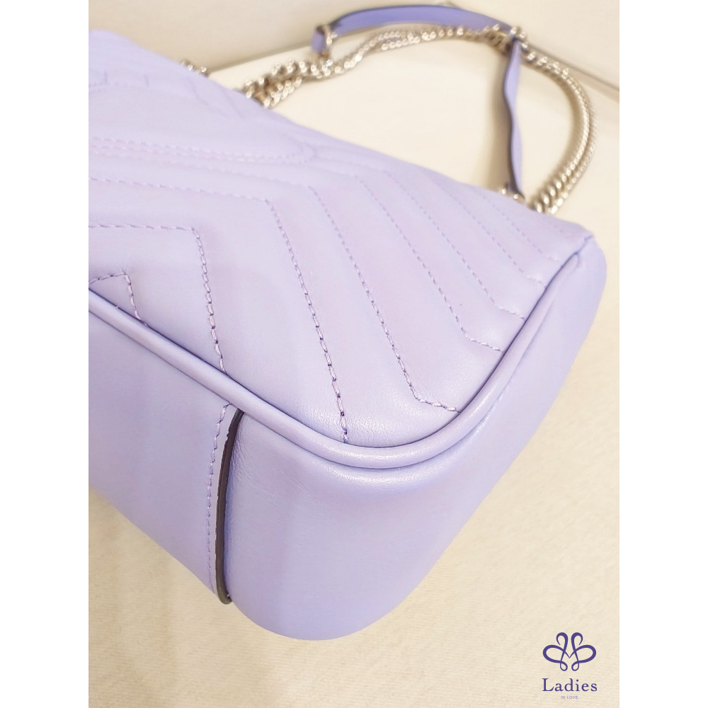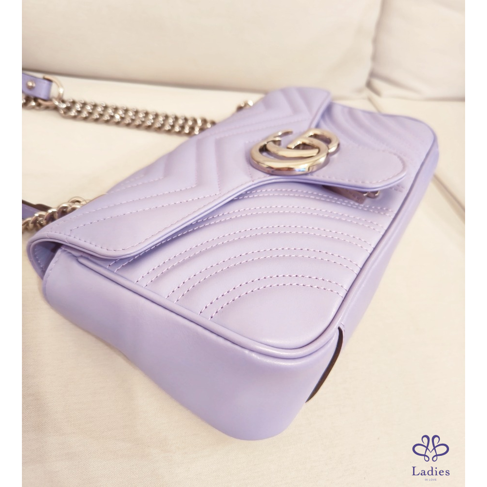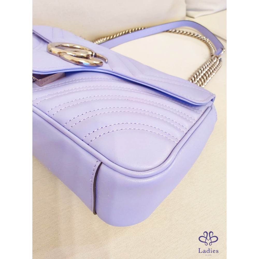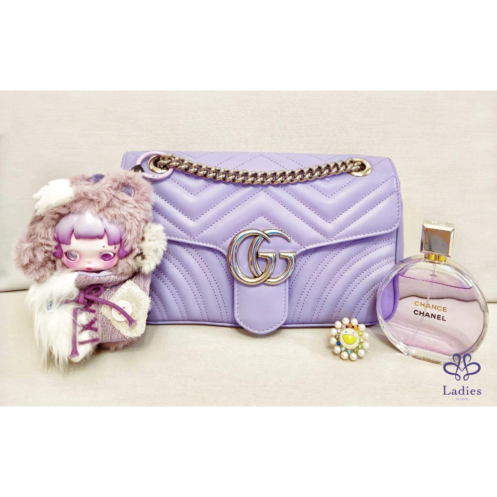 GUCC新款I以義式海岸度假氛圍為靈感,推出GG Marmont全新Sorbet雪酪色系列包款,以細緻澎潤的CHARME LAMB小羊皮製成,質感輕盈柔軟,搭配淡金與銀色金屬配件,繽紛色彩與細膩工藝完美結合,充分演繹盛夏假期的悠閒優雅新款雪酪系列全面升級小羊皮,薰衣草紫配銀釦,真的超級美!