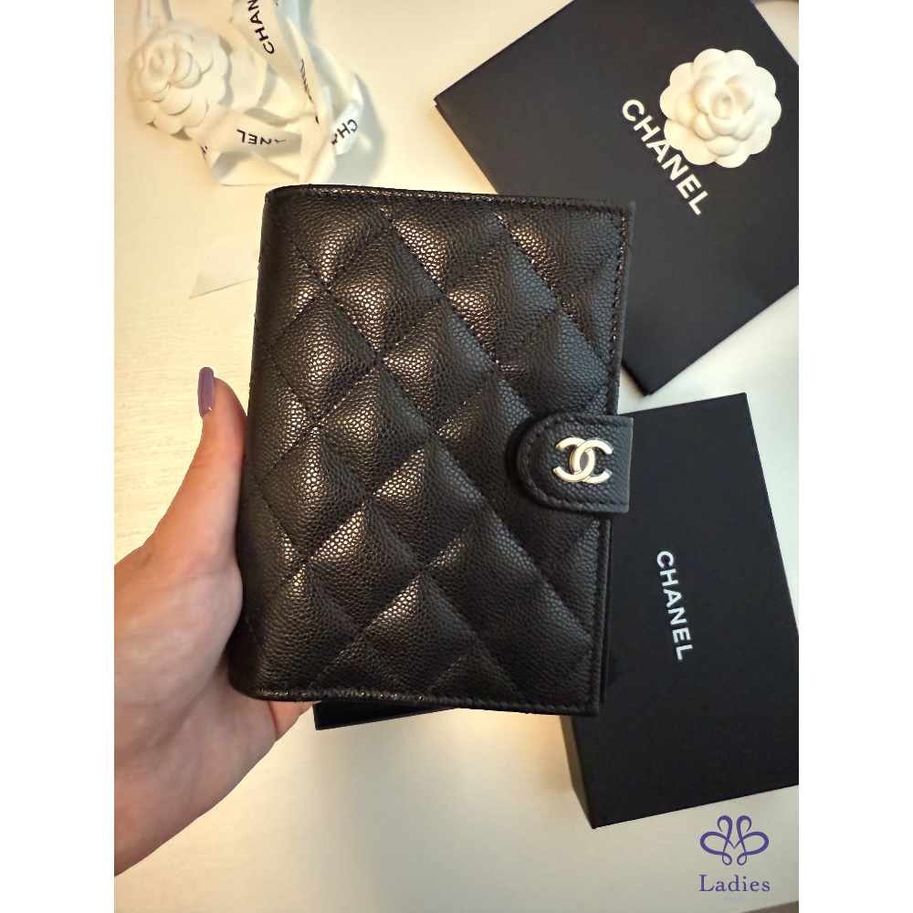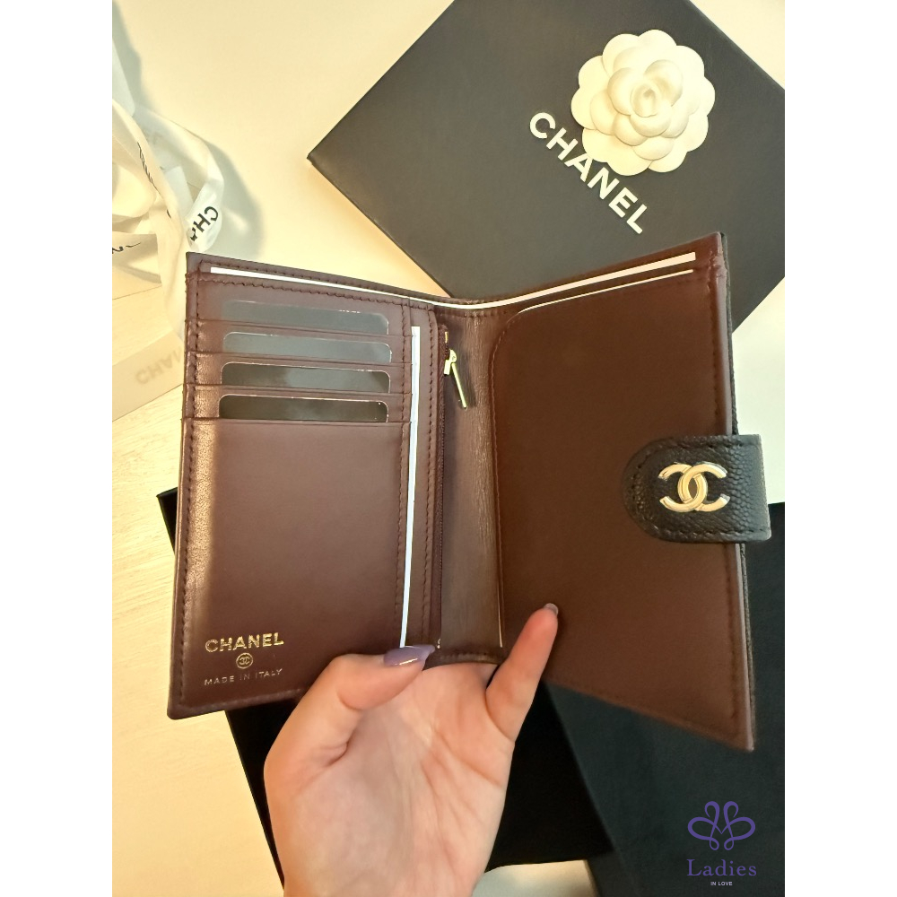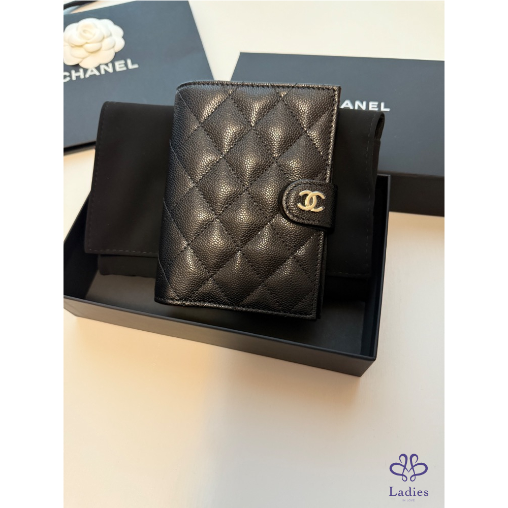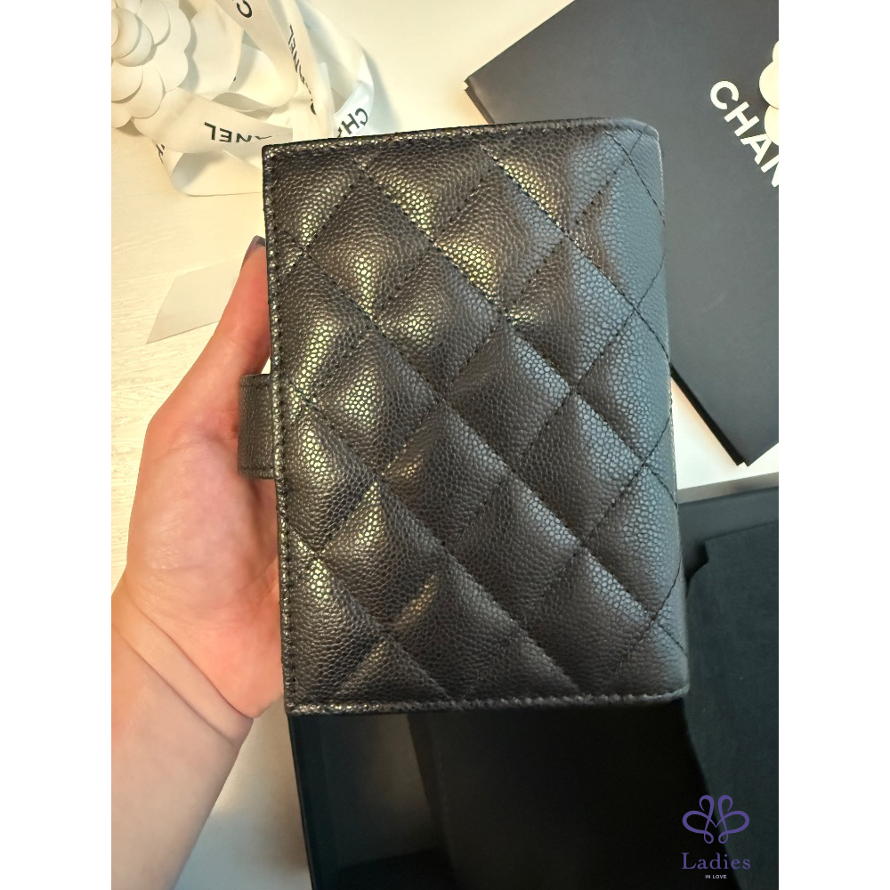 Chanel Cc logo 護照夾 荔枝皮 黑色金釦 全新全配