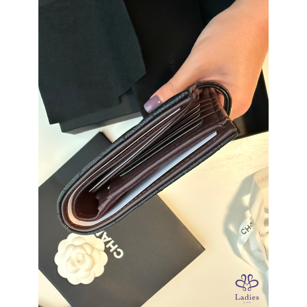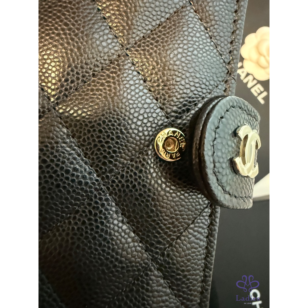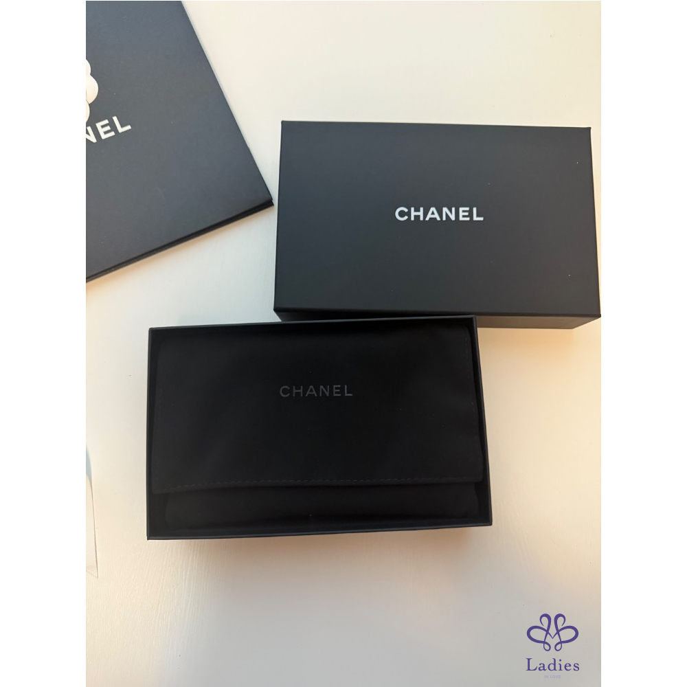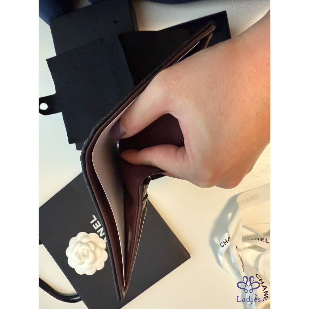 Chanel Cc logo 護照夾 荔枝皮 黑色金釦 全新全配