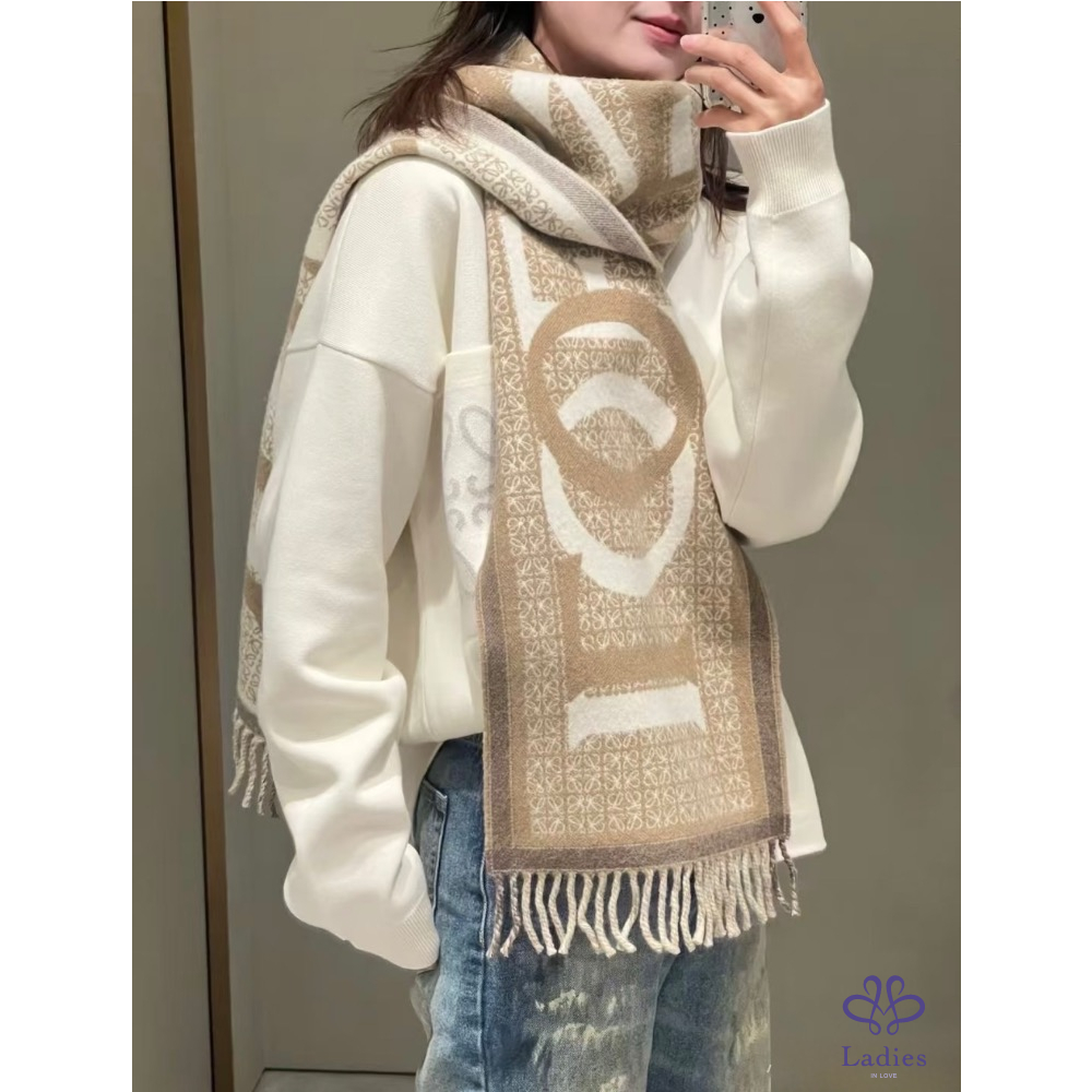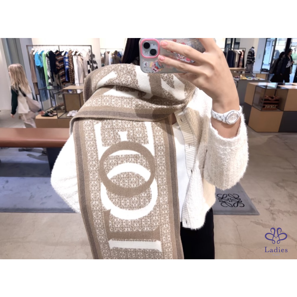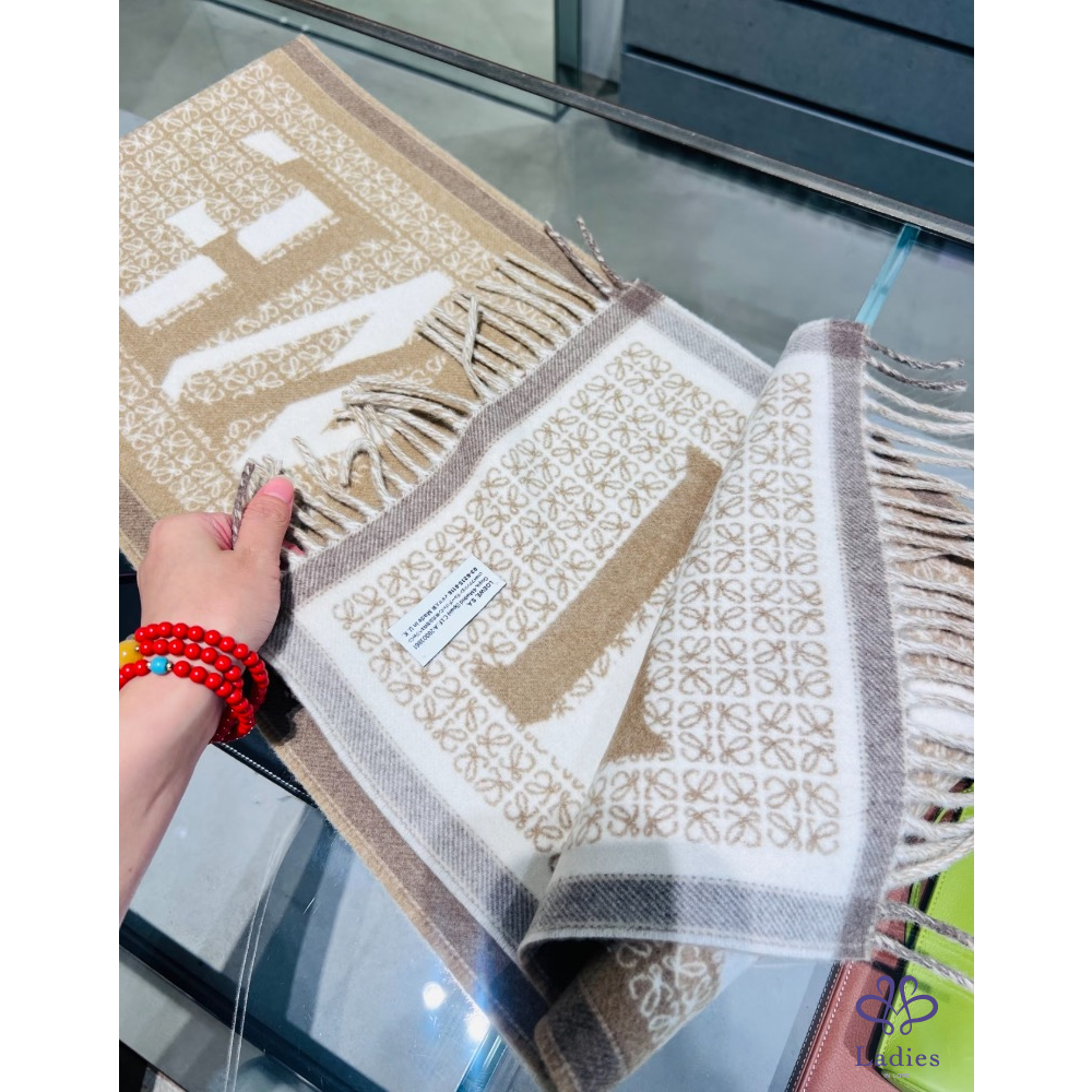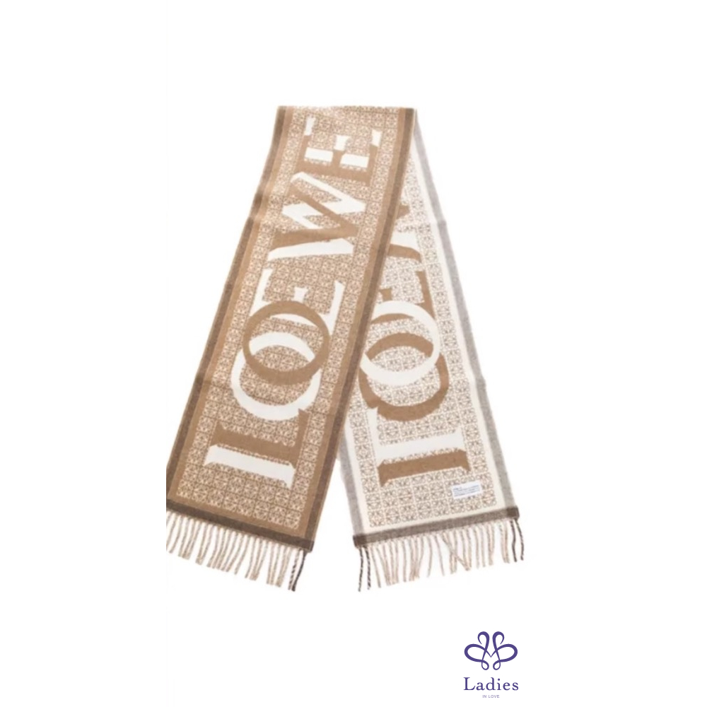 Loewe 奶茶色 品牌字母 圍巾 全新全配