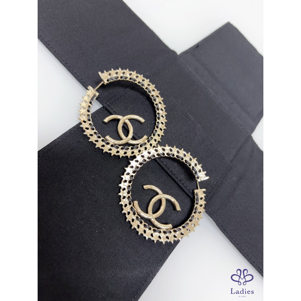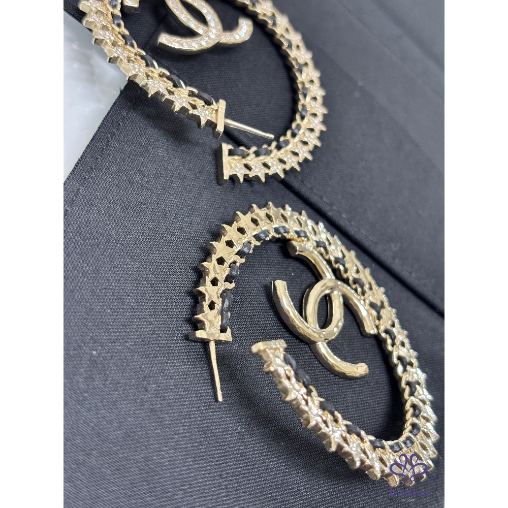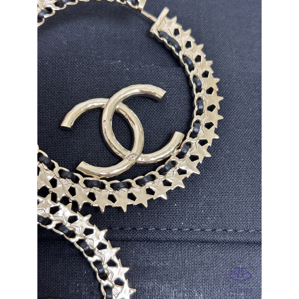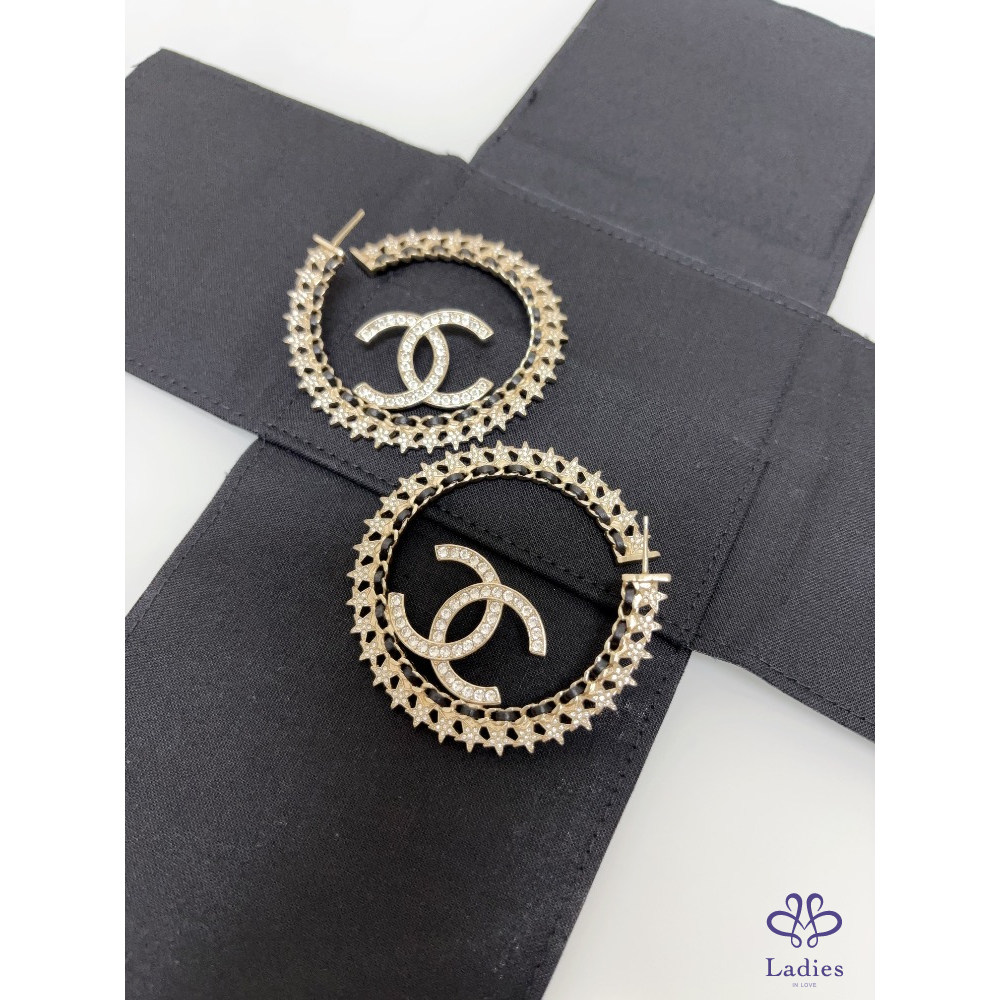 小香➰經典黑金皮穿鍊+水鑽星星⭐️大圈圈「穿式」耳環