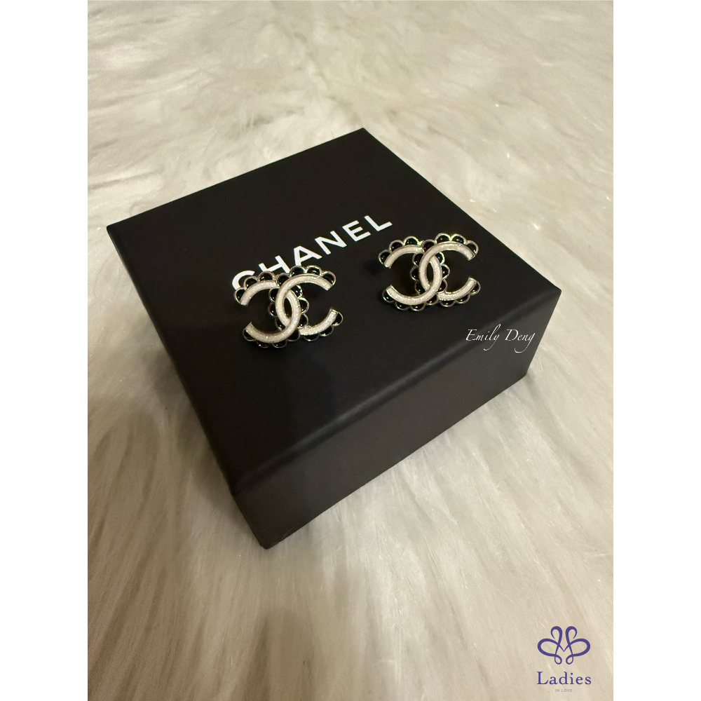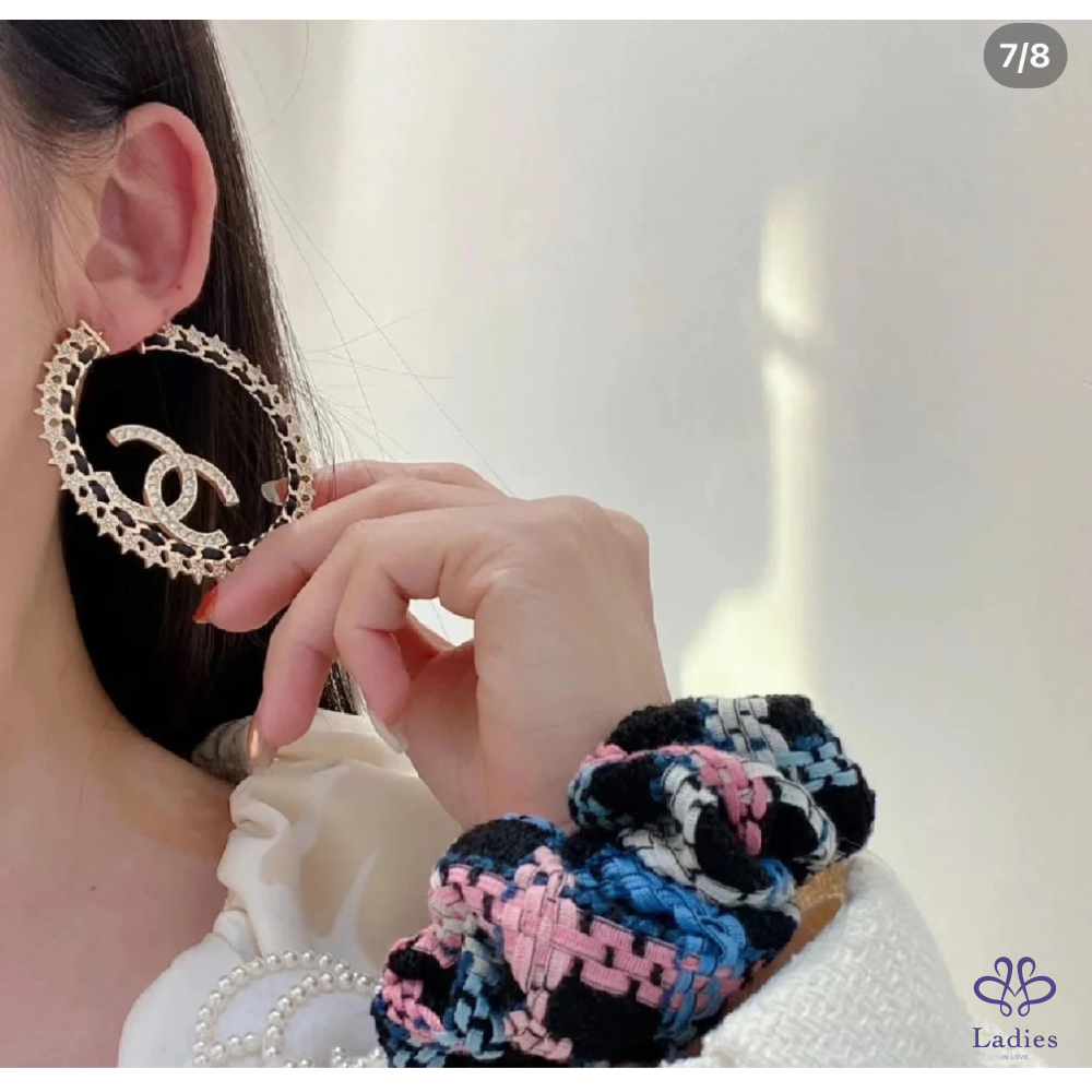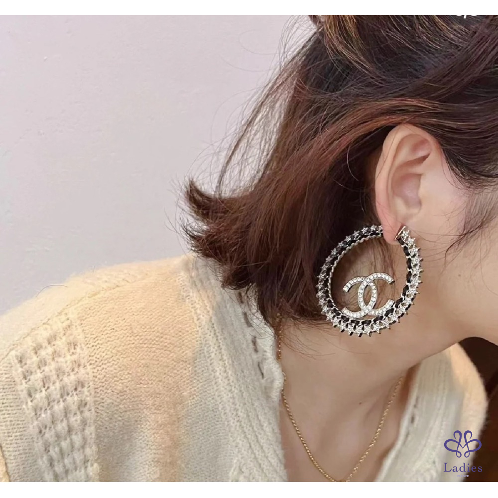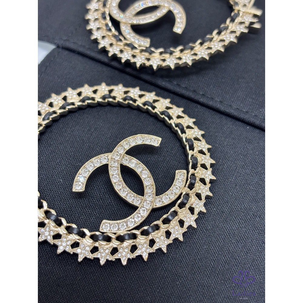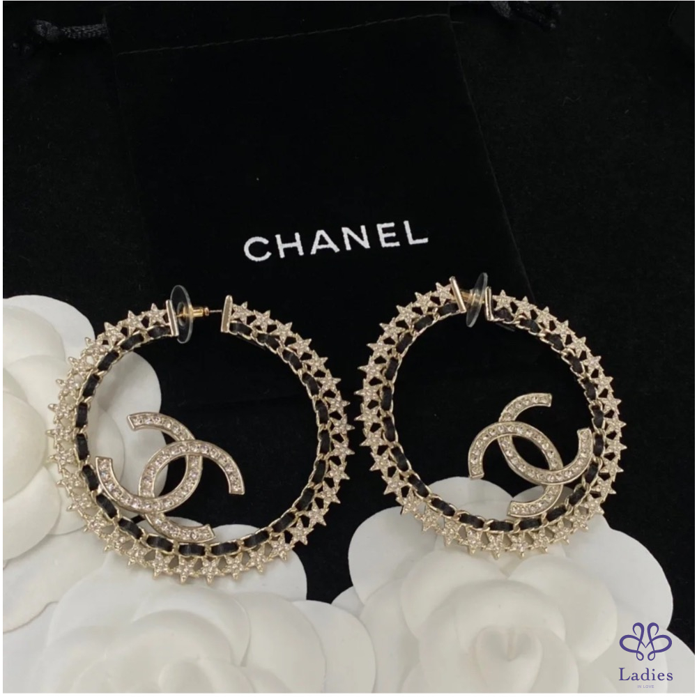 小香➰經典黑金皮穿鍊+水鑽星星⭐️大圈圈「穿式」耳環