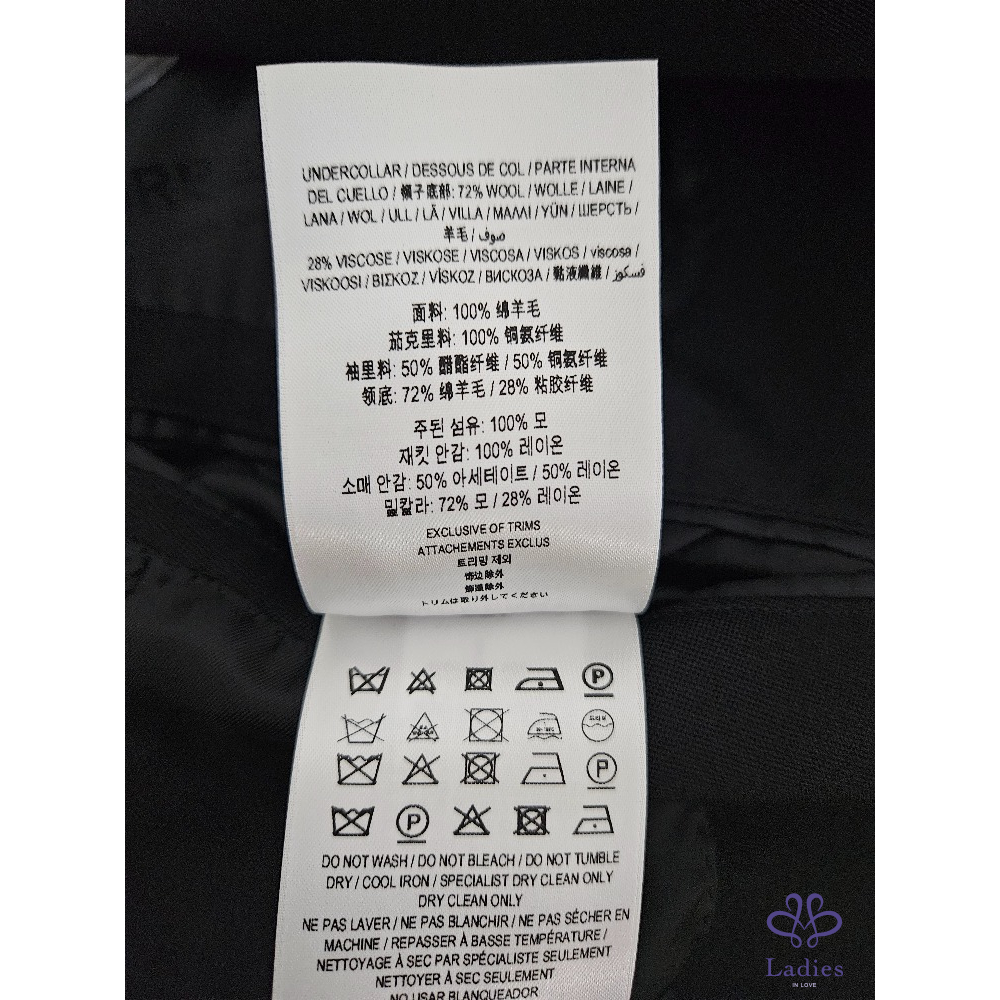 產品信息 比英系薄綿背心還甜啊 💗全新 英倫B家 英系 黑標 黑色 西裝外套 秀款,萬年不敗黑西外,拼接logo字母款,挺版 綿羊毛100%,面料極好,網圖穿搭供參考 😍代友售,爆甜割愛價$13888含運,櫃上羊毛要8萬起了,沒要買勿私訊打擾,謝謝 💗尺寸Uk4,內薄穿小L內美女可,肩37 胸44 腰42 袖60 長69/81公分,每人喜歡的鬆份不同,請實量較準,謝謝 💗吊牌已剪,離櫃當9.8新,口袋線未拆 請24小時匯款 他團同步 售出不退