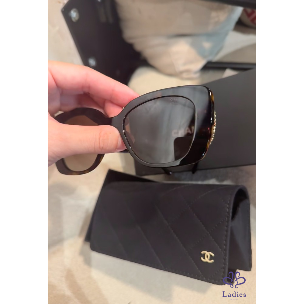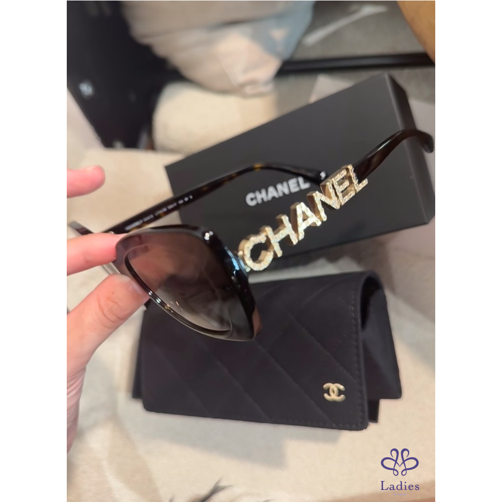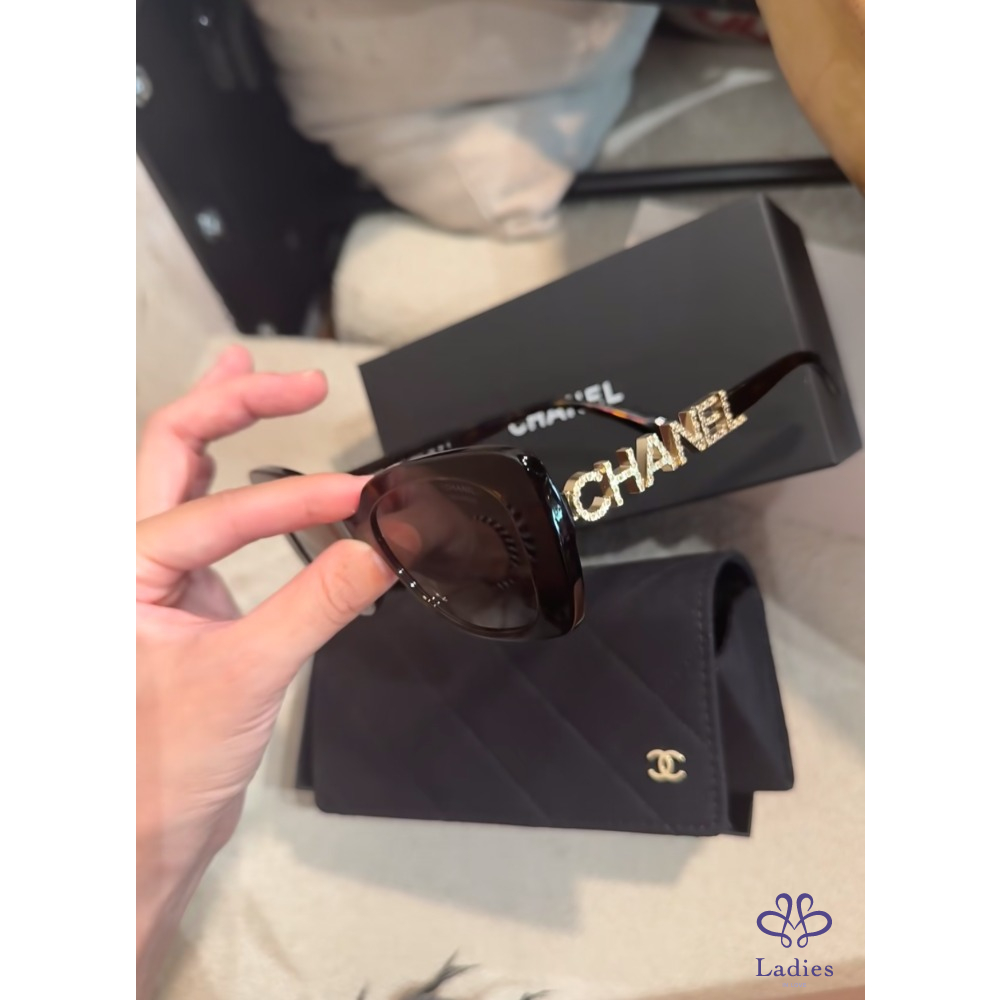全新 Chanel 水鑽外雙C標誌方框墨鏡