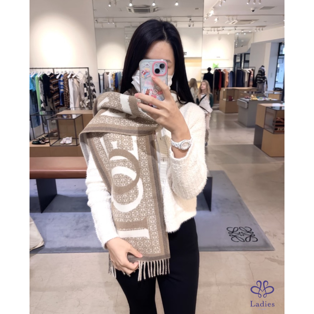 首頁 精品配件 Loewe 奶茶色 品牌字母 圍巾 全新全配