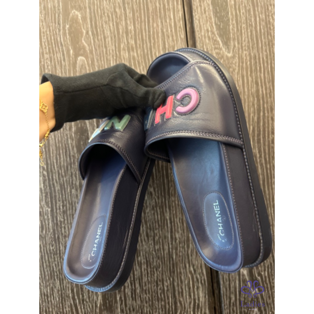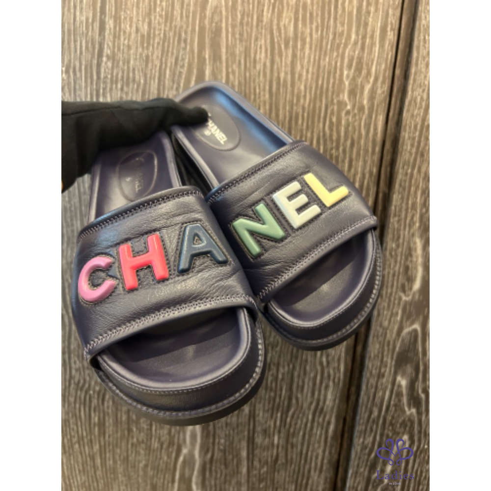 售chanel字母拖鞋。穿過幾次。尺寸38.5。偏小。37/半38的姐妹都可以穿