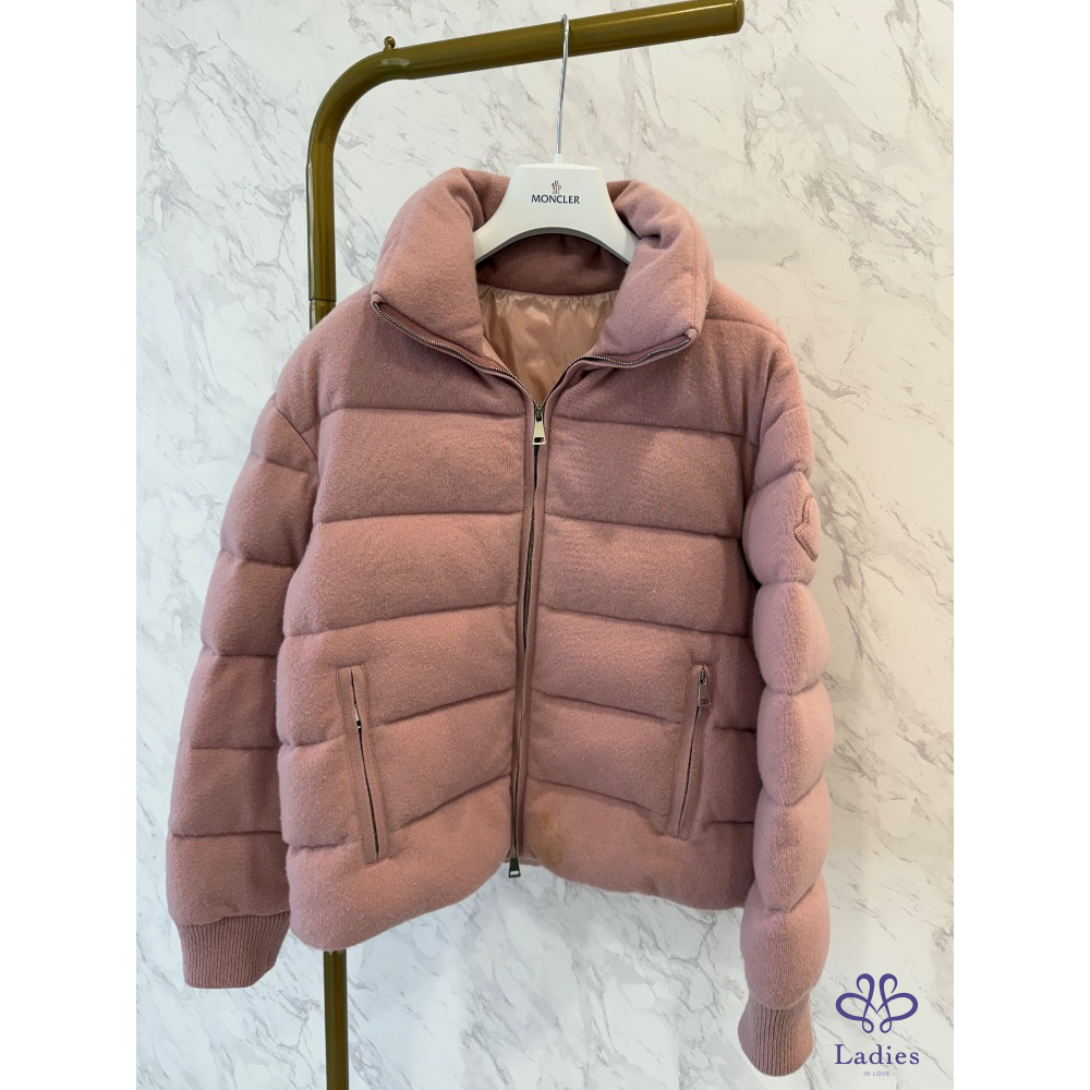 ❤️MONCLER 粉色棉織羽絨外套(附圍巾)
