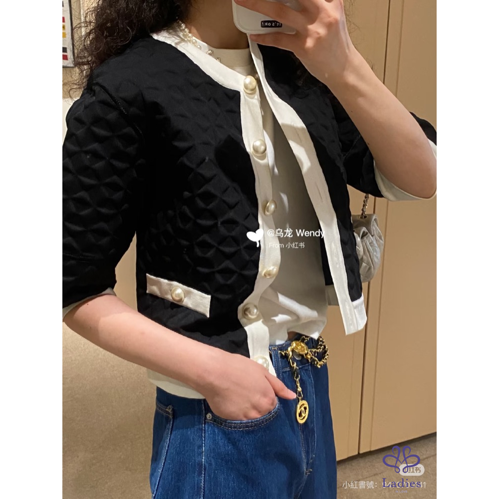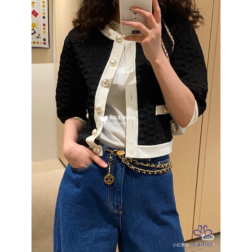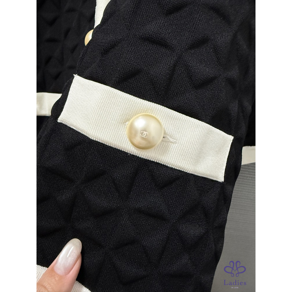 Chanel 經典風格 黑白珍珠釦 外套