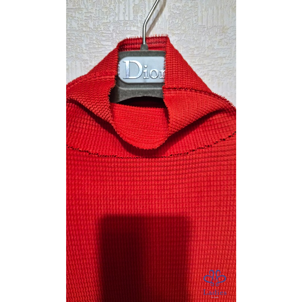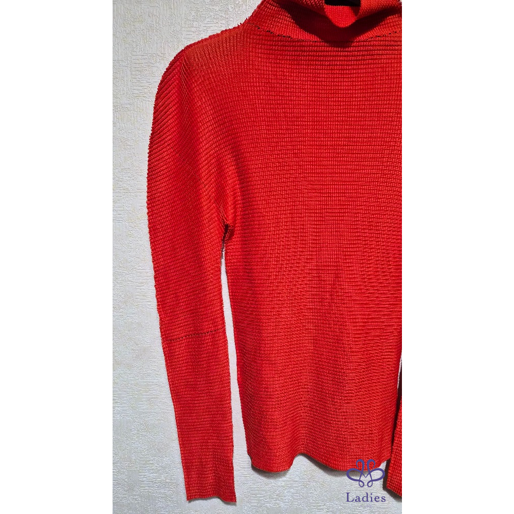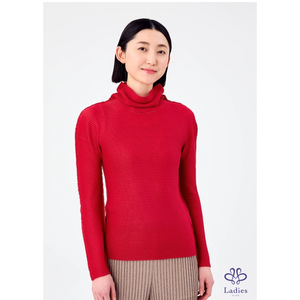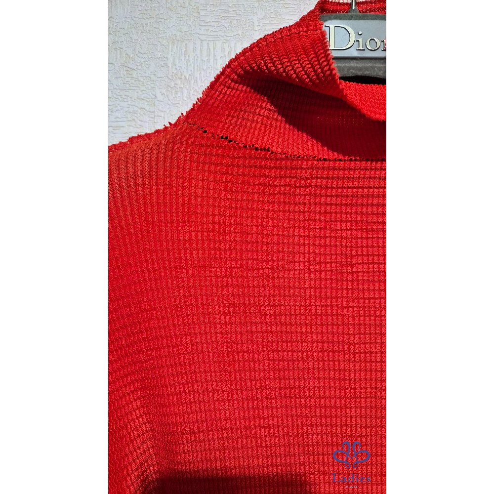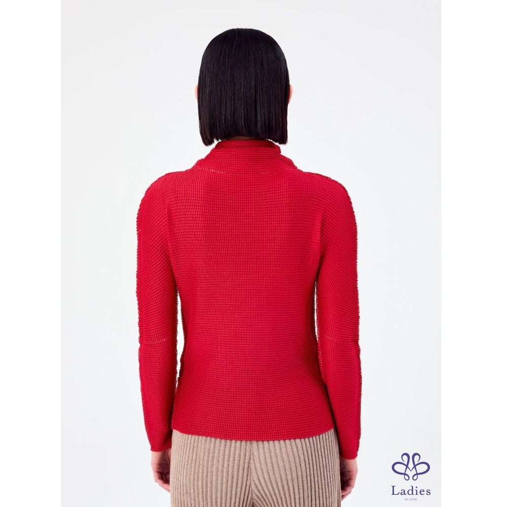 鮮艷的紅色高領長袖剪裁,風格強烈且磨登