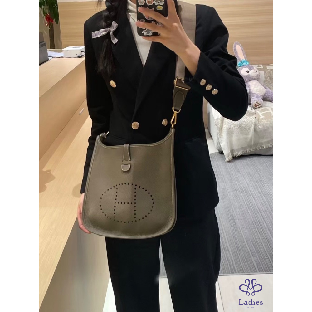 產品信息 開始流行大包隨性鬆弛感那就非Evelyn 29莫屬,穿孔皮革“H”低調logo背面還有大口袋,可調節肩帶,可以在更換自己喜歡背帶去變化非常實用又時尚‼️K刻‼️換上短背帶現在流行的hobo包時髦死❤️ 尺寸:29 x30x7cm背帶長度:83-128cm 附:盒子.防塵袋.說明書.緞帶.紙袋.購證