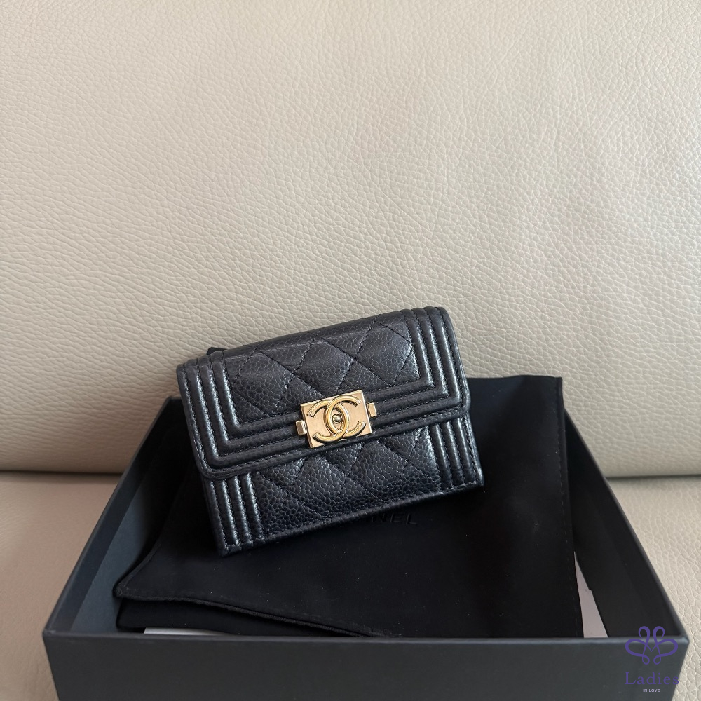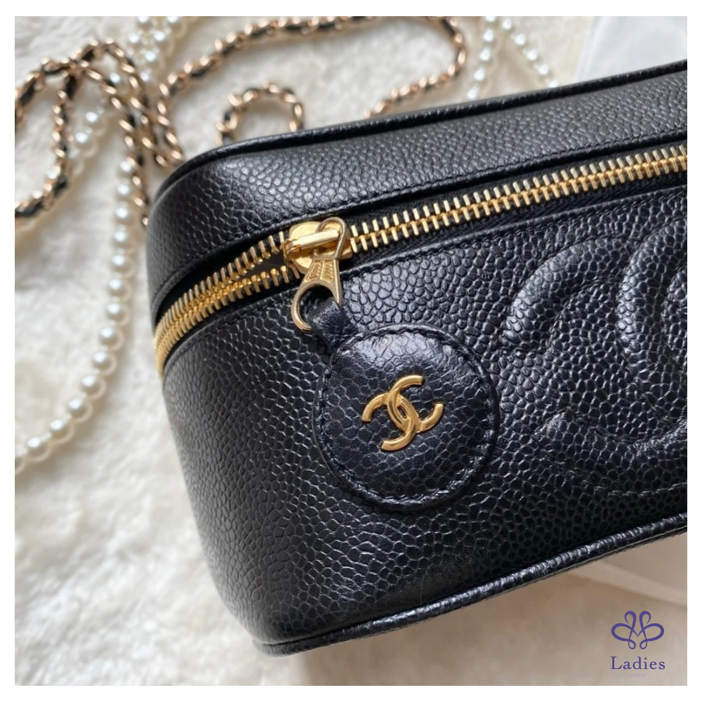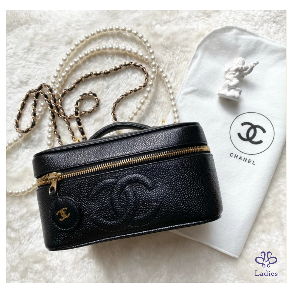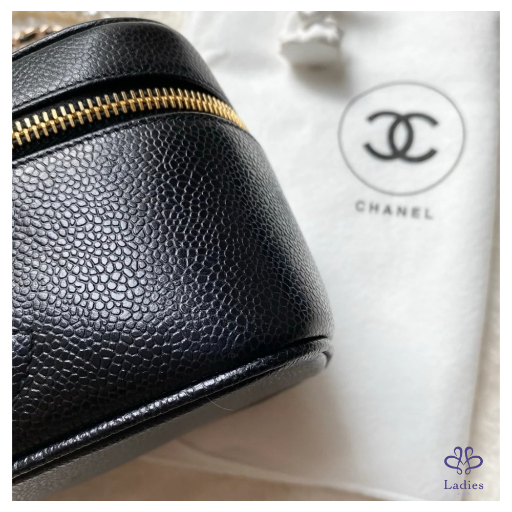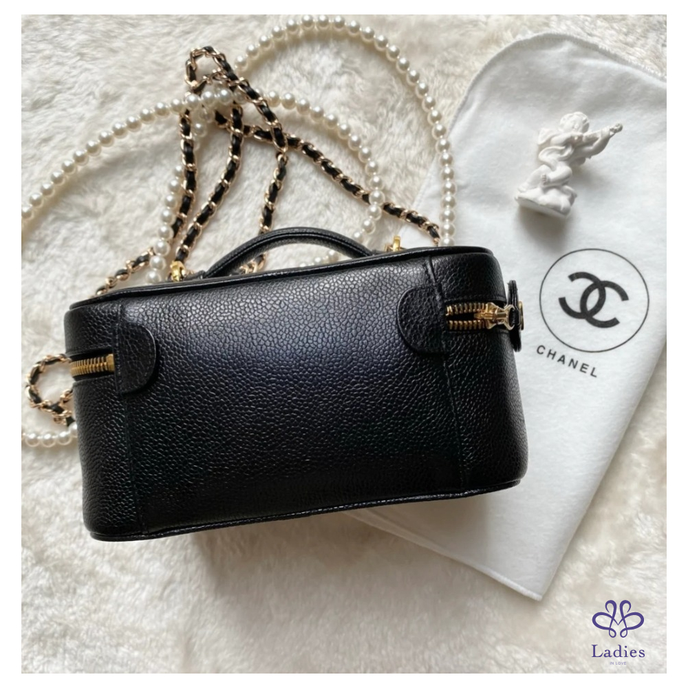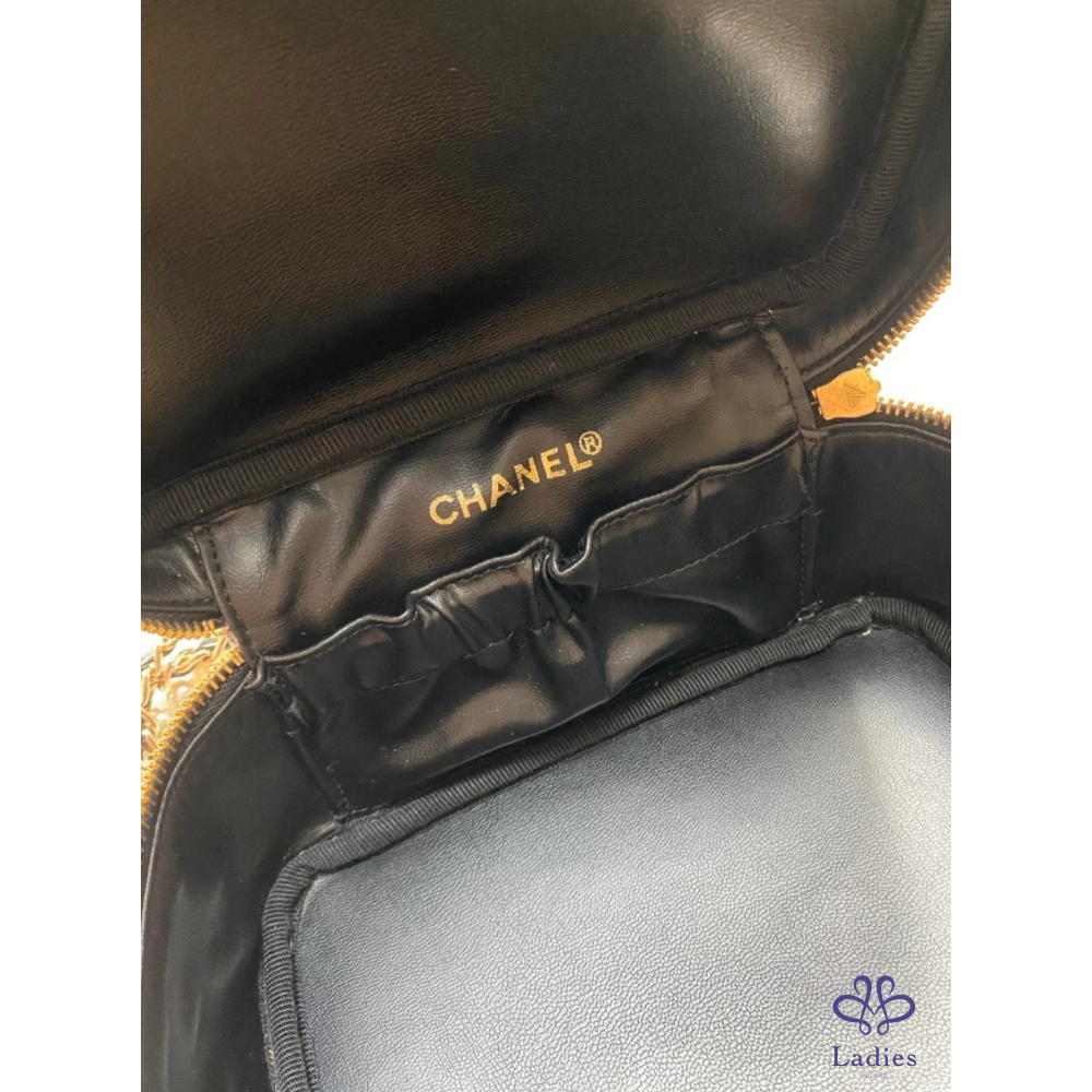 Chanel Vintage 黑色魚子醬橫版化妝包