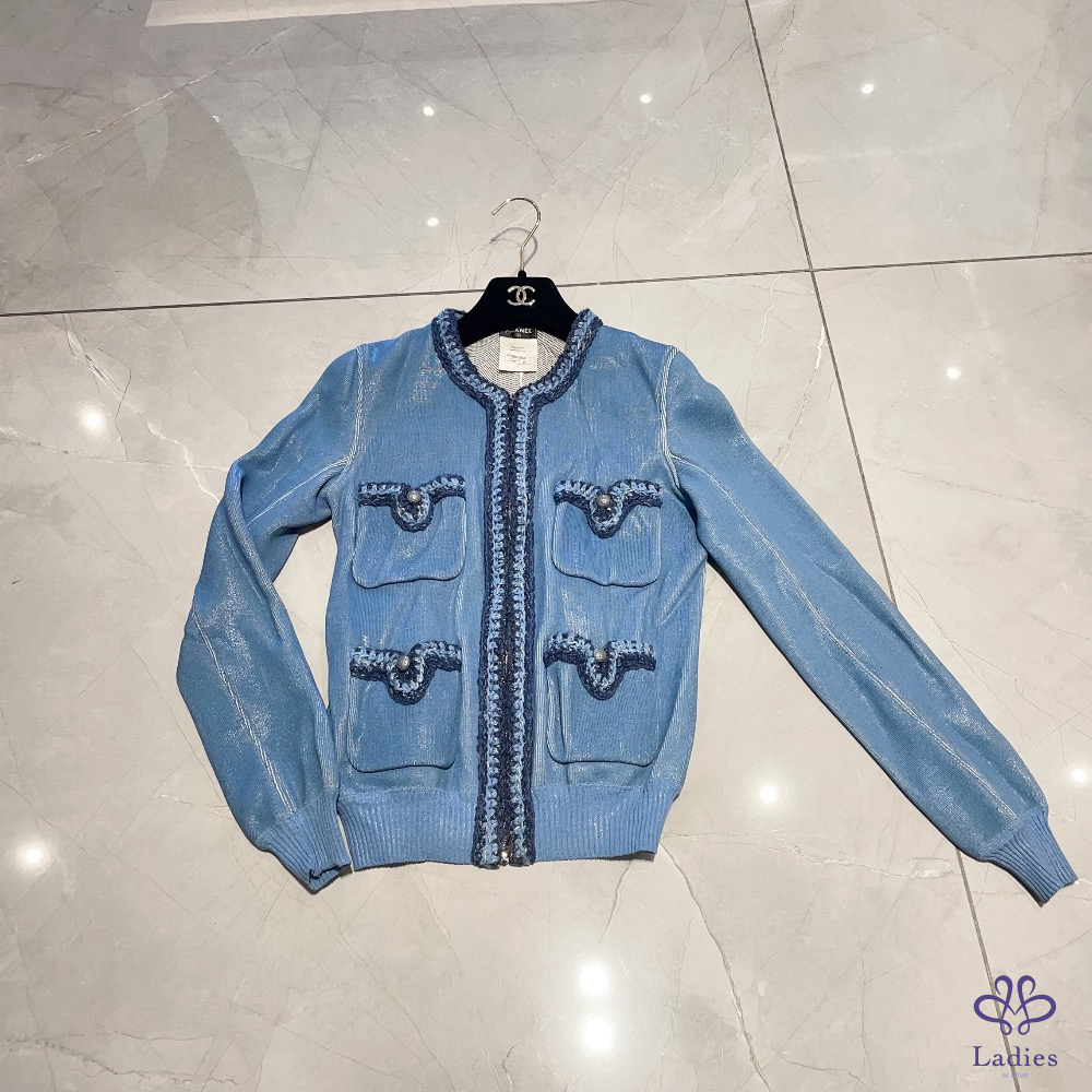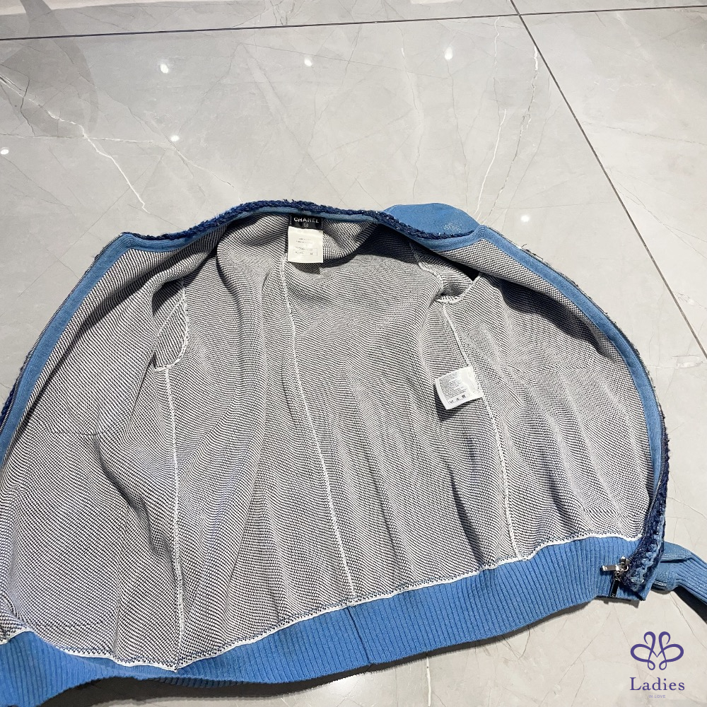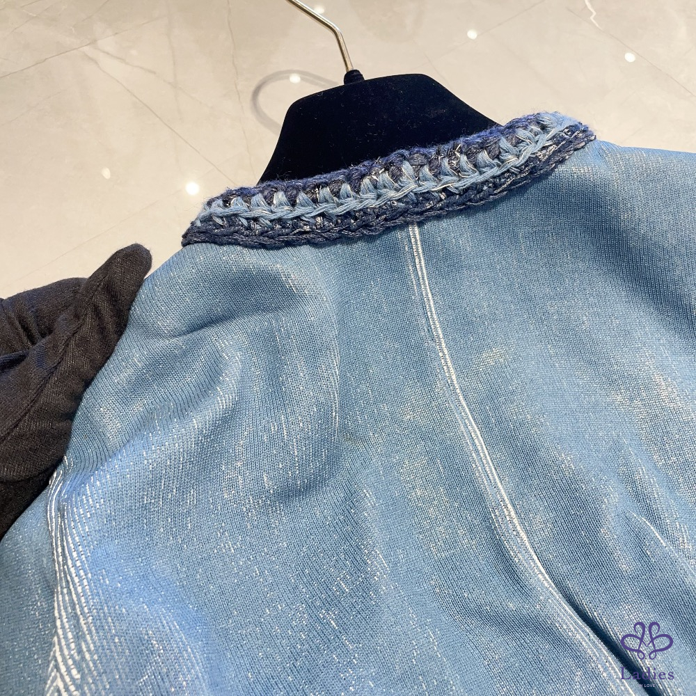 💖Chanel 牛仔藍四口織邊外套