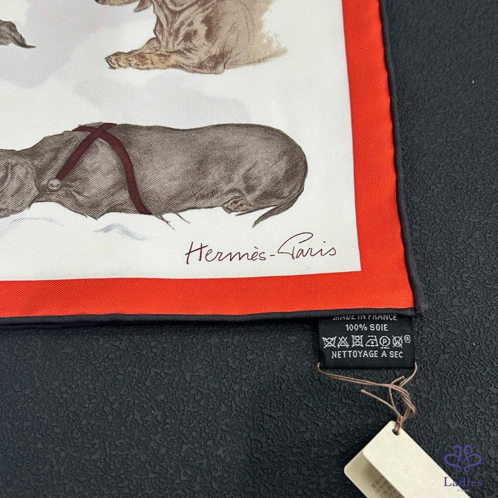 愛馬仕 45 方巾萊巴塞特狗狗主題盒子絲帶名片合格證