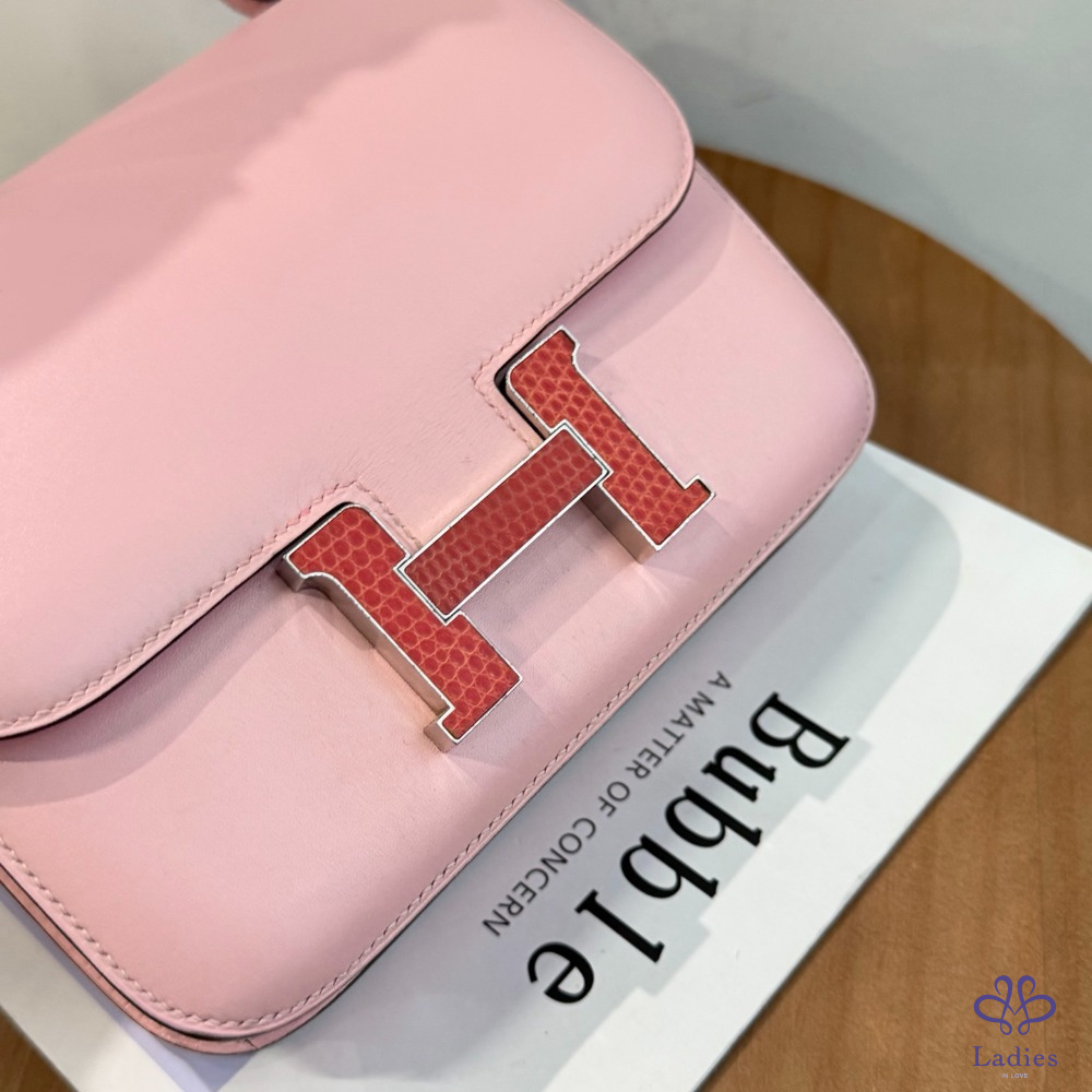 首頁 精品包包 愛馬仕 Constance mini 康康 19 限量款 3Q 櫻花粉拼蜥蜴扣 T 刻 附塵袋