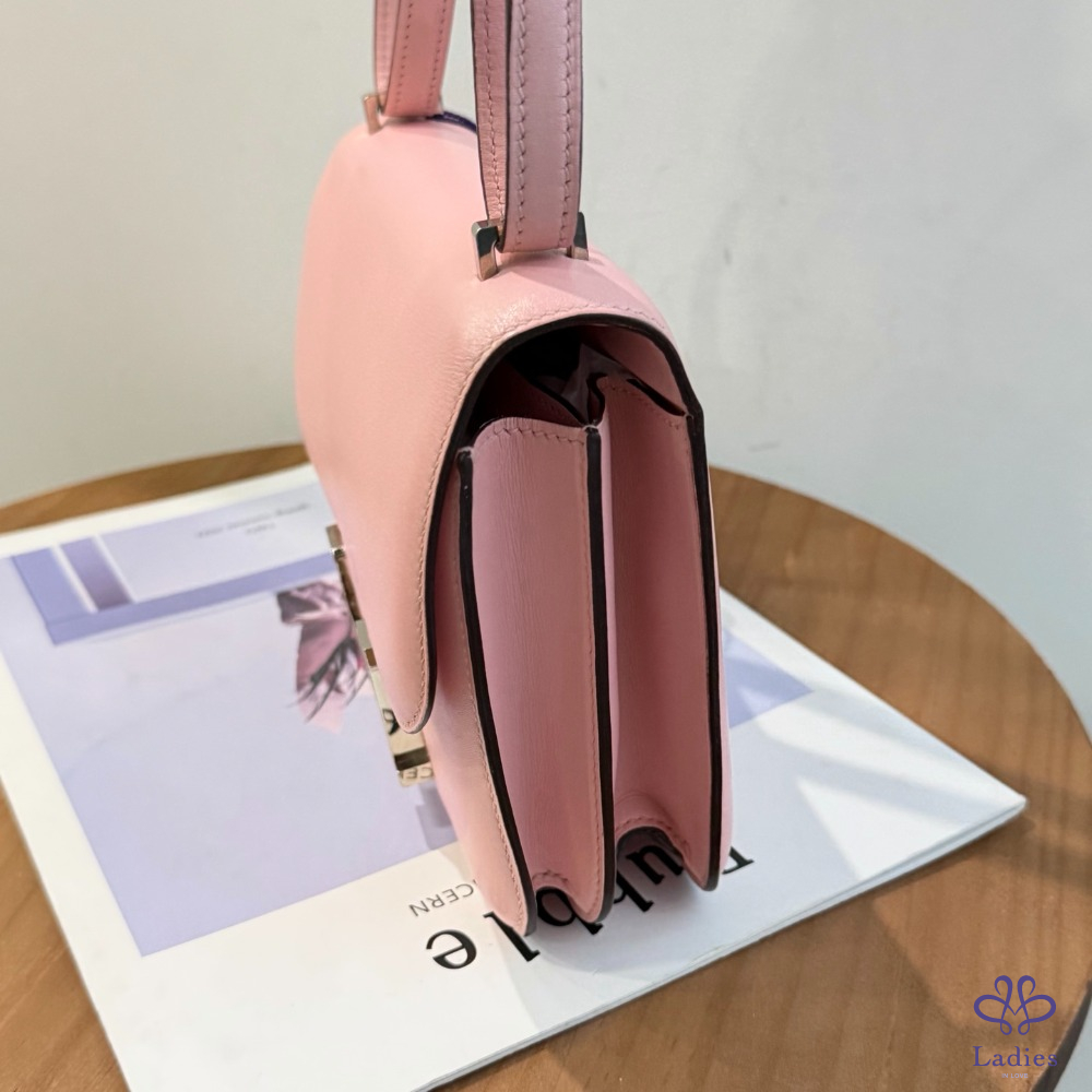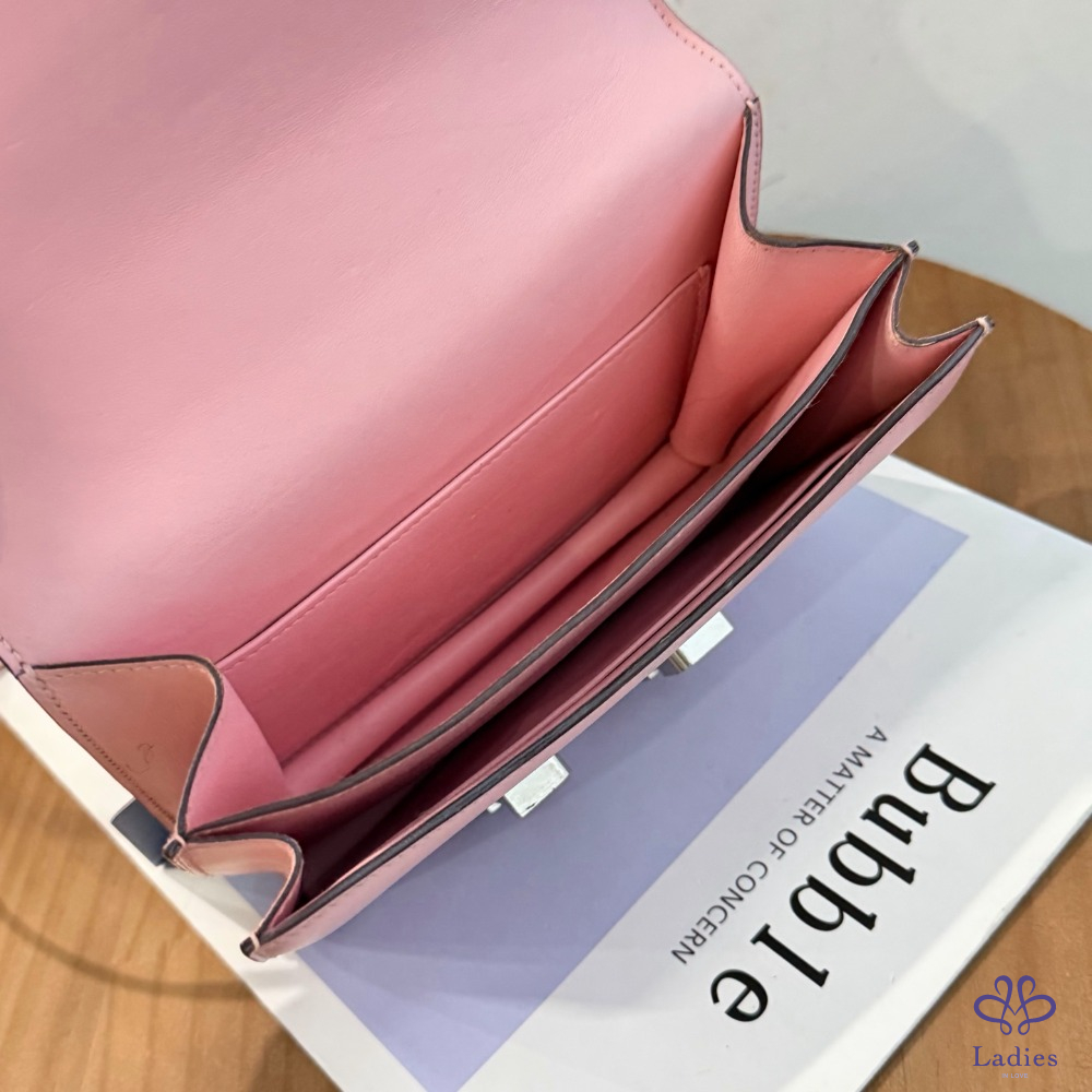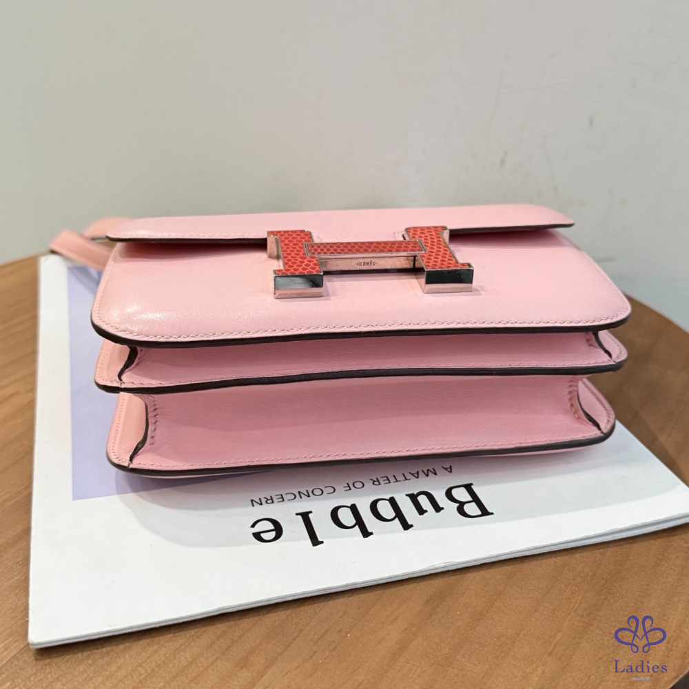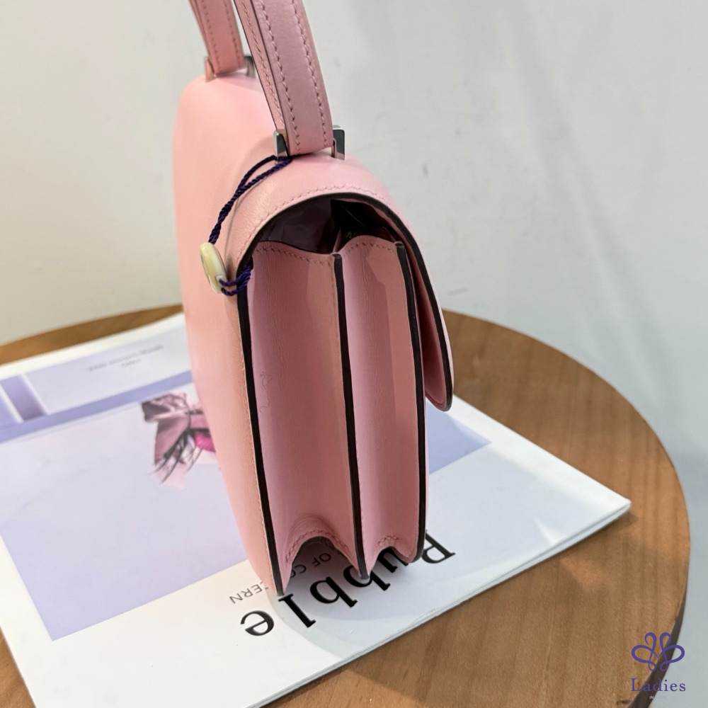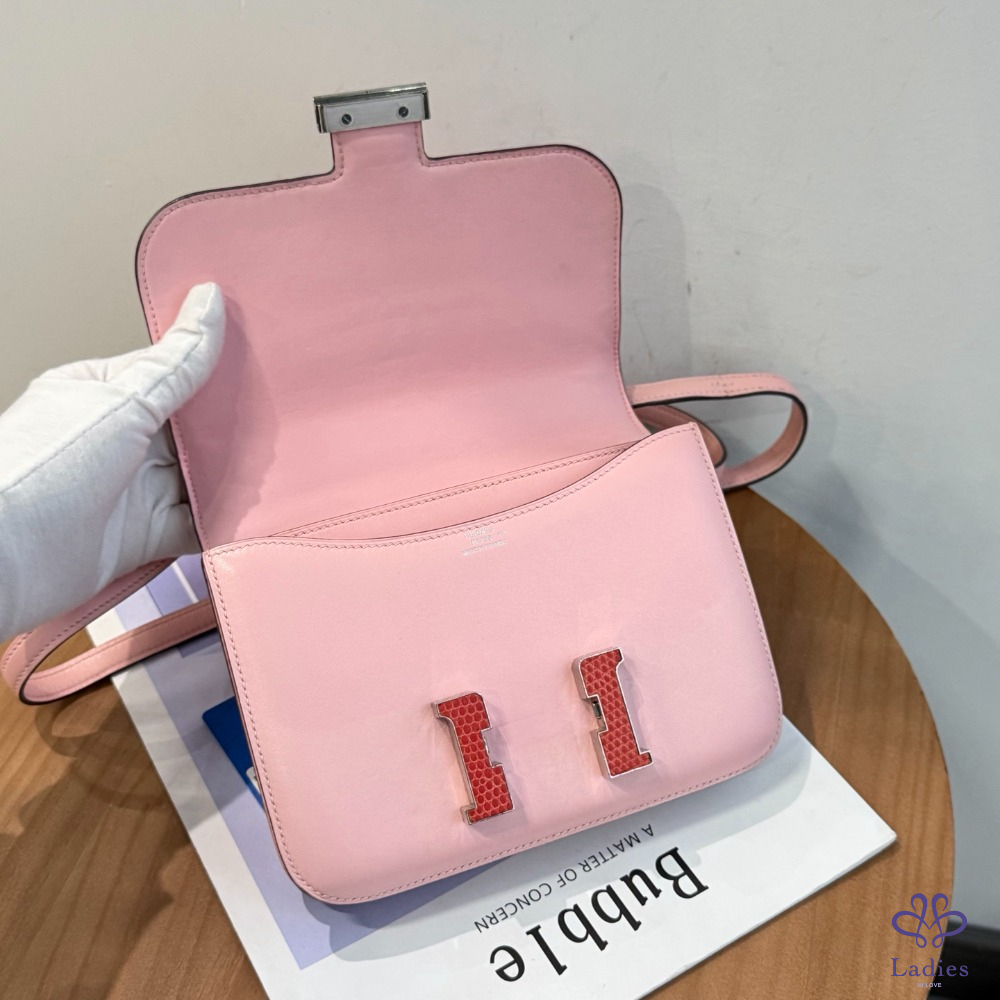 愛馬仕 Constance mini 康康 19 限量款 3Q 櫻花粉拼蜥蜴扣 T 刻 防塵袋