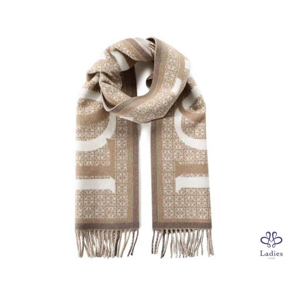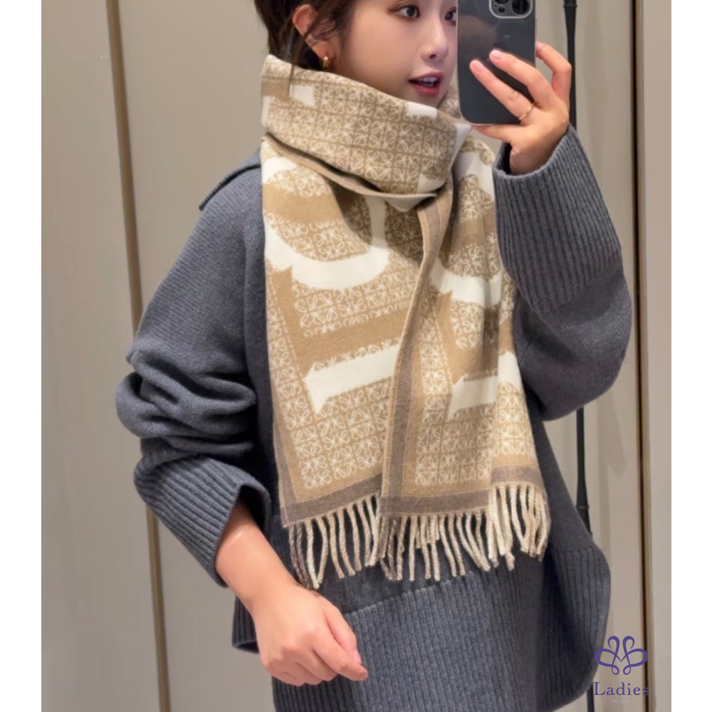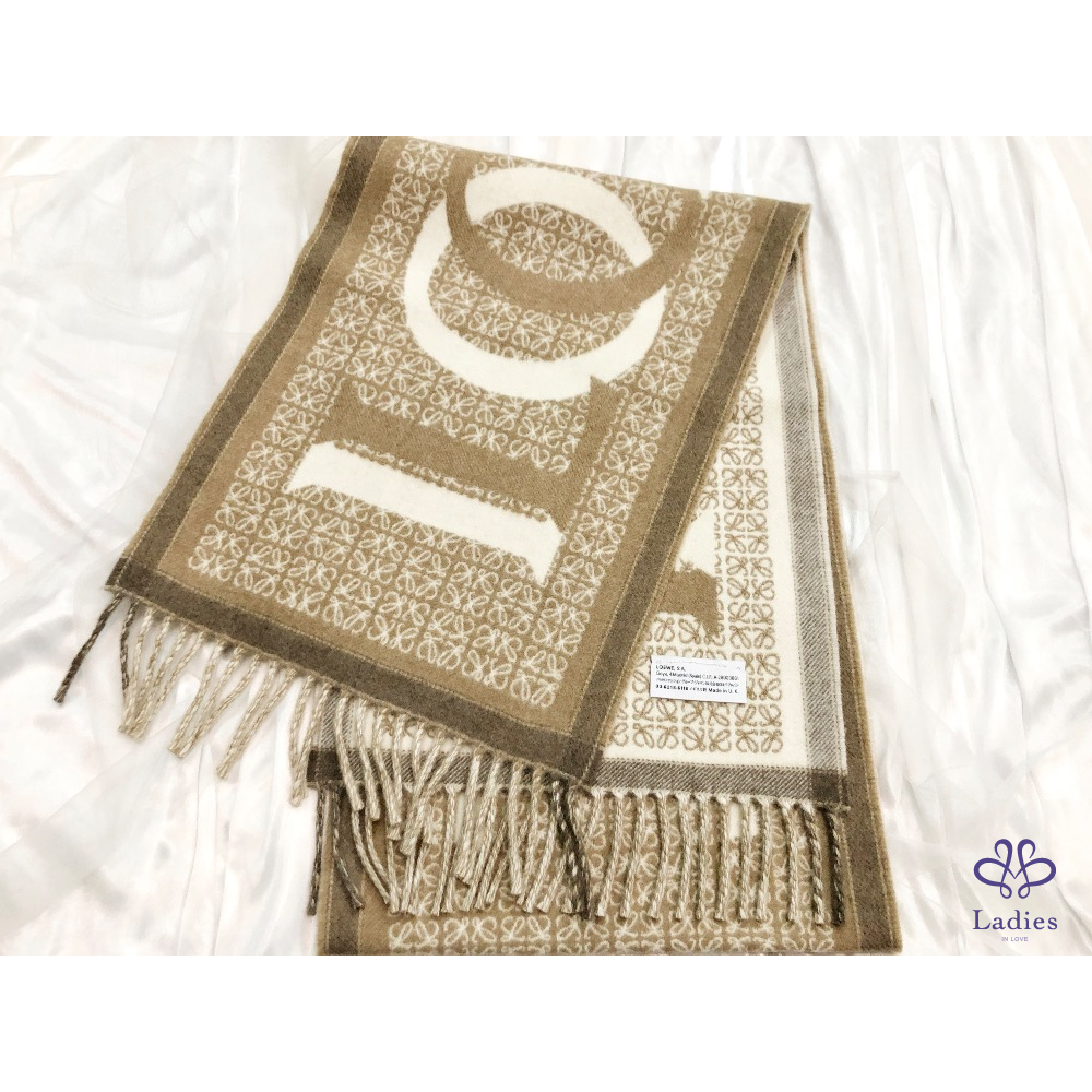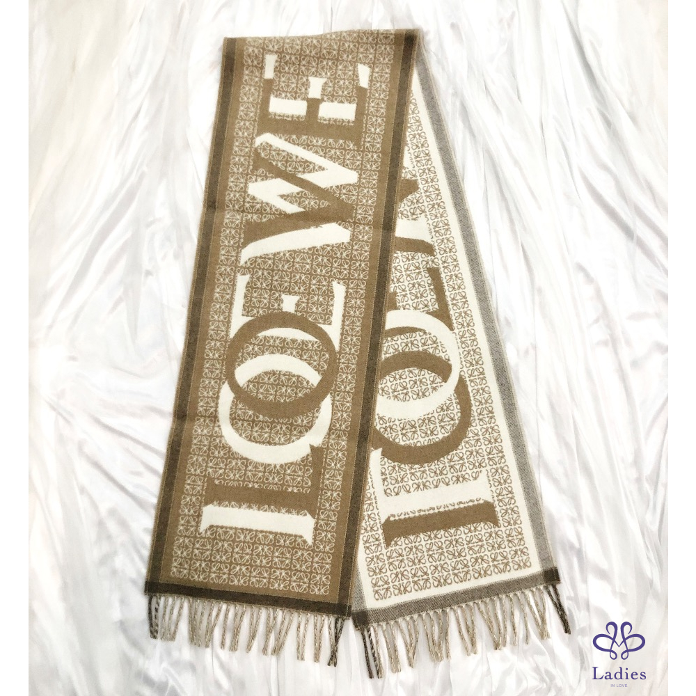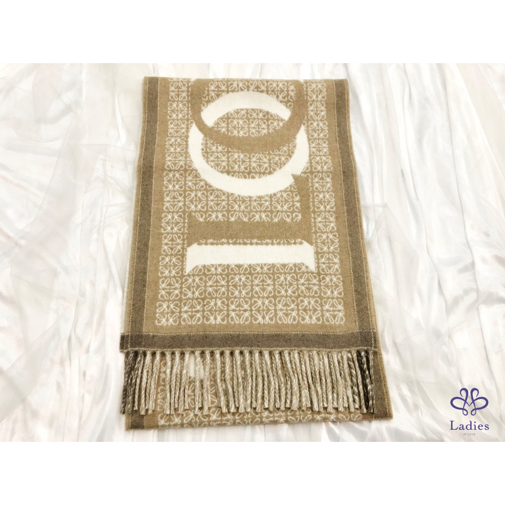 首頁 精品配件 LOEWE 羅威 燕麥奶茶 羊毛羊絨混紡 雙面 字母 logo 圍巾 全新✨