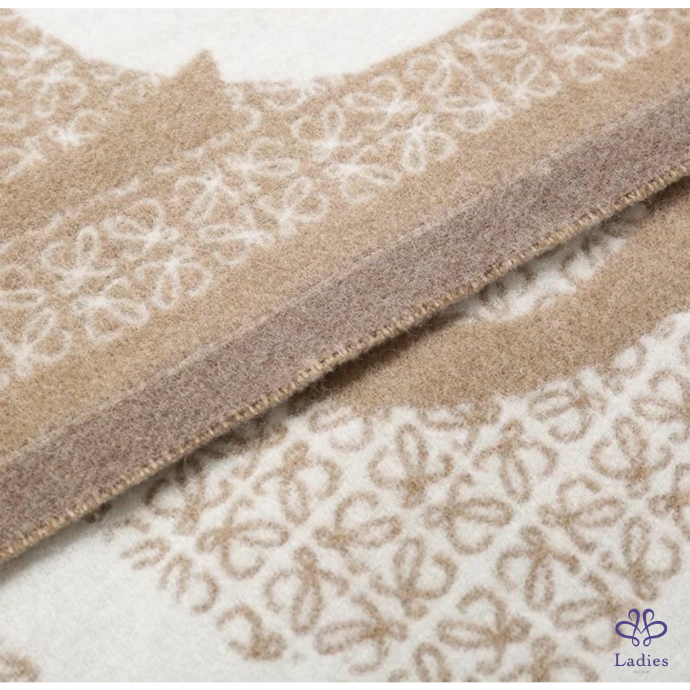 LOEWE 羅威 燕麥奶茶 羊毛羊絨混紡 雙面 字母 logo 圍巾 全新✨