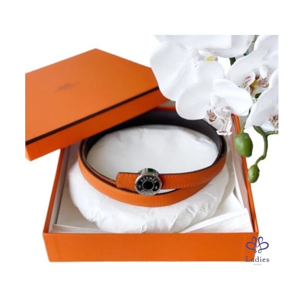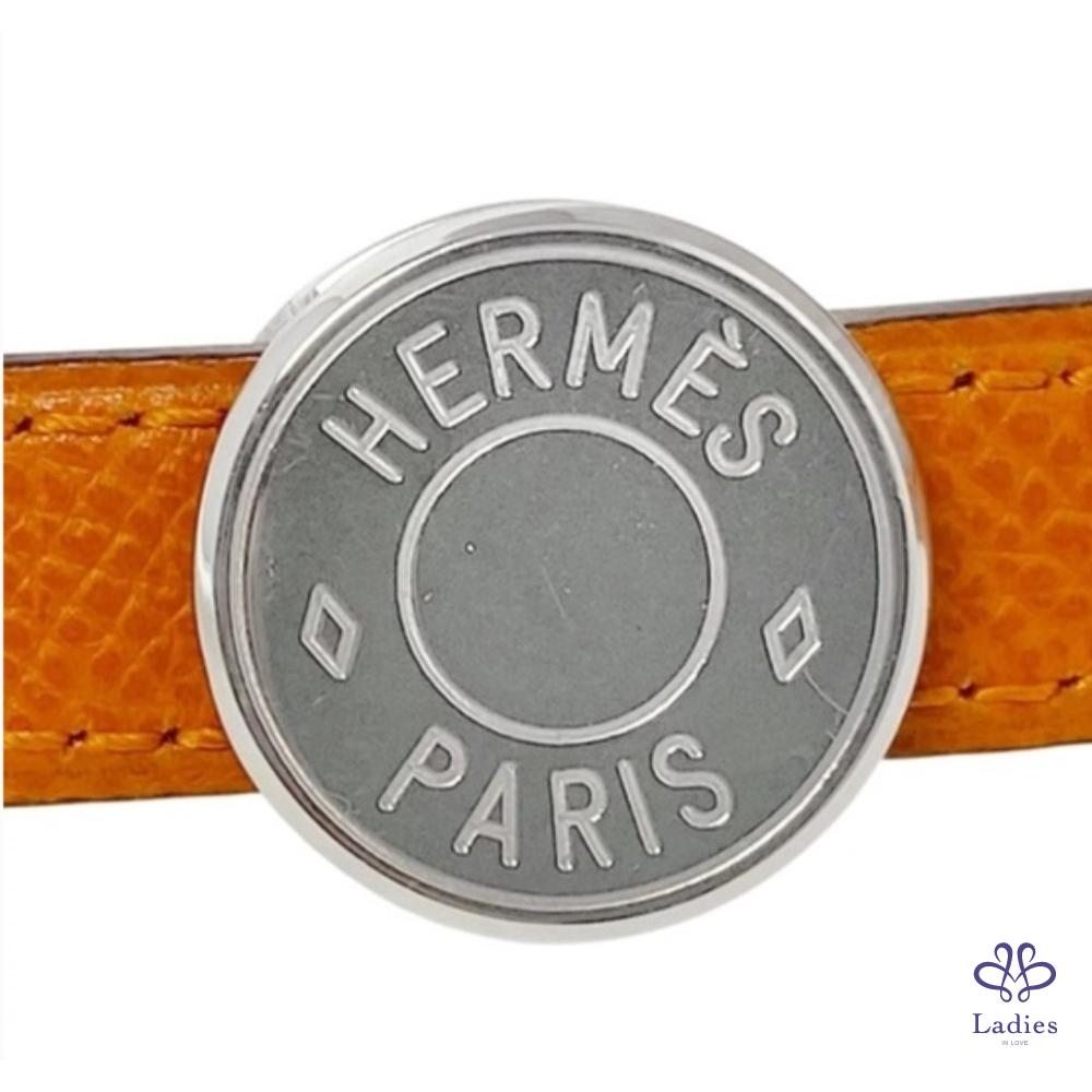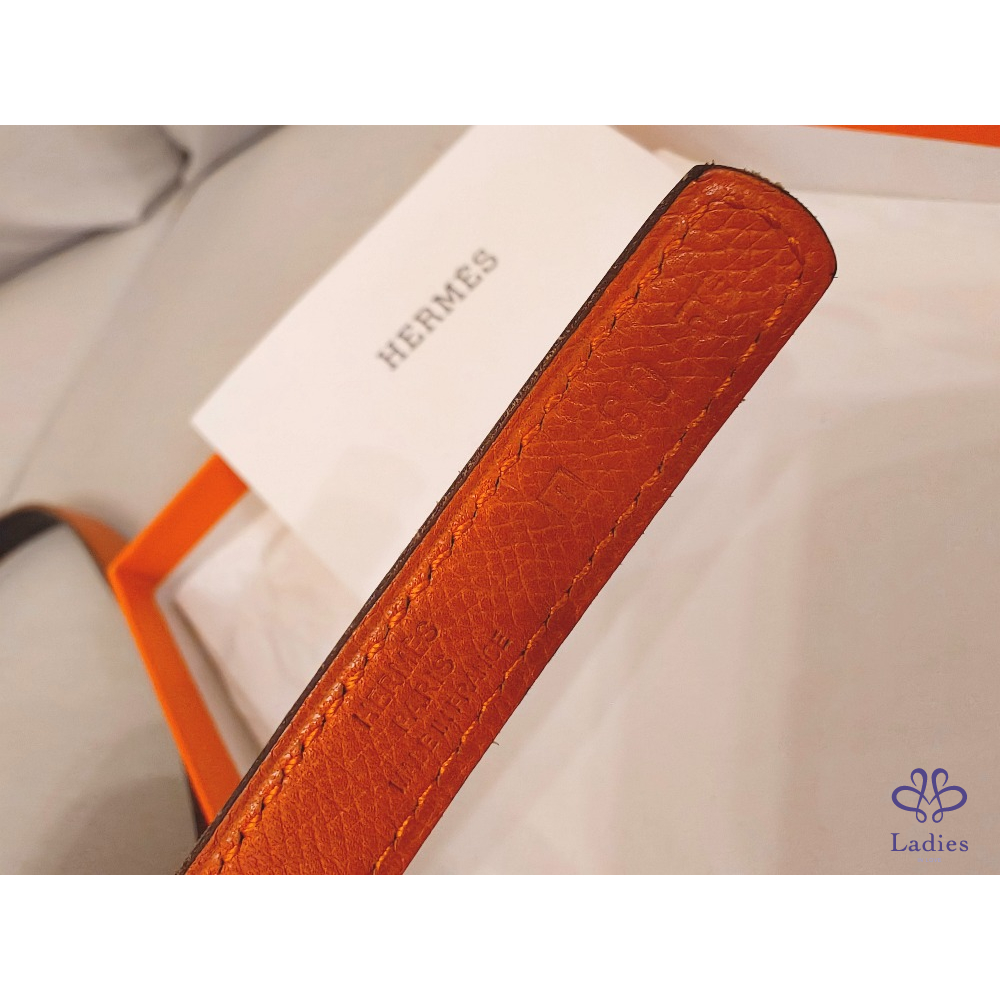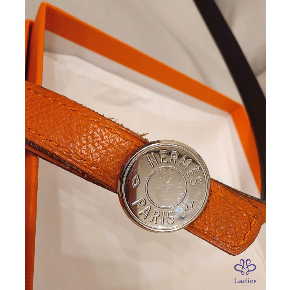 首頁 精品配件 Hermes橙棕雙面銀釦細皮帶
