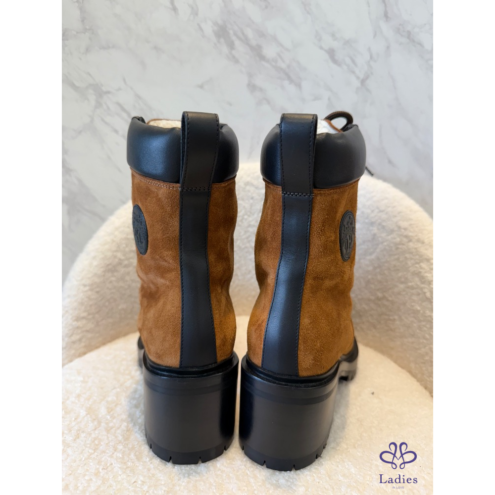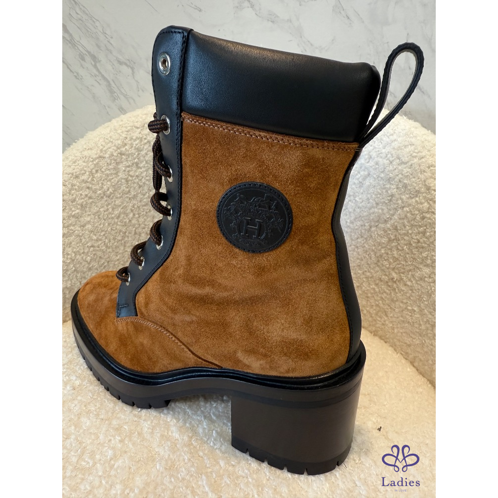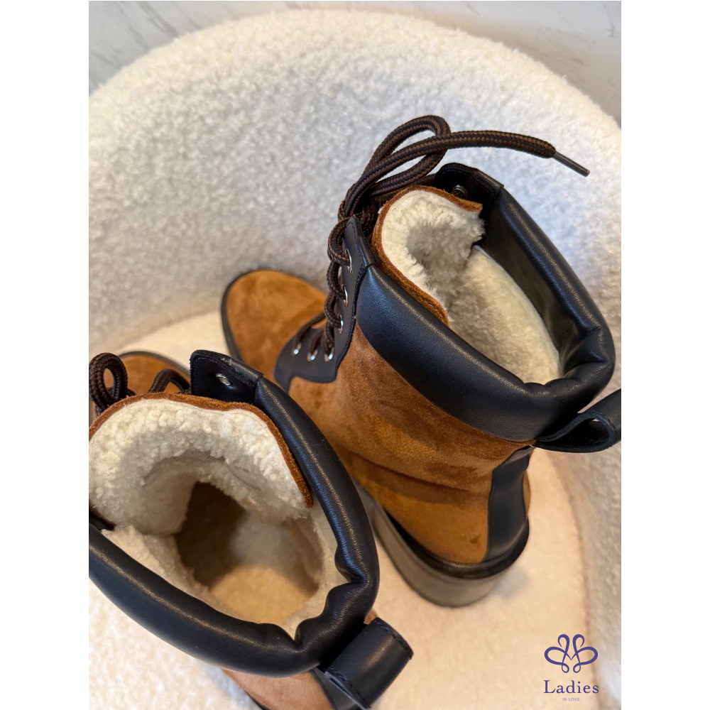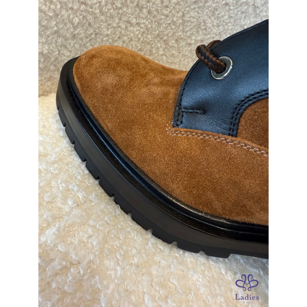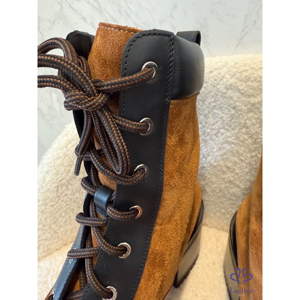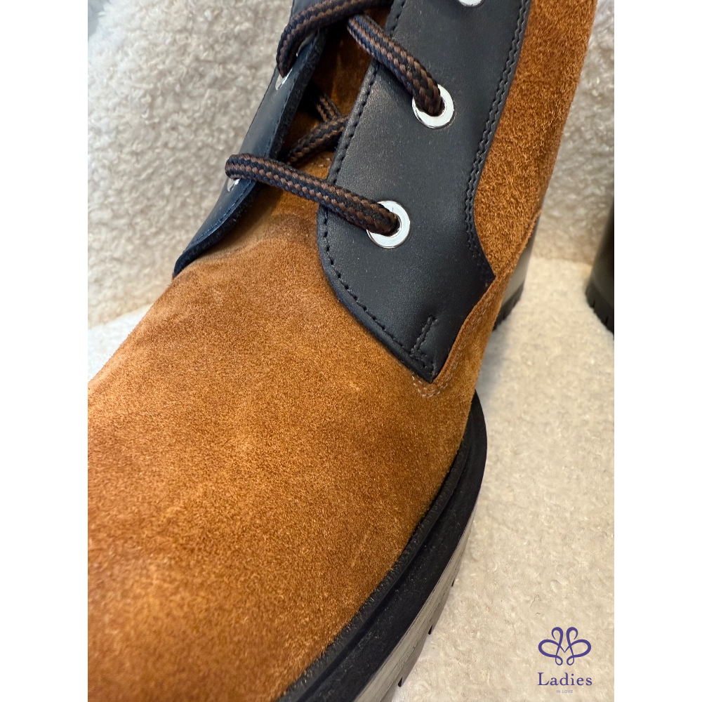 ❤️H馬場Kelly 厚底短靴(棕色麂皮+黑色皮革拼接)