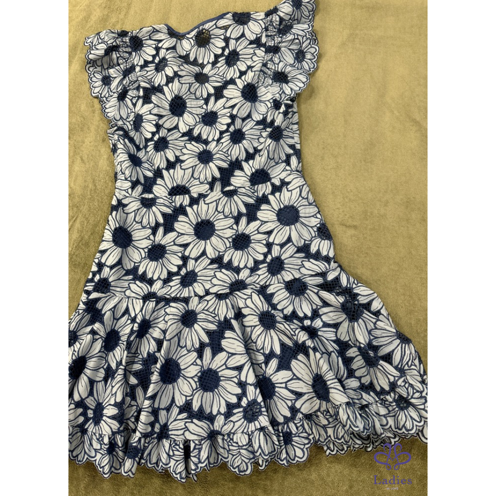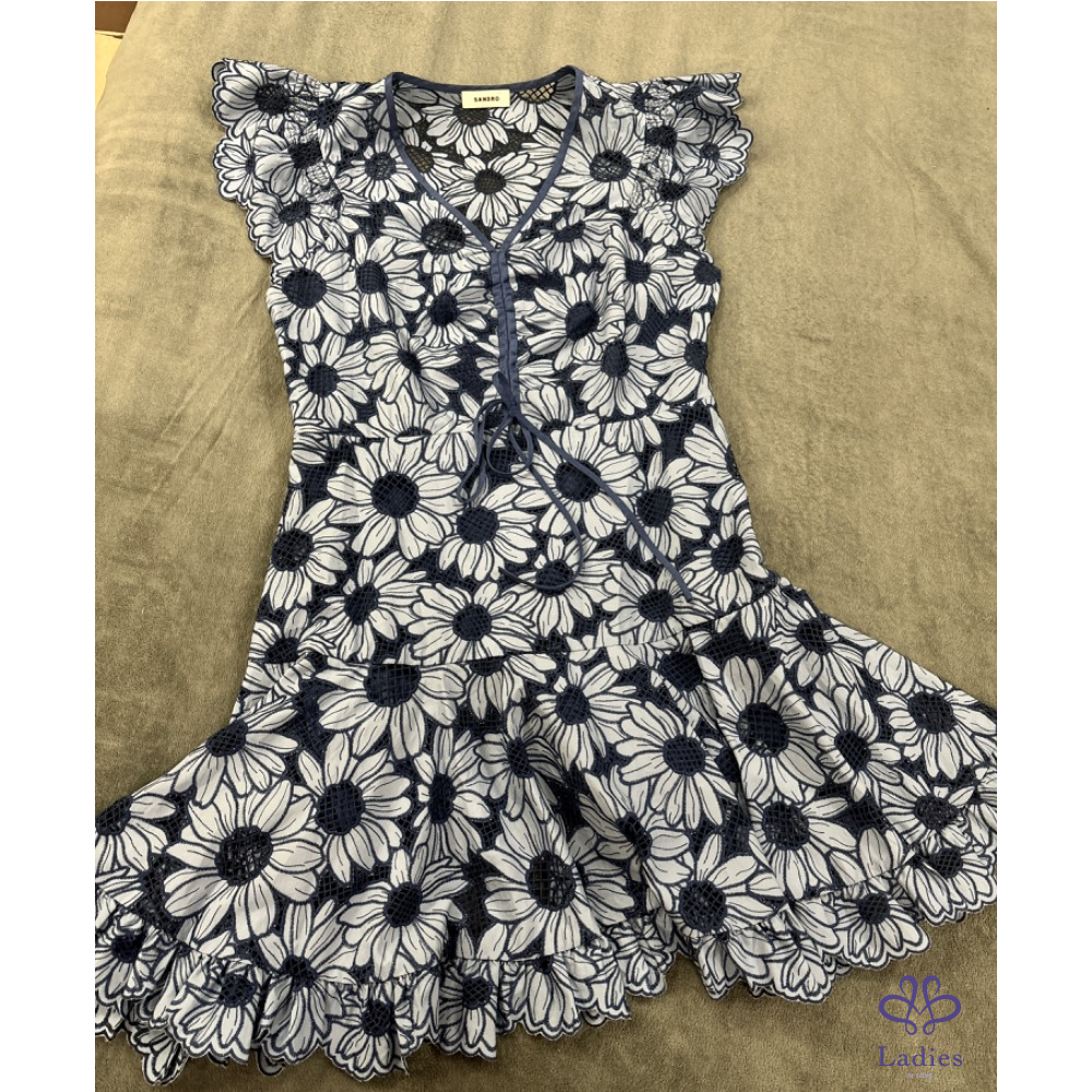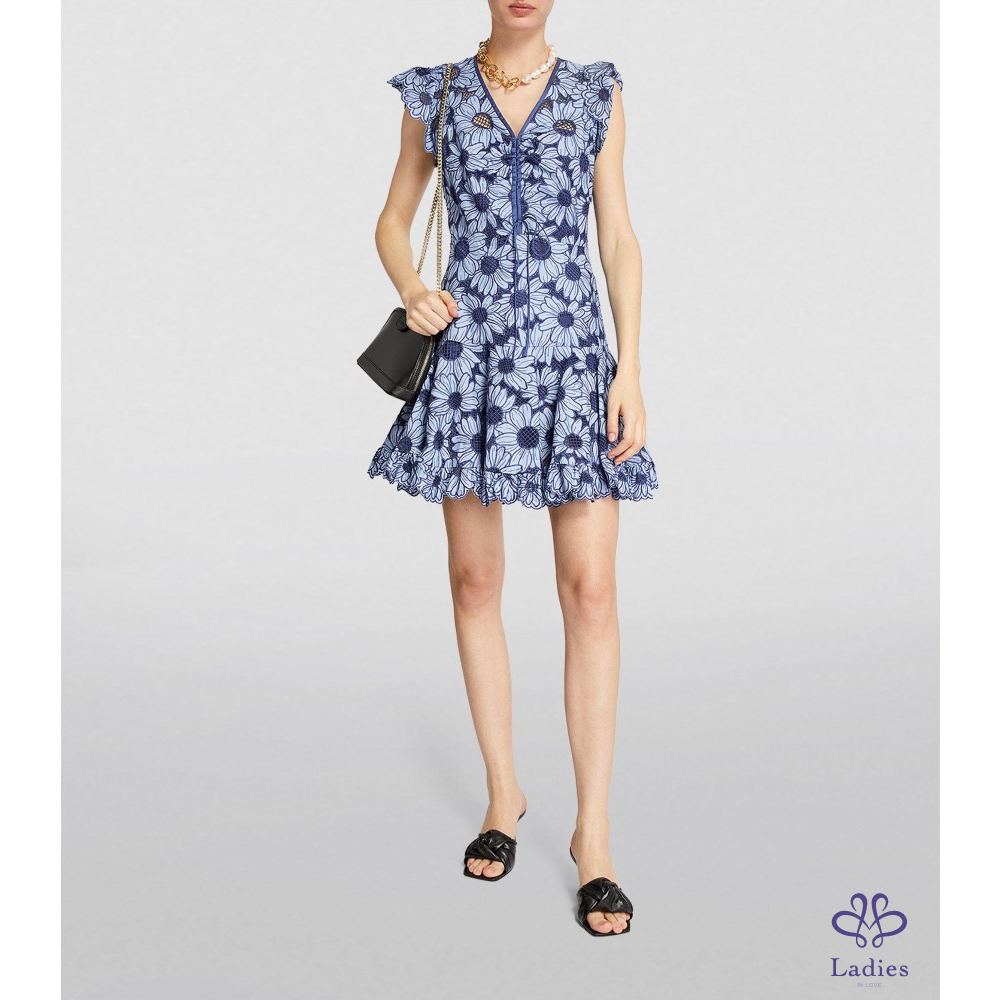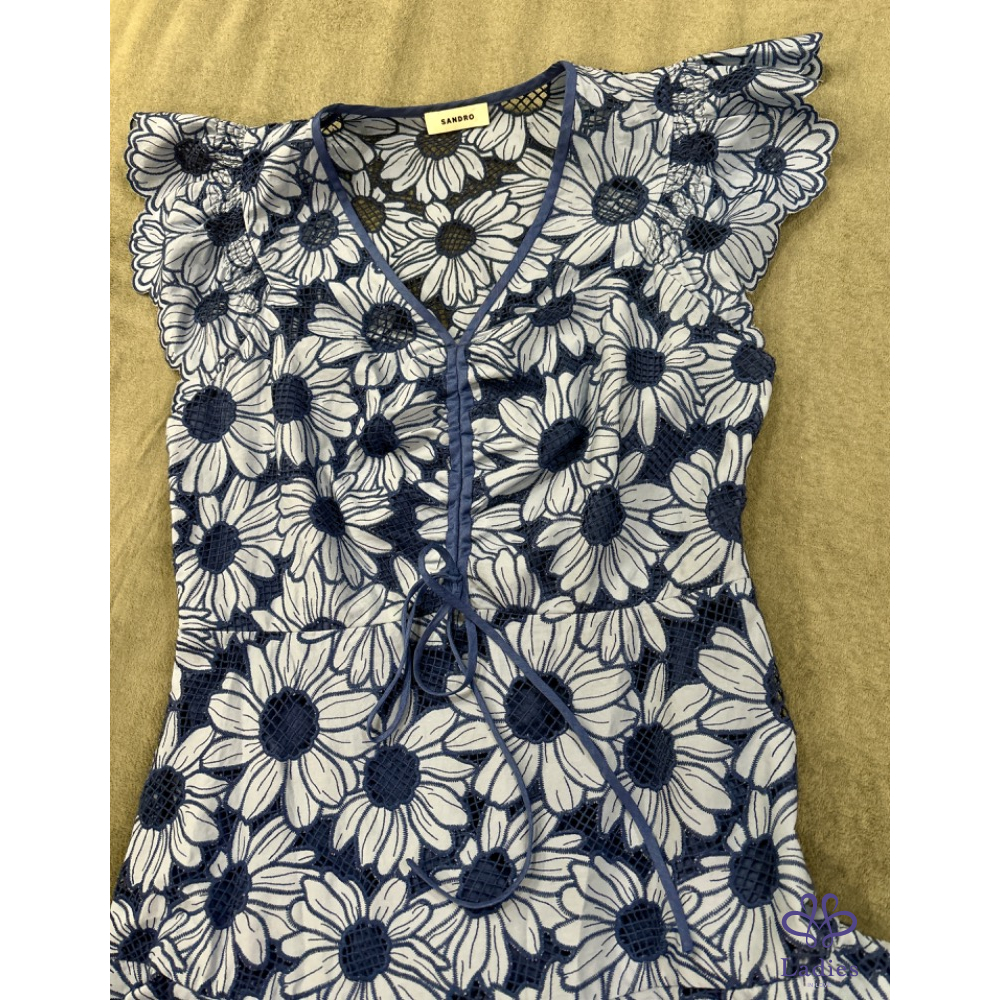 首頁 精品服飾 法式克萊因藍 雛菊刺繡短洋裝