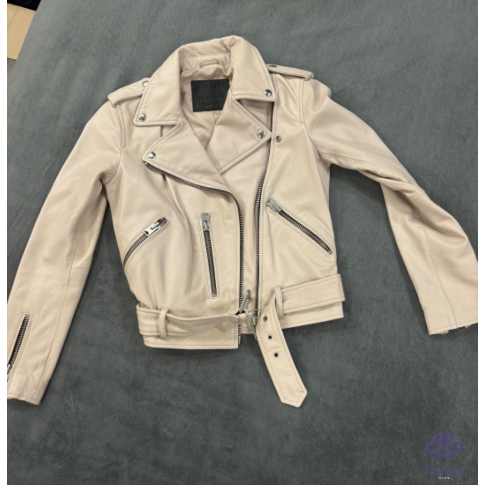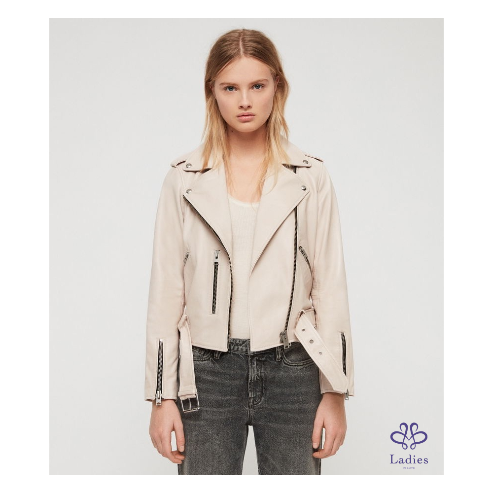 首頁 精品服飾 Allsaints Balfern Biker 小羊皮皮衣外套(粉膚色)