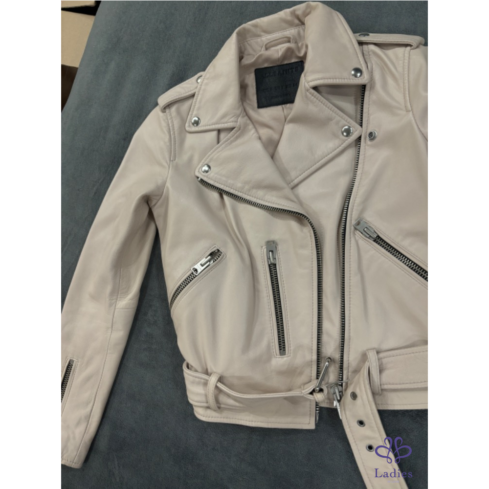 Allsaints Balfern Biker 小羊皮皮衣外套(粉膚色)