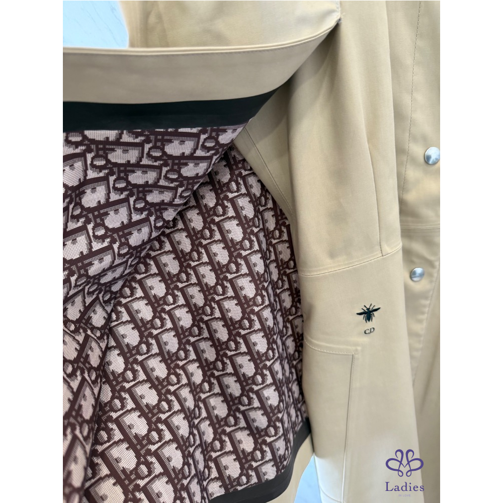 ❤️Dior卡其色牛皮革飛行袖經典小蜜蜂刺繡款內裡老花風衣