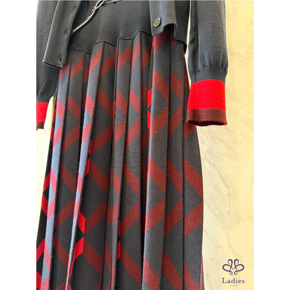 ❤️BV藍紅撞色針織外套+連身洋裝(含皮帶),整件有彈性