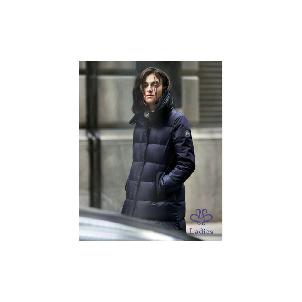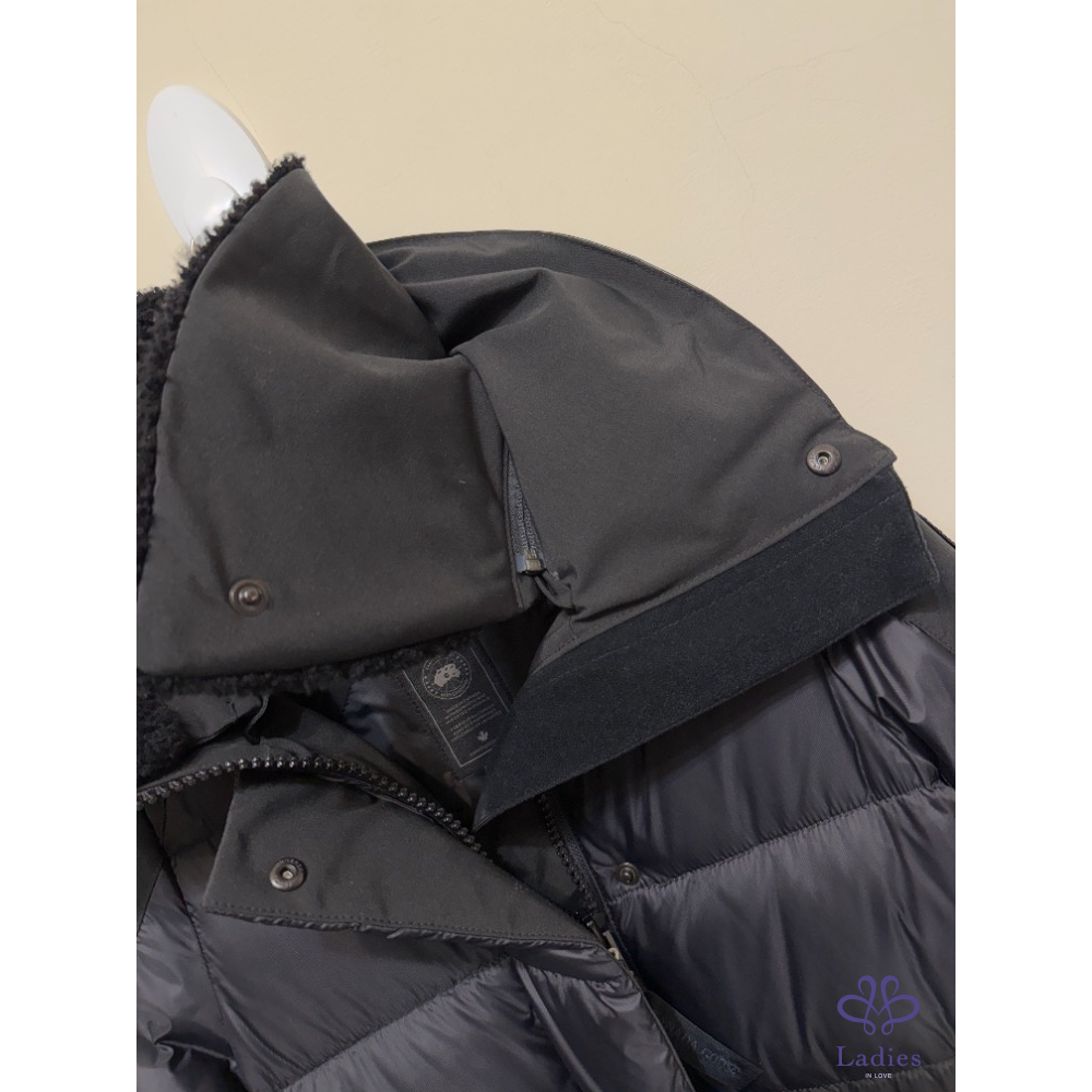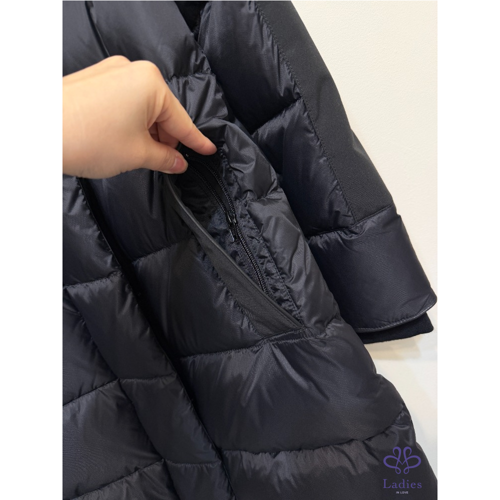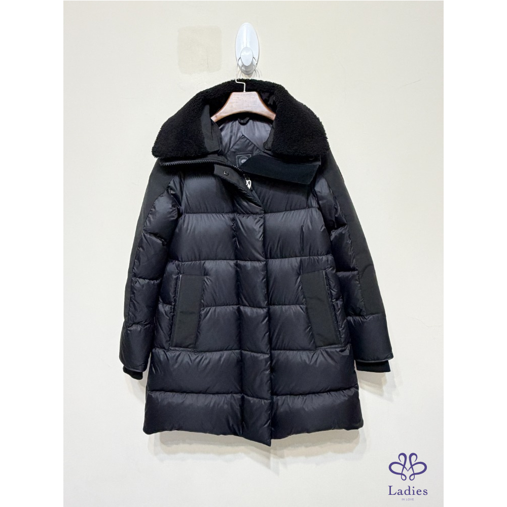 全新~ 加拿大~ 黑色立領拼接長版羽絨外套 XXS