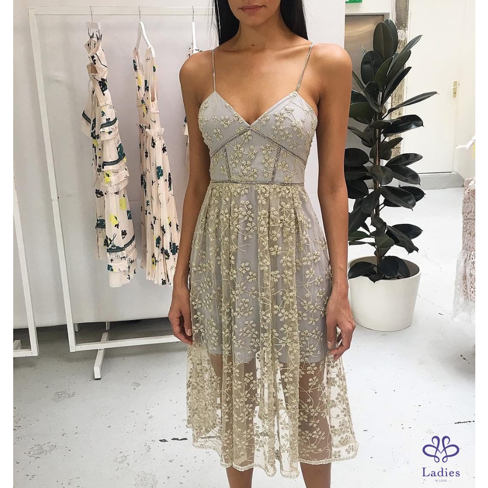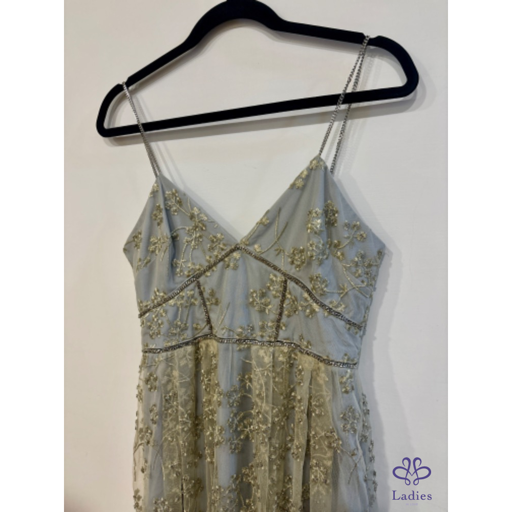 首頁 精品服飾 Self portrait 仙女淺藍薄紗鏈帶長洋裝