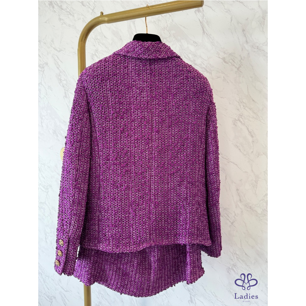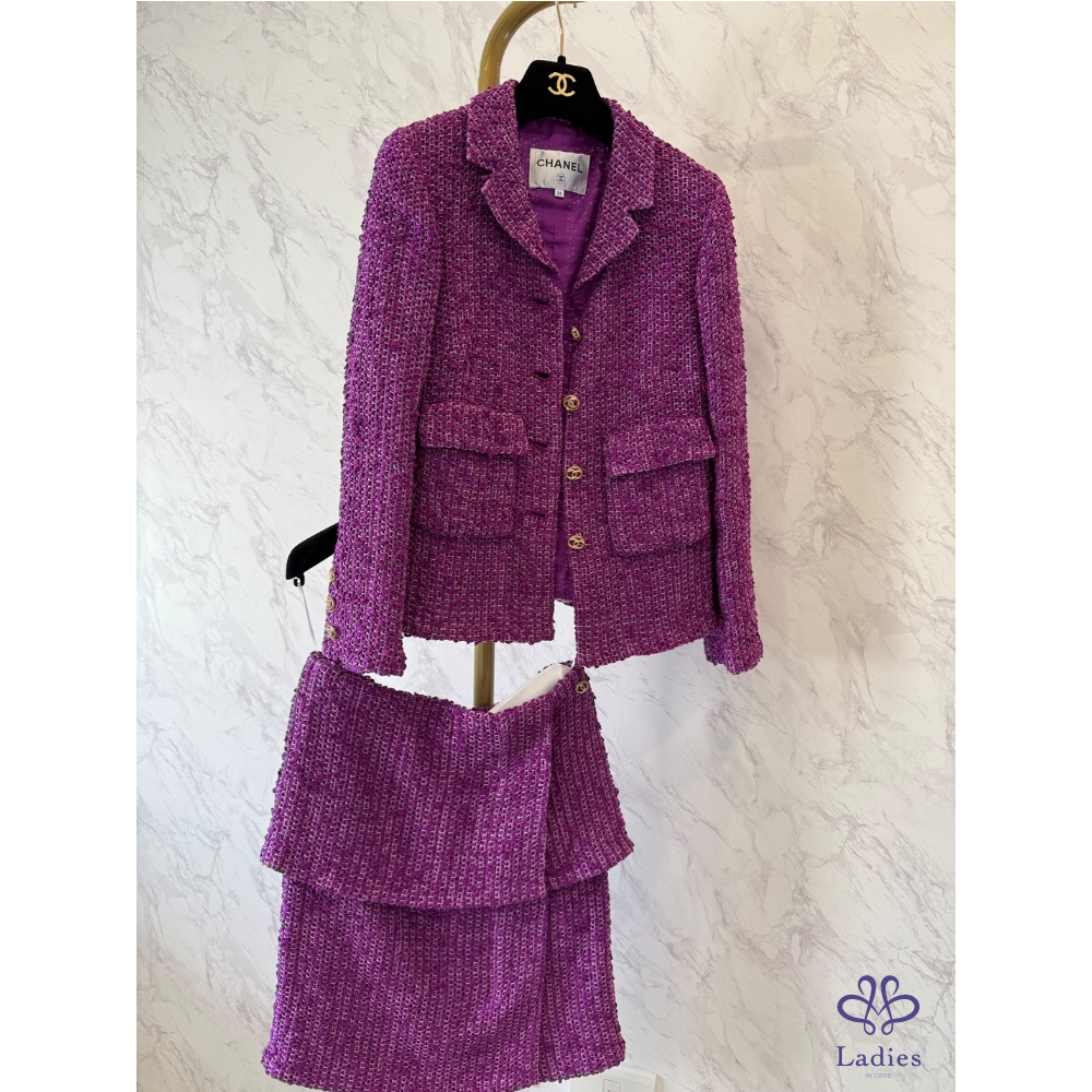 ❤️ Chanel 遊艇系列紫色粗花呢套裝