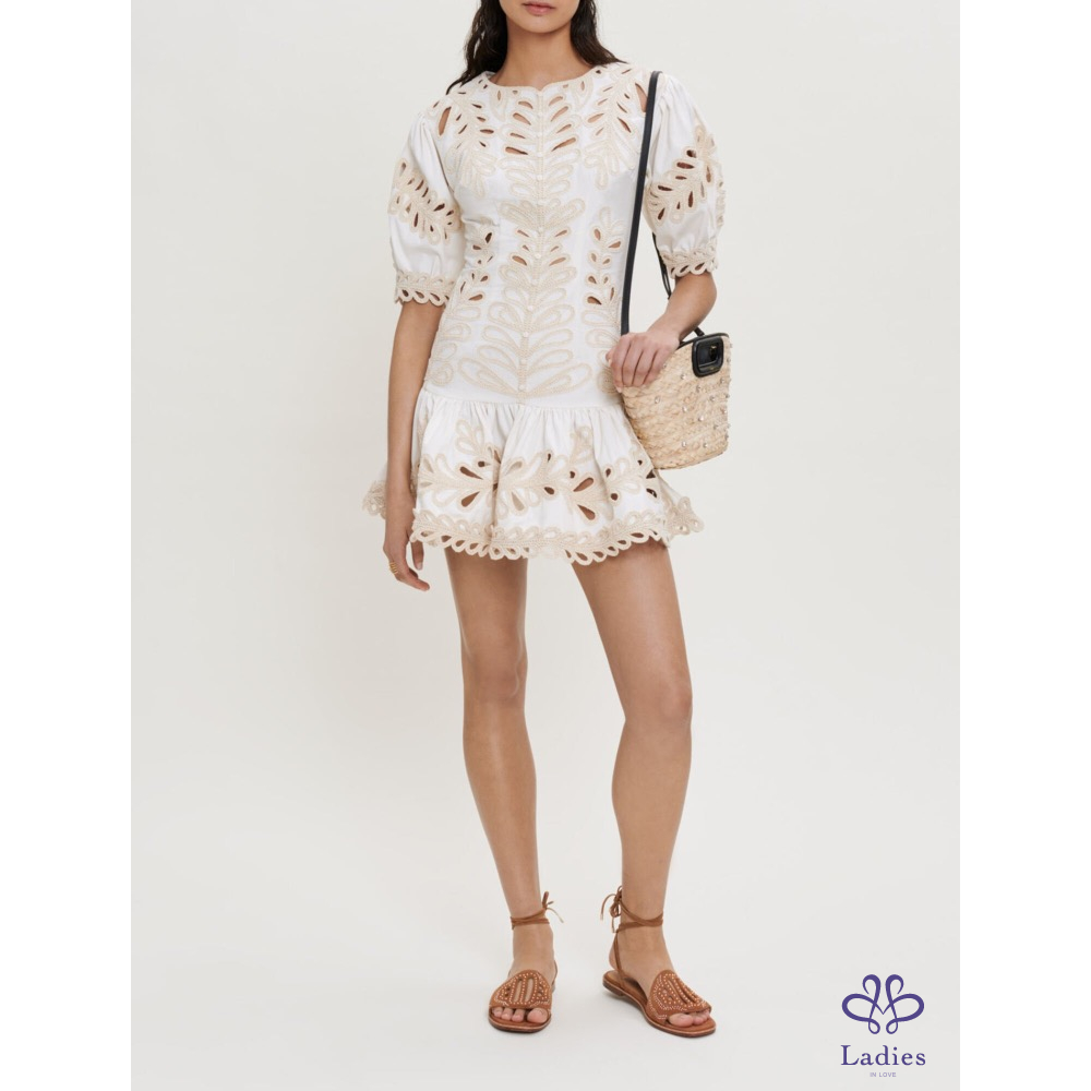 MAJE刺繡鏤空修身洋裝
