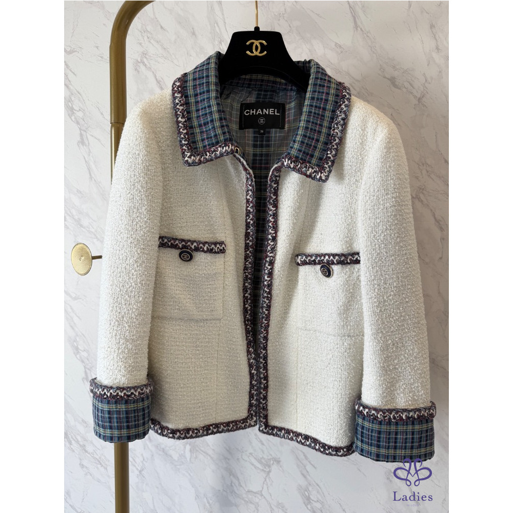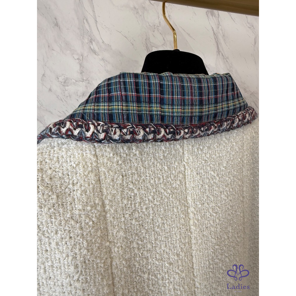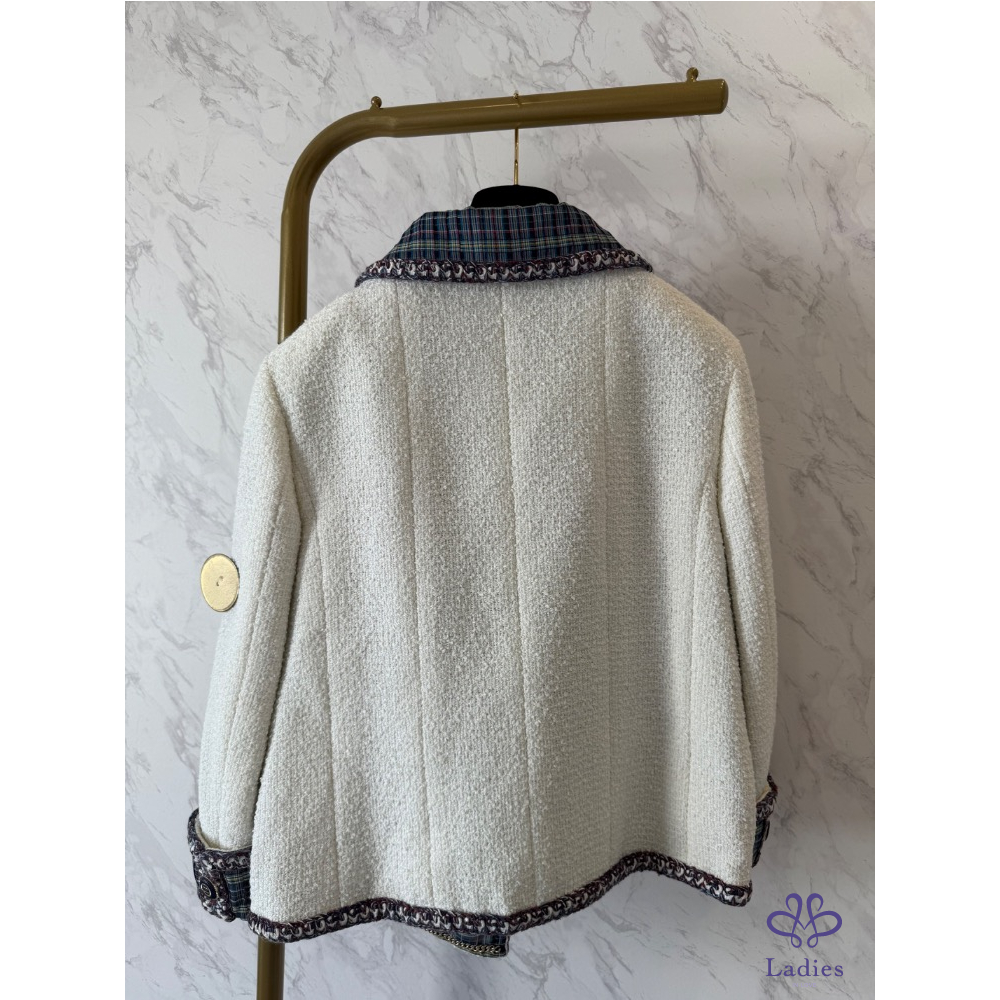 ❤️Chanel 車站秀款白色粗呢花翻領外套