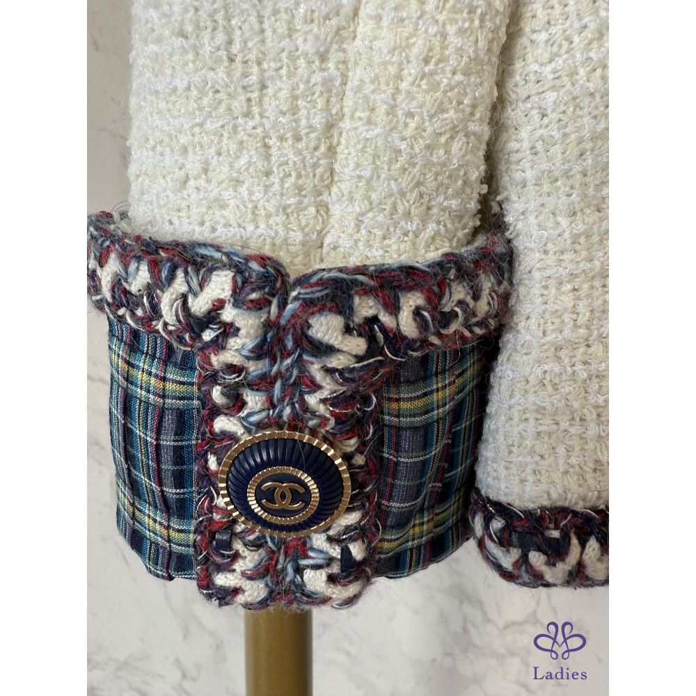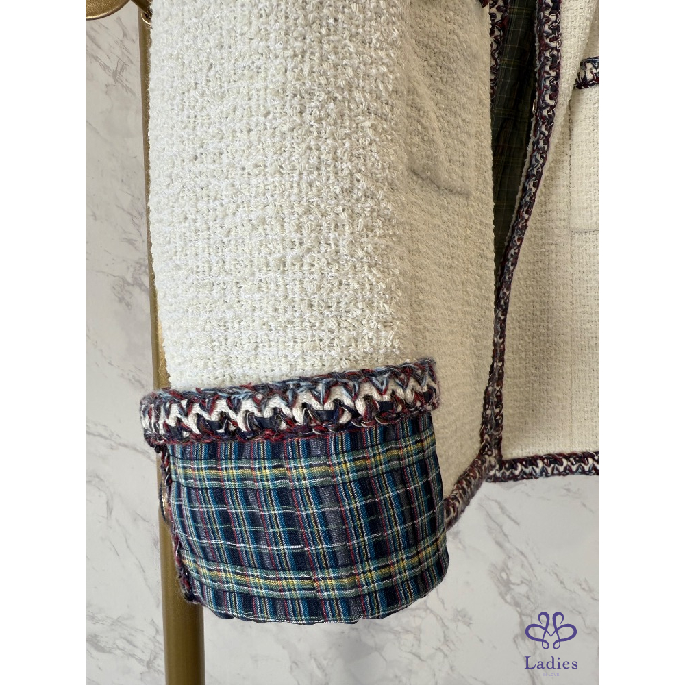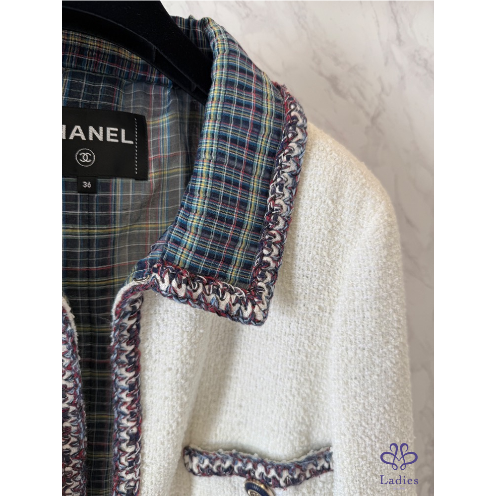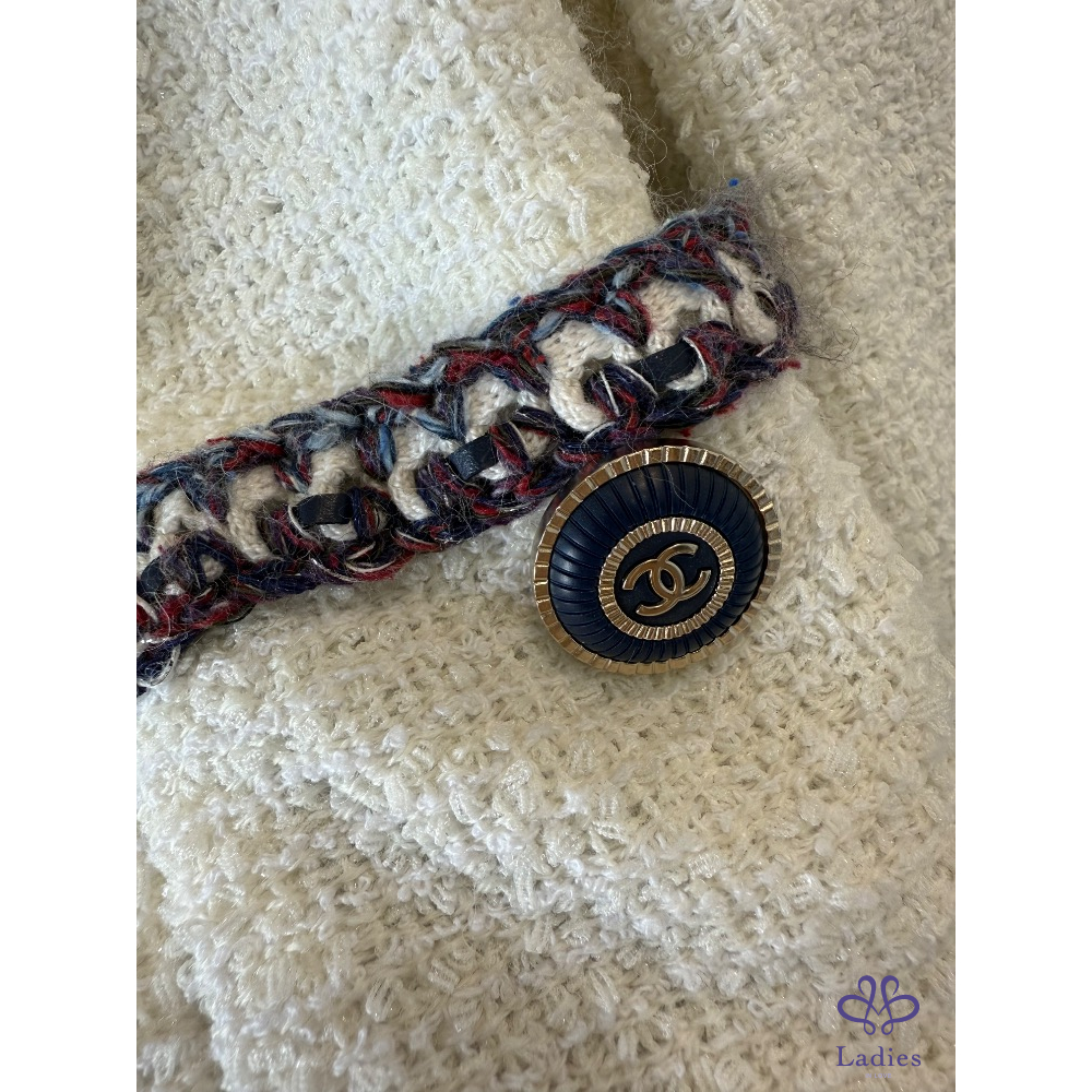 ❤️Chanel 車站秀款白色粗呢花翻領外套
