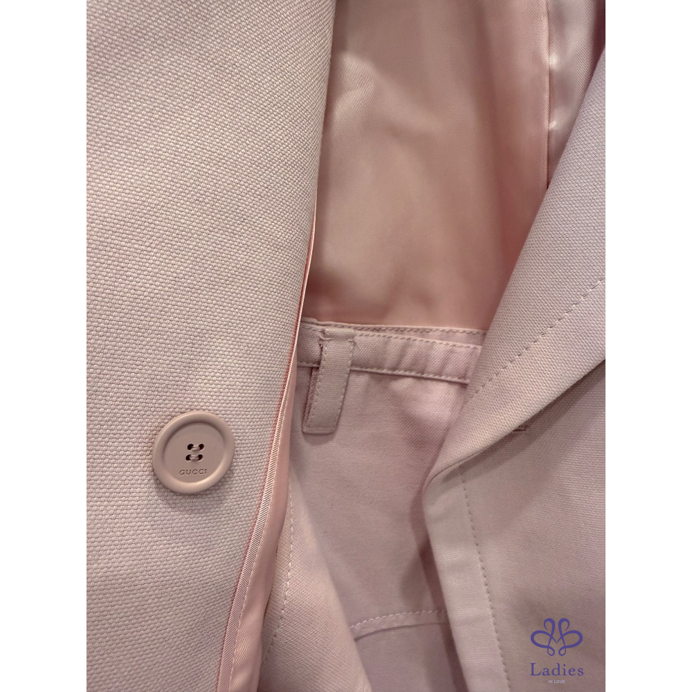 ❤️Gucci 粉嫩單寧雙排扣套裝