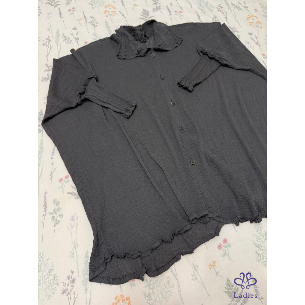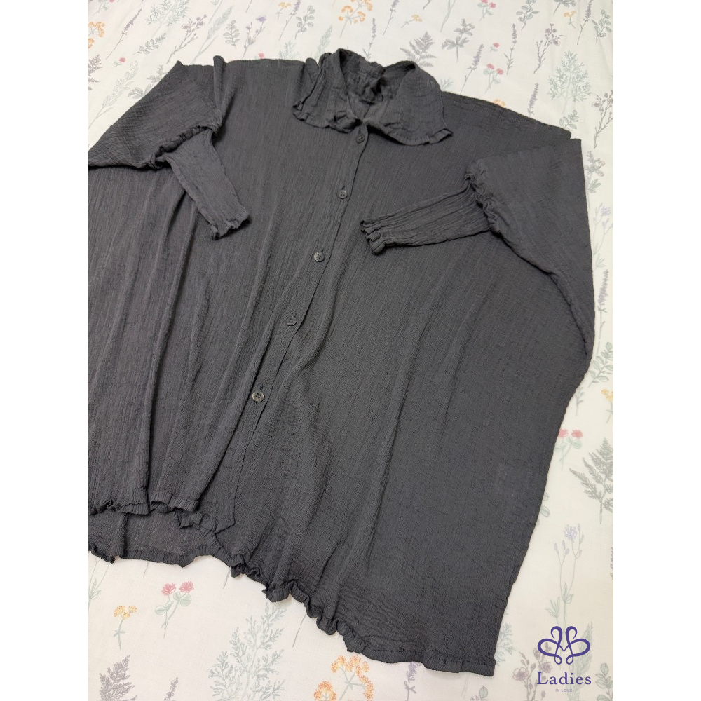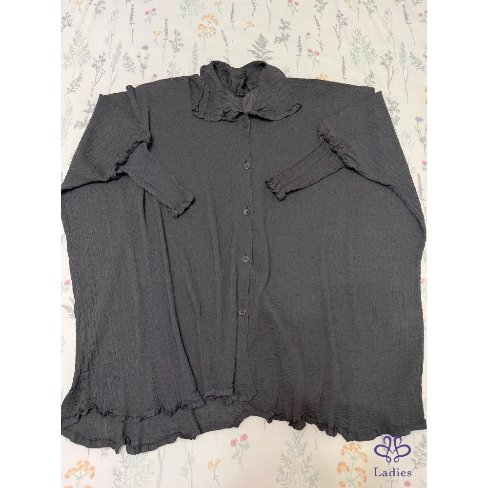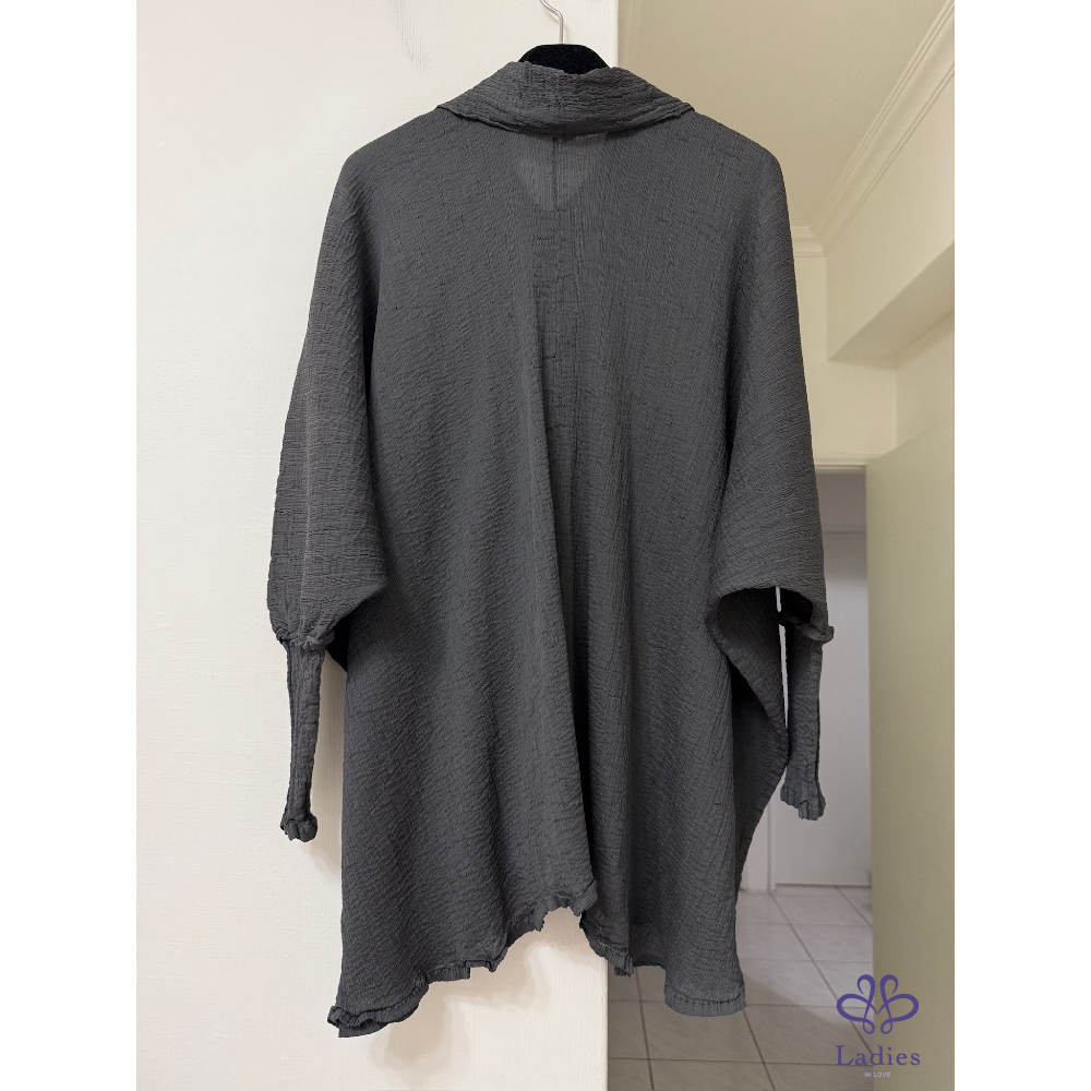 售三宅me 木炭灰色皺織中長版造型上衣,既可以單穿也可以當外套,搭配窄管褲、寬褲、直筒褲疊穿,這件上衣都很出色,