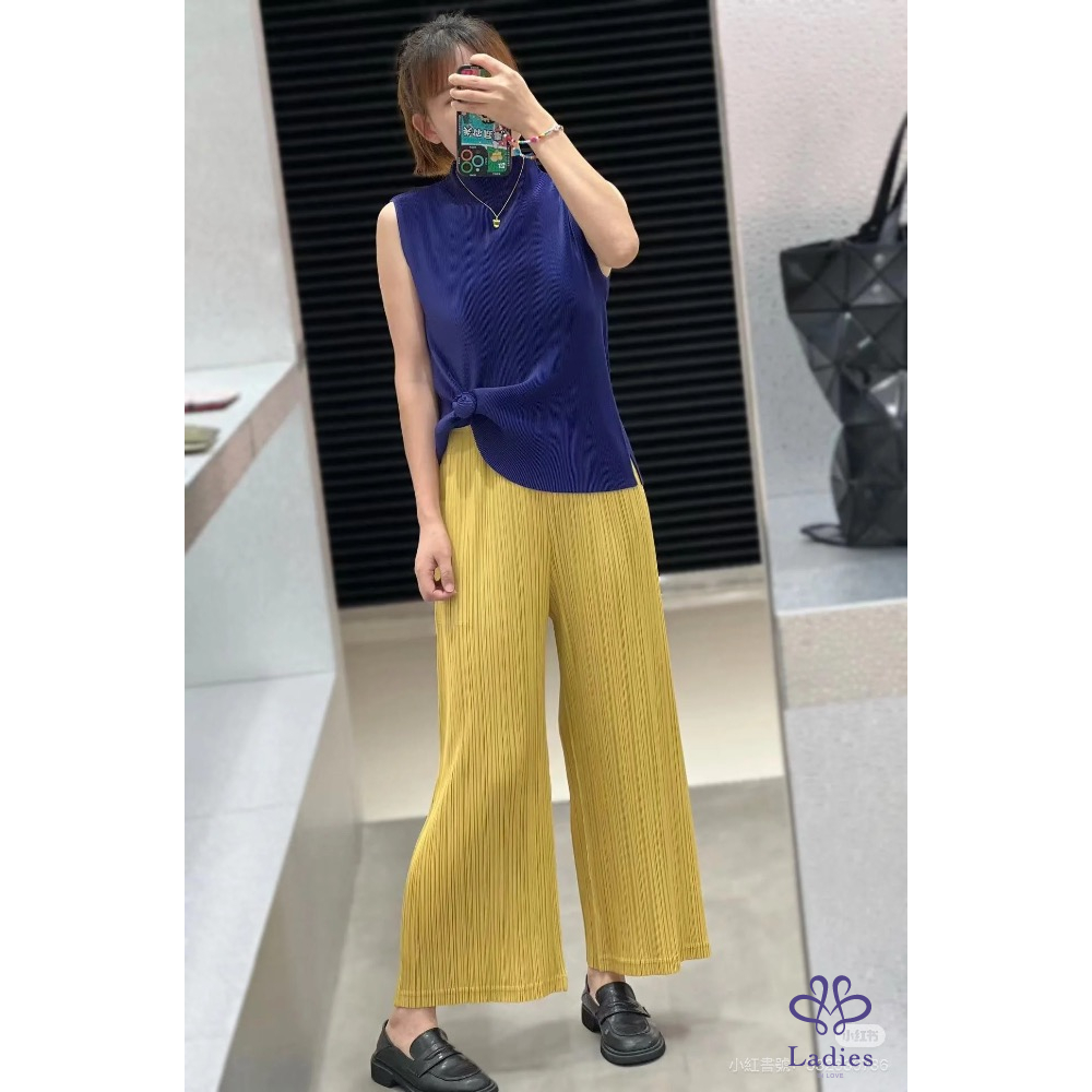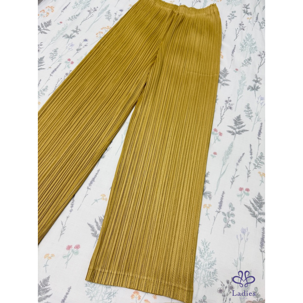 售三宅PP薑黃色皺褶厚料寬褲,24年7月經典基本款,好看不可缺的單品,