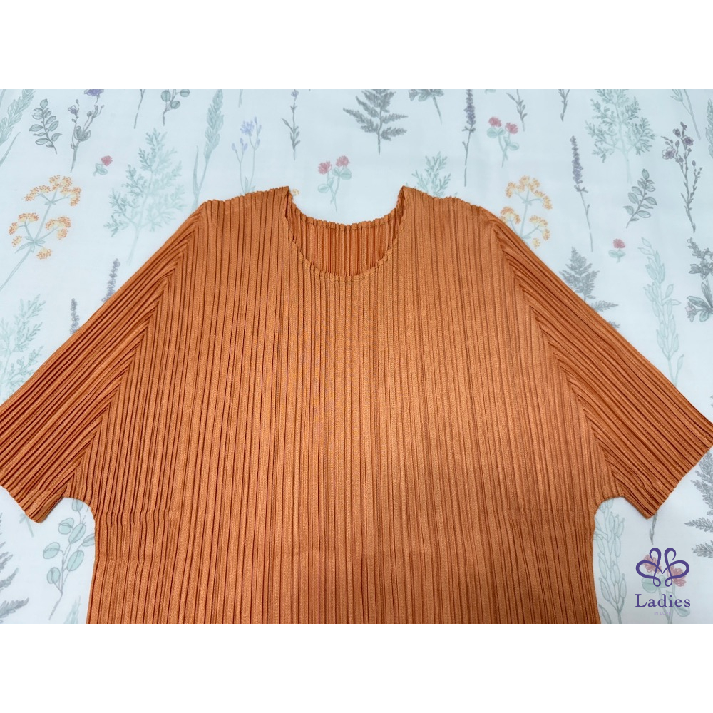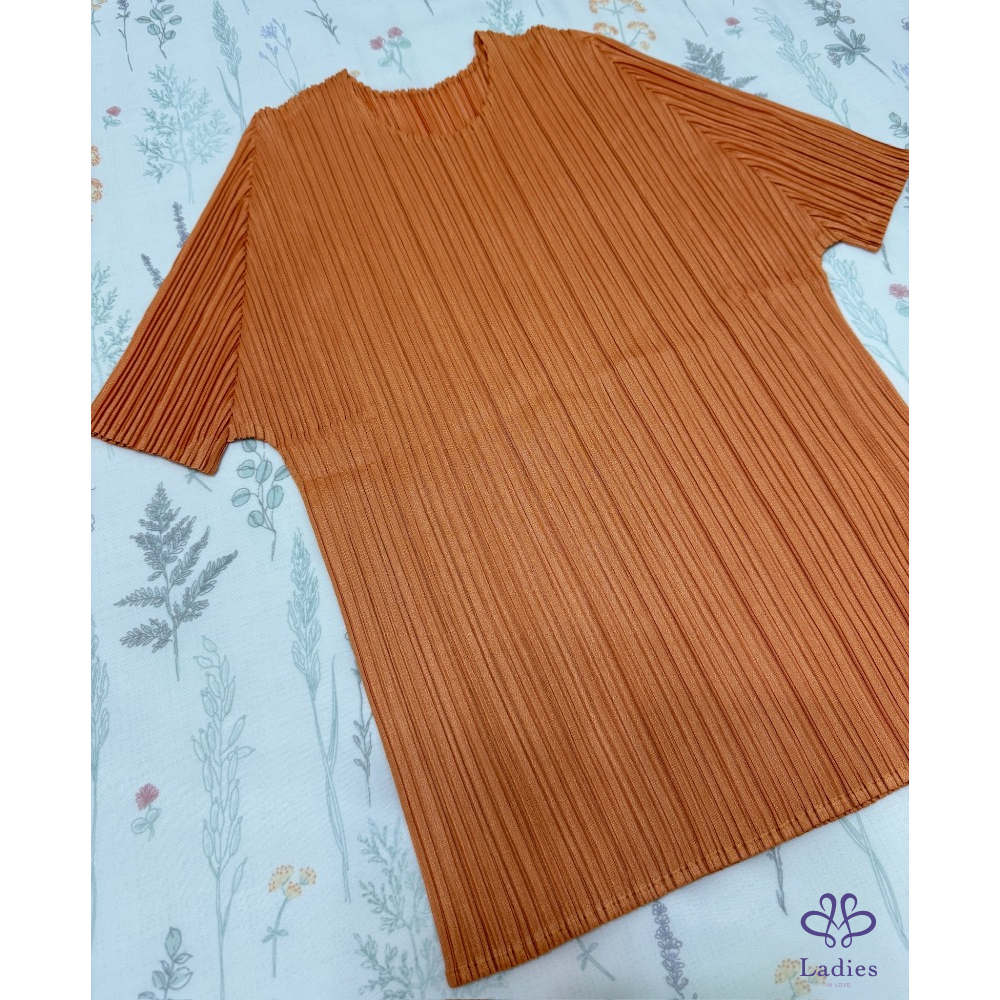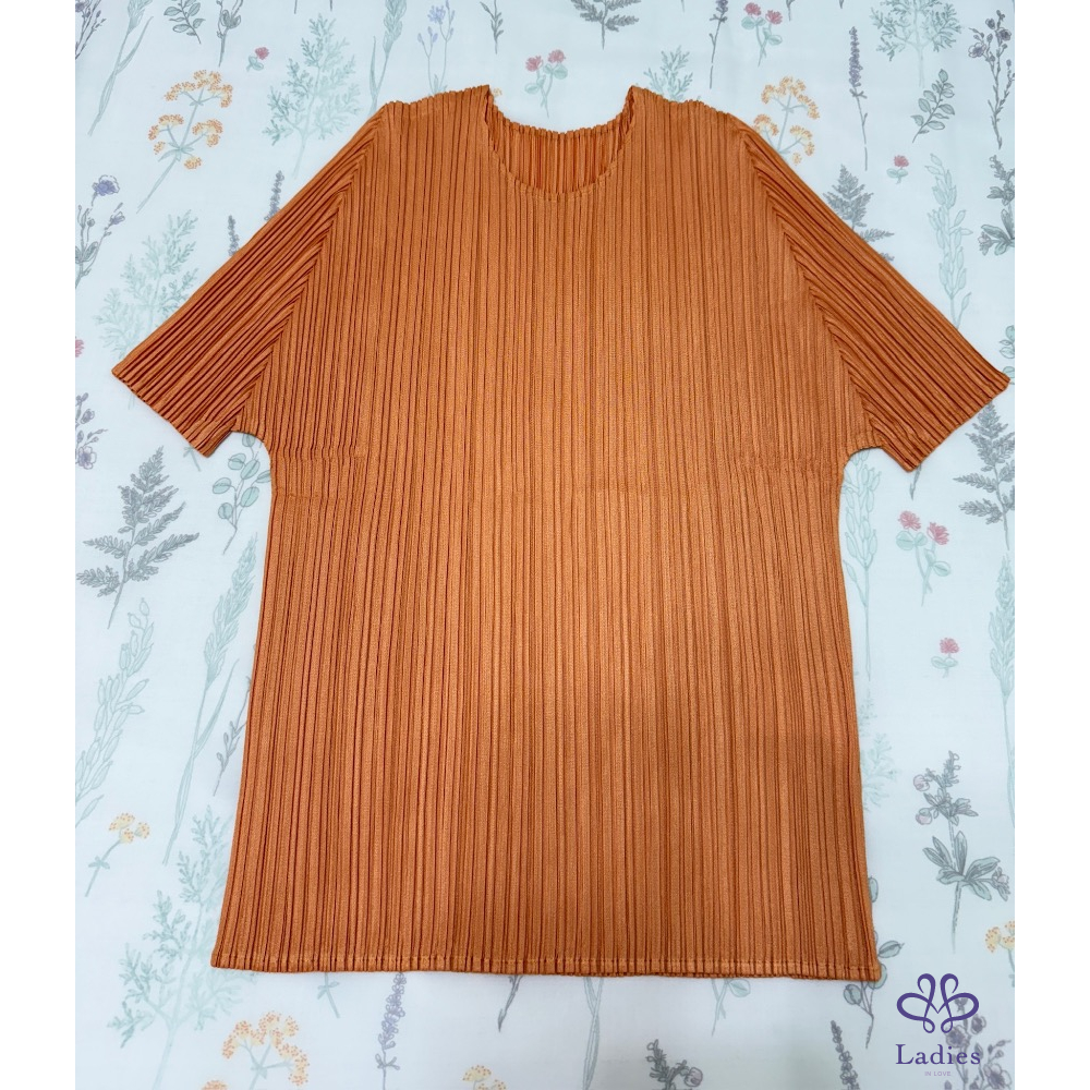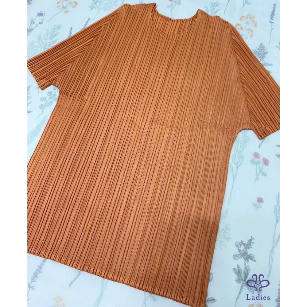 售三宅PP愛馬仕橘色褶皺五分袖上衣,經典基本款,