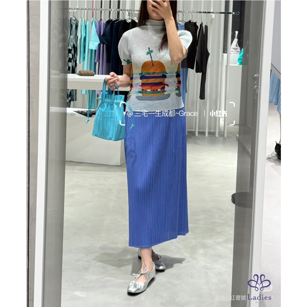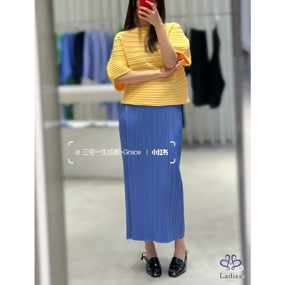 售三宅PP 鋼藍色褶皺直筒半裙,25年3月經典款,時尚百搭,