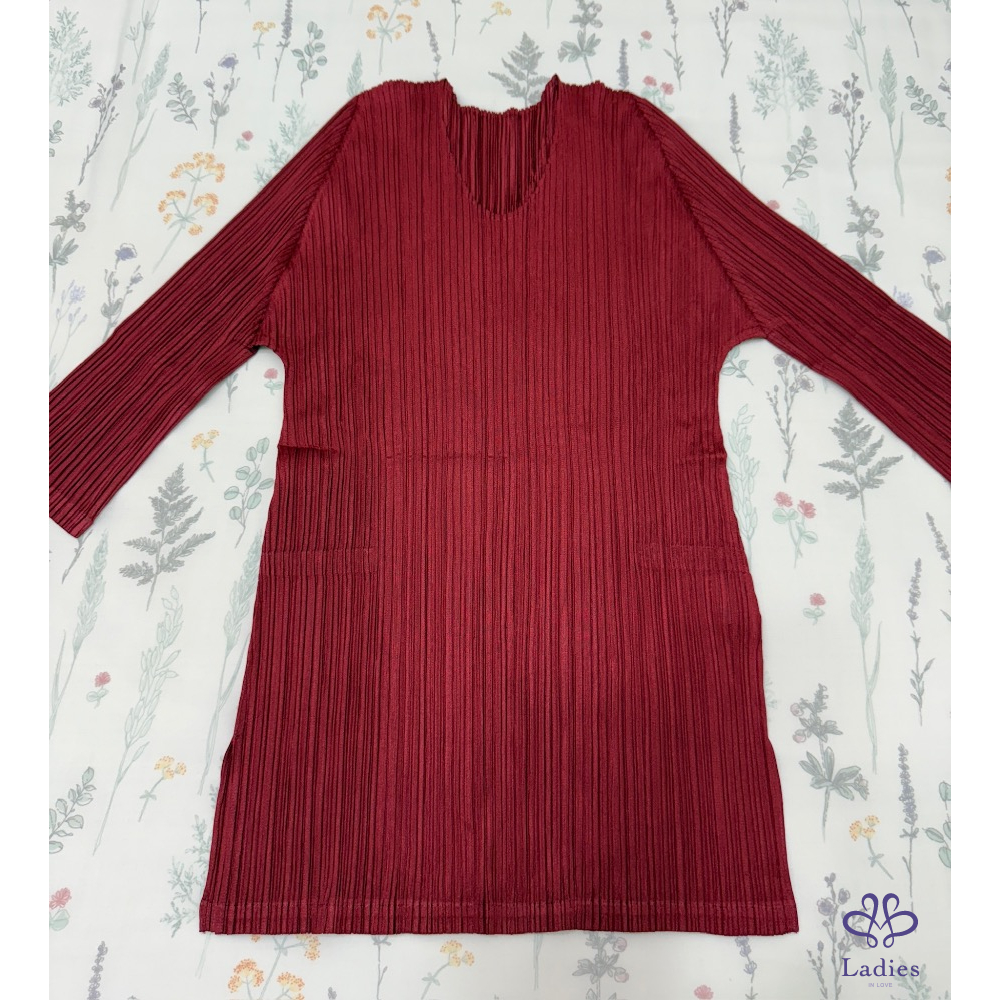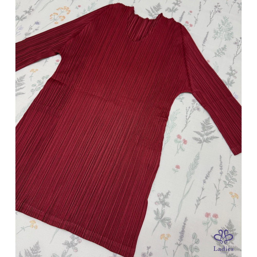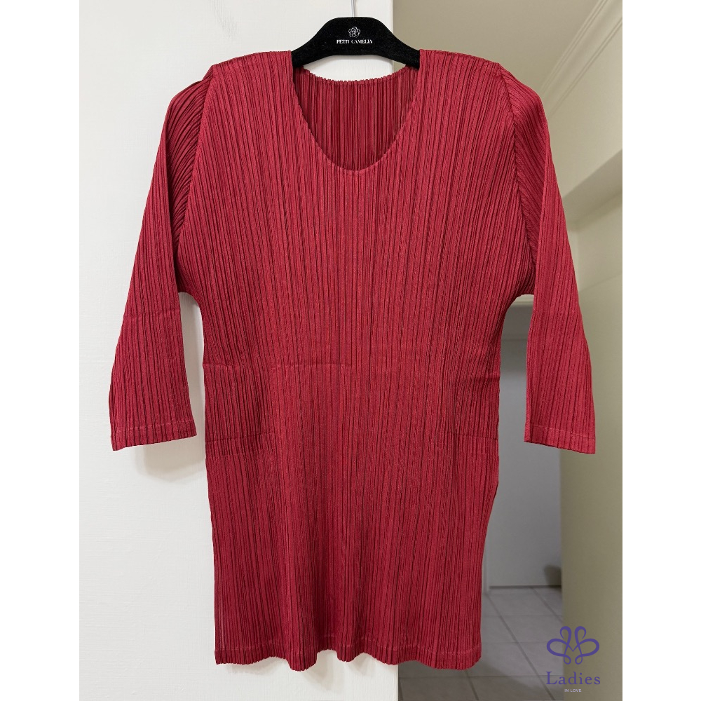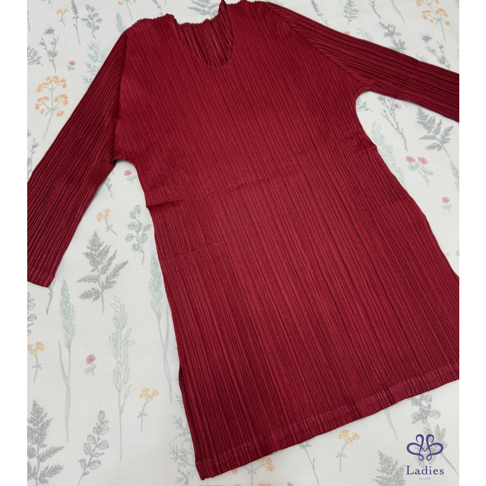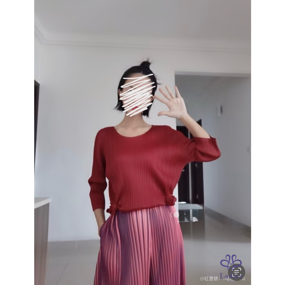 售三宅PP酒紅色皺褶7分袖上衣,經典基本款,好看不可缺的單品,