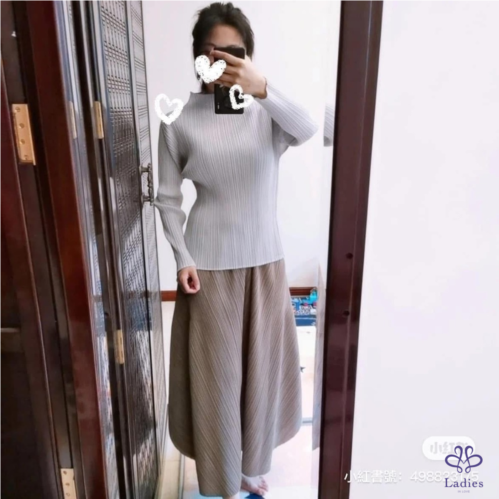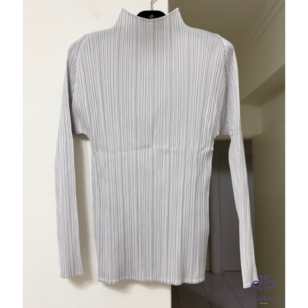 售三宅PP 淺灰色褶皺微高領長袖上衣,經典基本款,三宅迷必備,